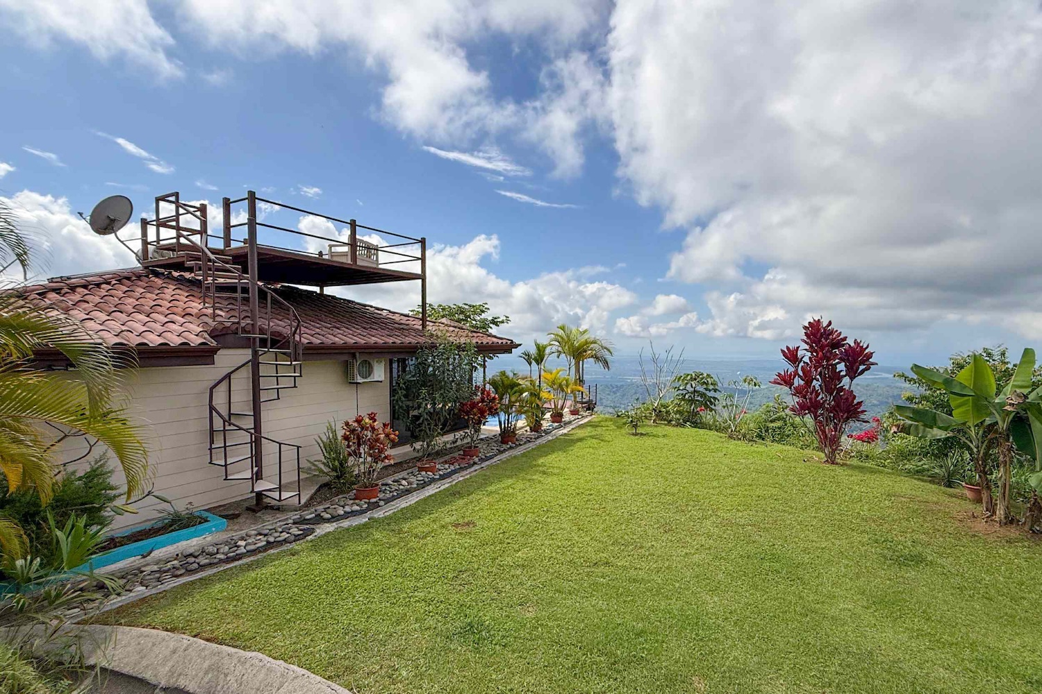 Rooftop Terrace: A spiral staircase leads to a 360° rooftop terrace, perfect for sunrise yoga or watching sunsets over the ocean.