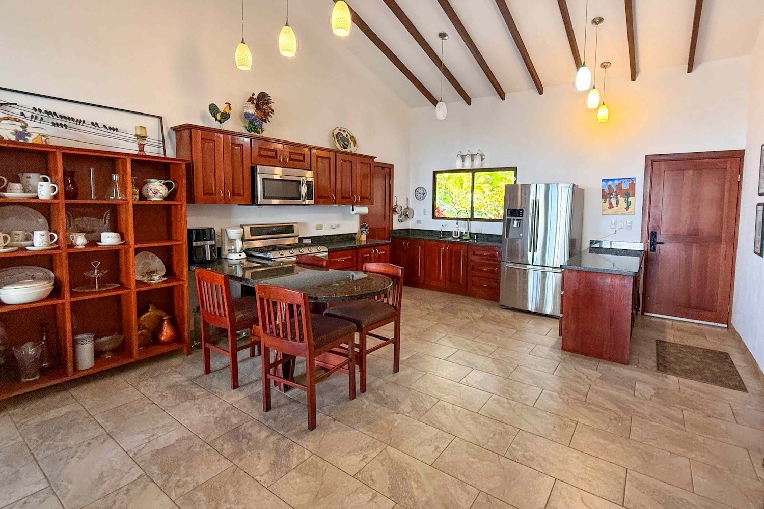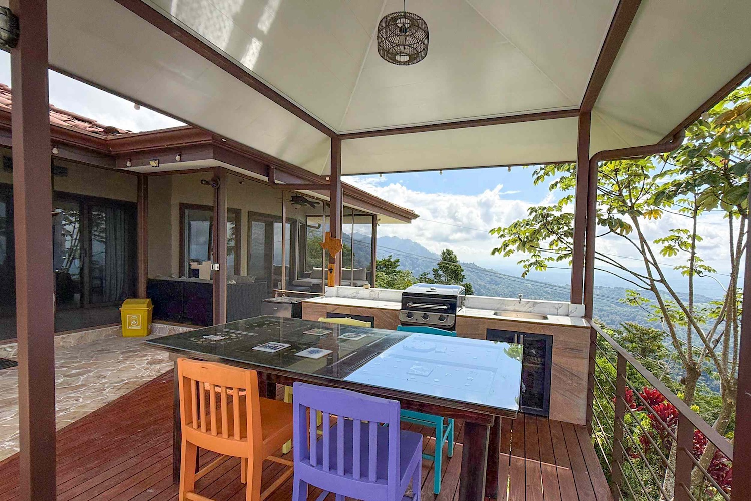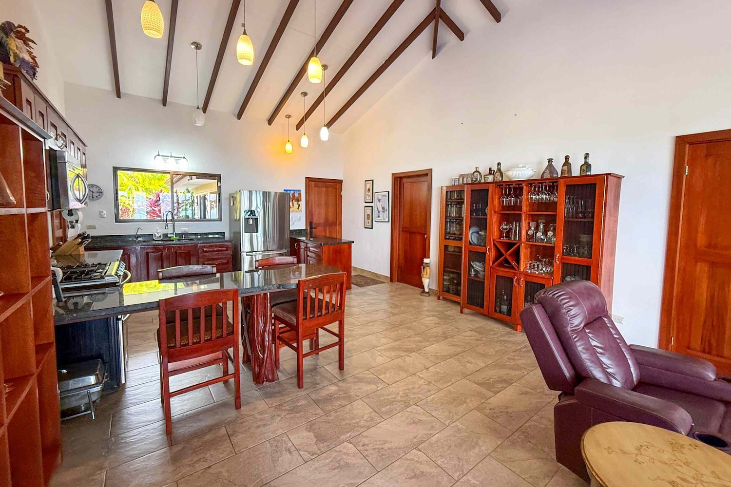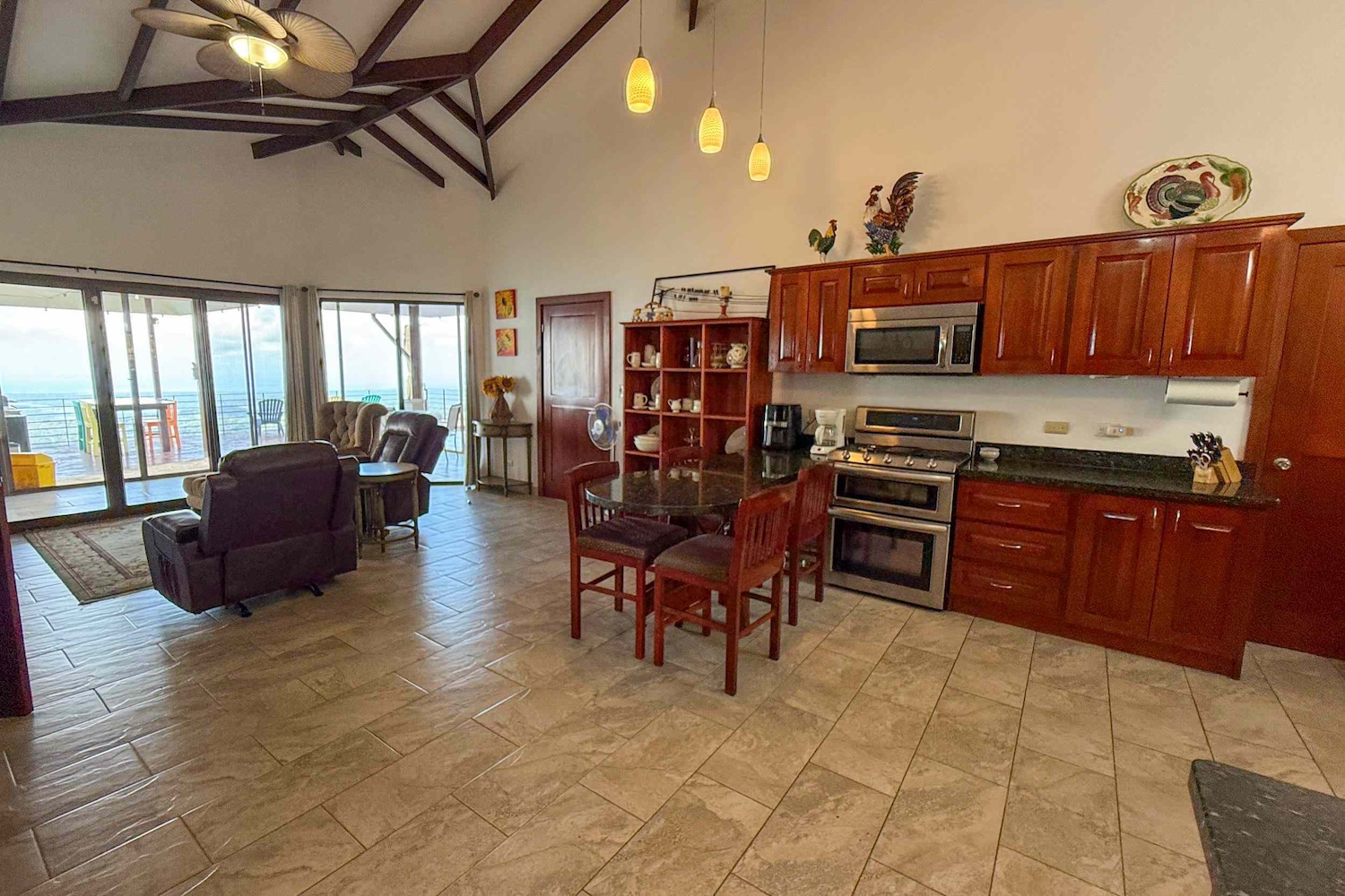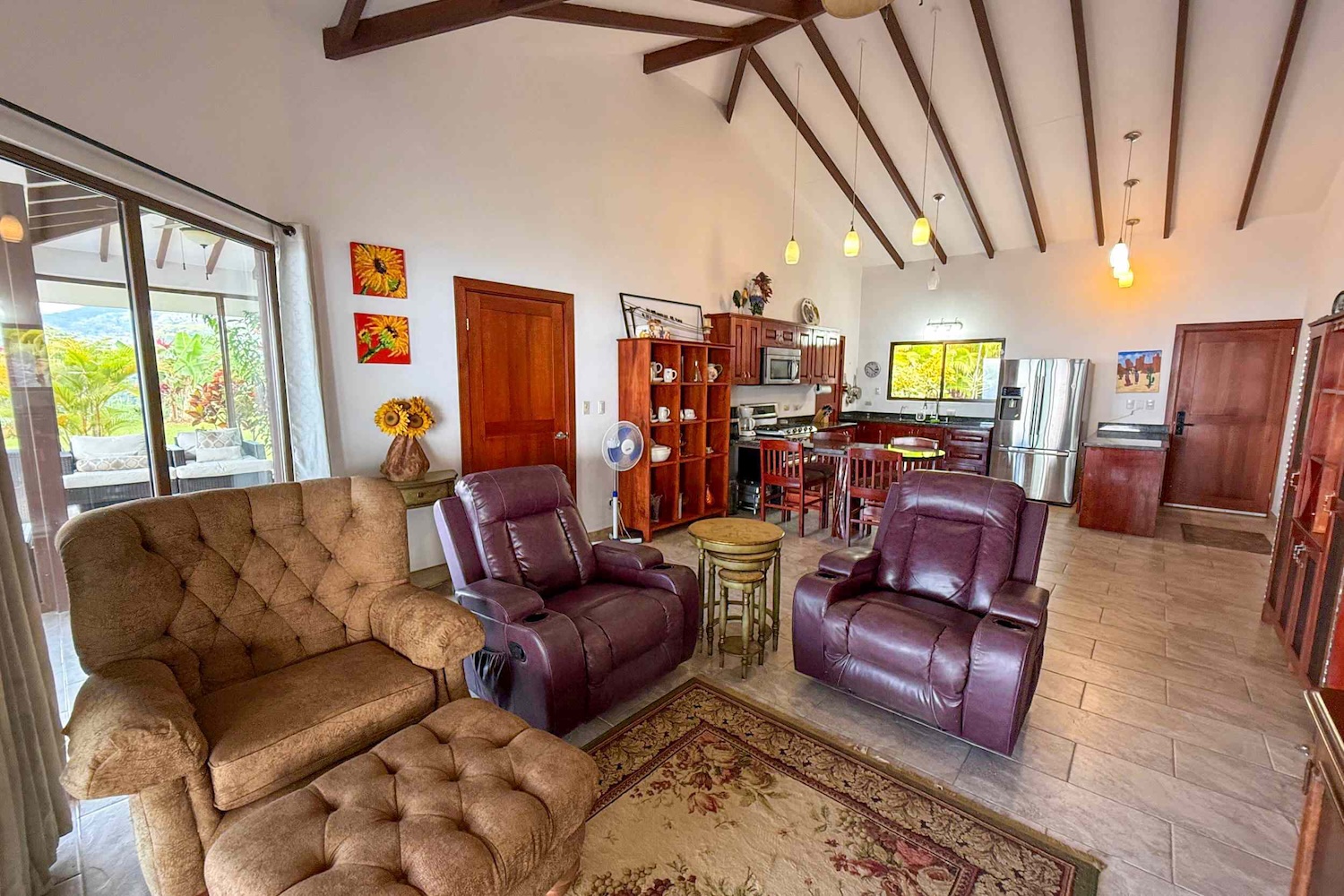 Conexión interior-exterior: La sala de estar se abre a un encantador patio cubierto, ideal para cenas al aire libre, café por la mañana o simplemente relajarte bajo la brisa tropical.