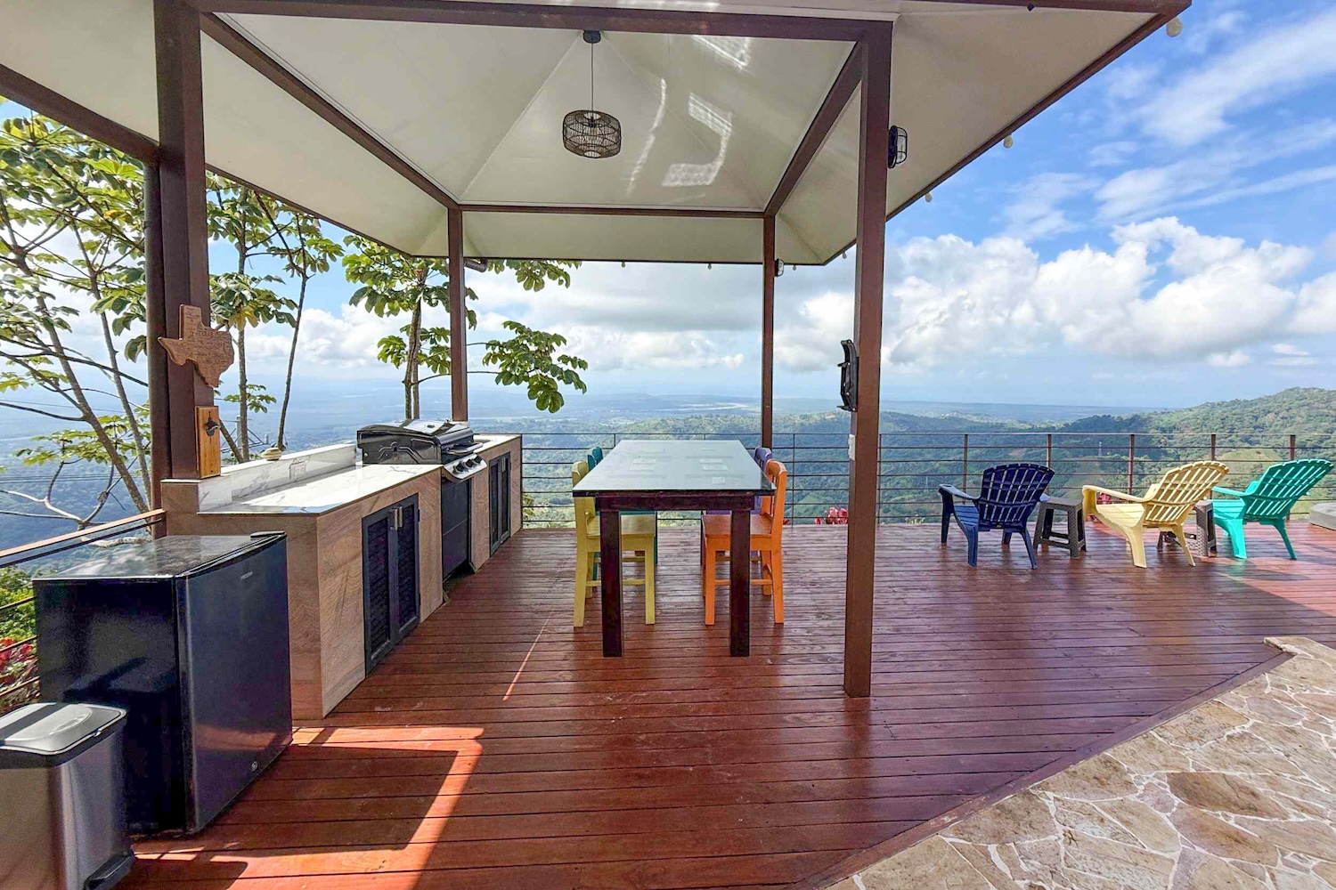Terraza y rancho: Amplia zona al aire libre con espacio para reuniones, fiestas o cenas al aire libre, incluyendo una parrilla de acero inoxidable en la terraza cubierta.