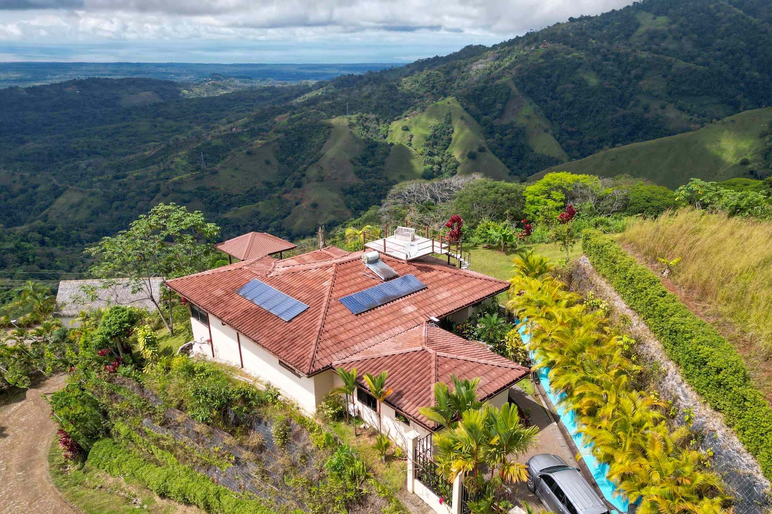 Imagine starting your day gazing at panoramic views that stretch for miles and capture the essence of “Pura Vida.” This extraordinary property in Balsar, Costa Rica, offers just that: an elegant main house along with a separate guest house, situated about 600 meters above sea level in Cortés. From here, you’ll enjoy spectacular ocean views—from the rugged waters and extensive coastlines stretching from the Osa Peninsula to Drake Bay and Corcovado, to the bright lights of Ciudad Cortés at your feet, surrounded by the lush jungle of the mountains. If your goal is to find a home for sale in southern Costa Rica with unmatched views and a versatile lifestyle, your search ends here.