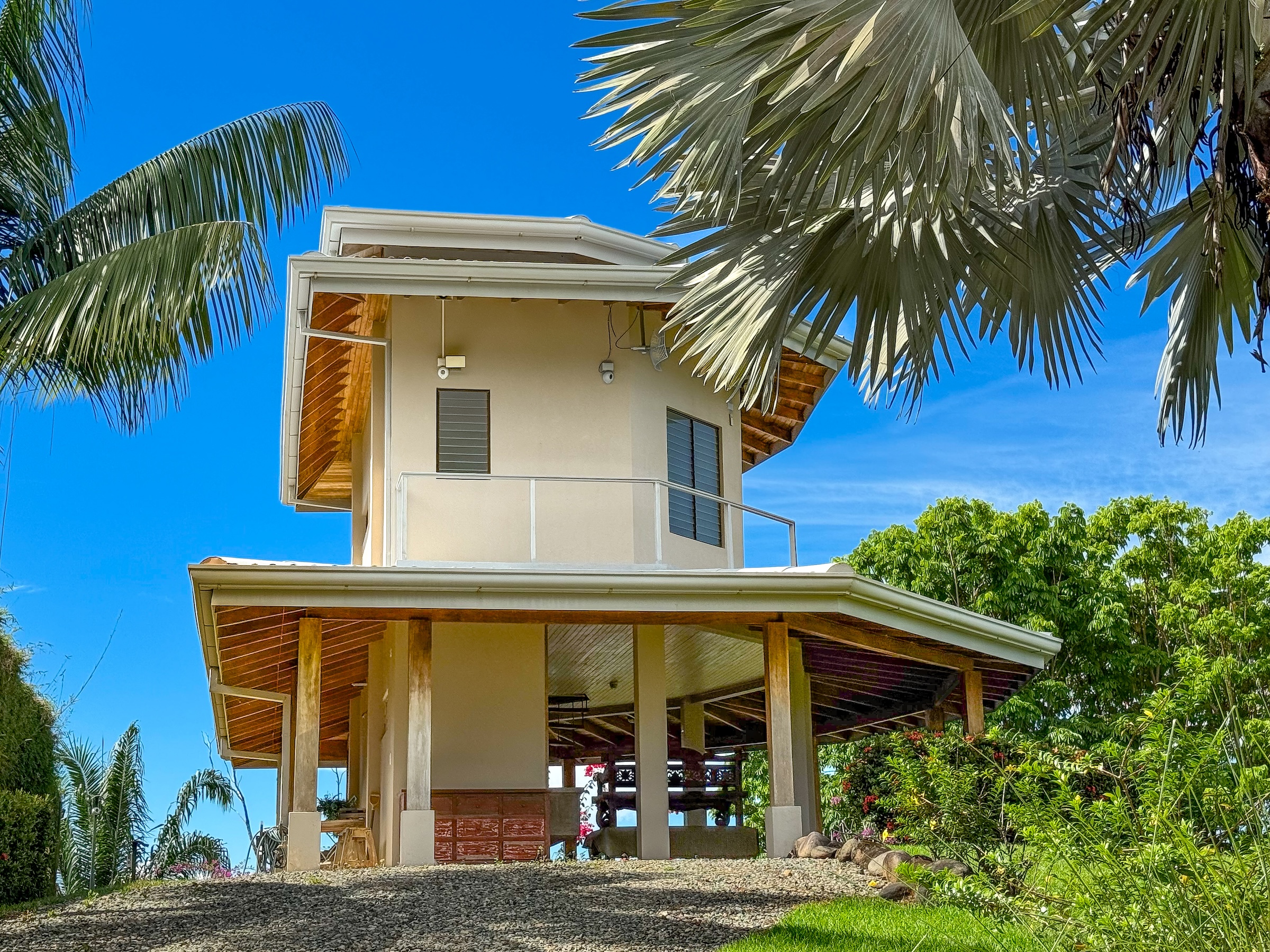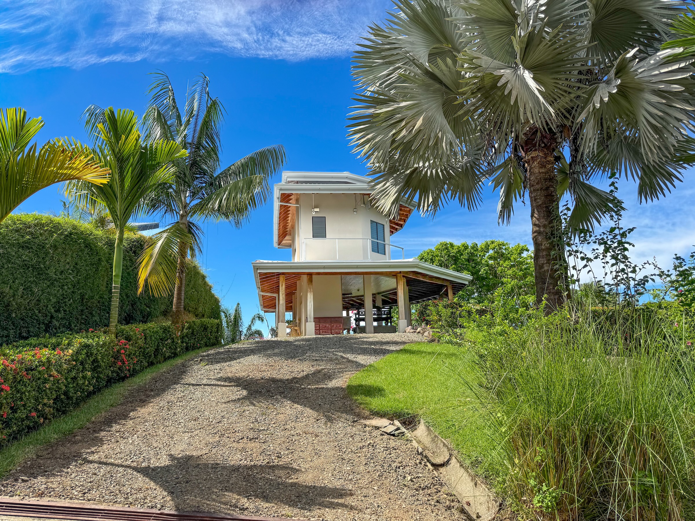 Esta casa elevada se ubica en la exclusiva y tranquila urbanización Cinco Ventanas Fase 8, sobre el pueblo de Ojochal, en una posición privilegiada que ofrece privacidad absoluta y vistas ininterrumpidas. Al encontrarse al final del camino y rodeada por selva protegida en tres de sus lados, garantiza silencio, aislamiento total y la certeza de que no habrá futuras construcciones alrededor.