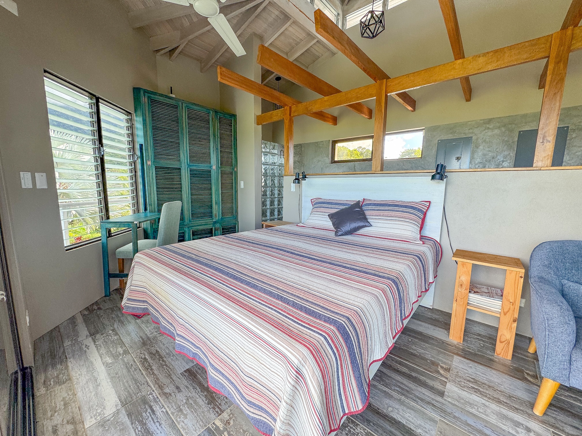 La casa cuenta con 1 dormitorio y 2 baños, y está diseñada para integrarse con su entorno tropical. La planta baja funciona como un amplio patio cubierto multifuncional, ideal para crear una cocina exterior, zona social, área de descanso o bienestar. En la planta superior, un espacio abierto con techos altos y grandes ventanales enmarca vistas impresionantes del Pacífico, permitiendo disfrutar de atardeceres inolvidables desde cualquier rincón.