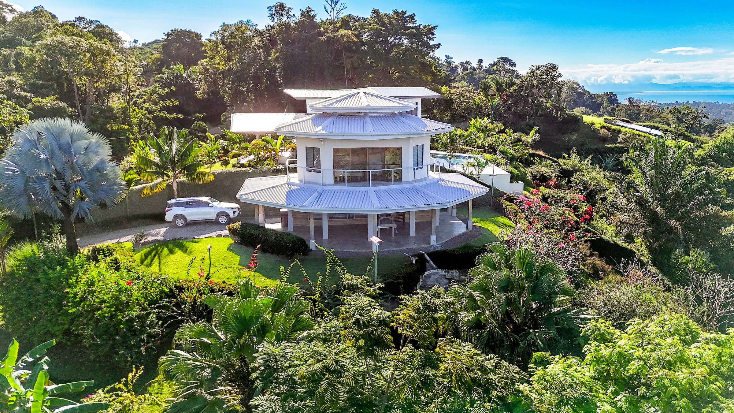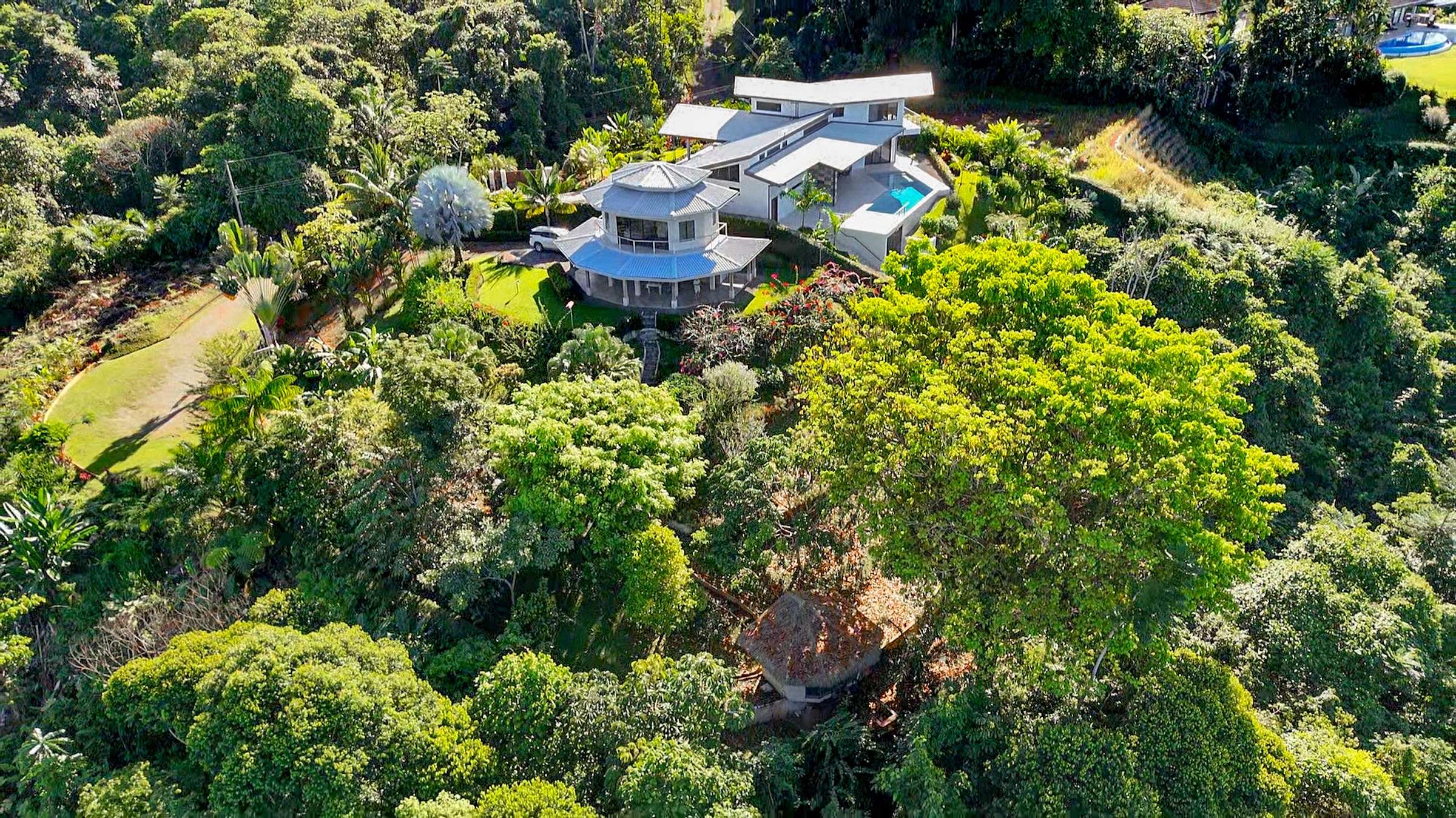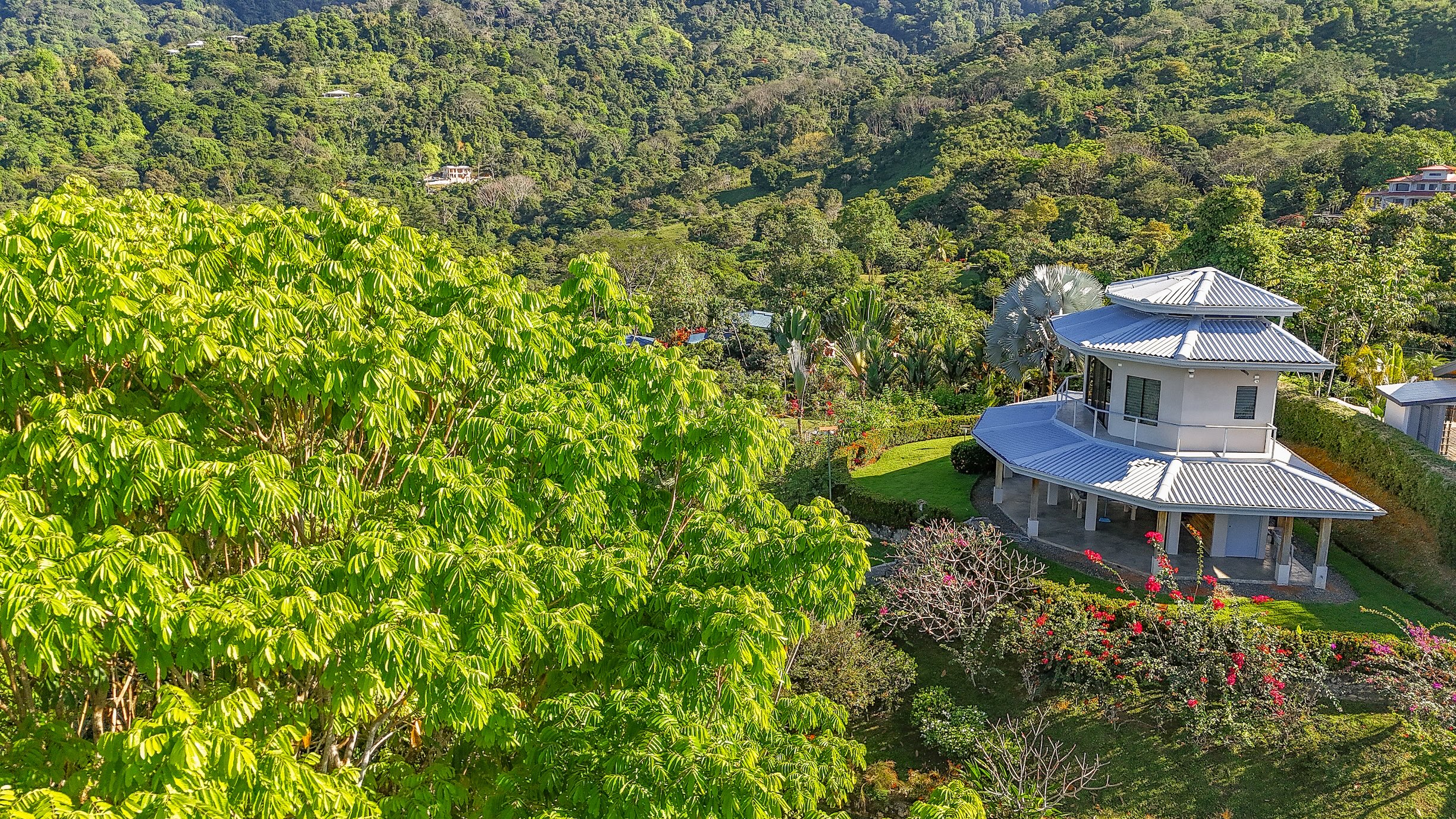 Los jardines están cuidadosamente mantenidos y se integran con el paisaje natural. Además, la propiedad incluye una cabaña independiente con vistas al valle selvático, perfecta como oficina, dormitorio adicional o unidad de alquiler para generar ingresos.