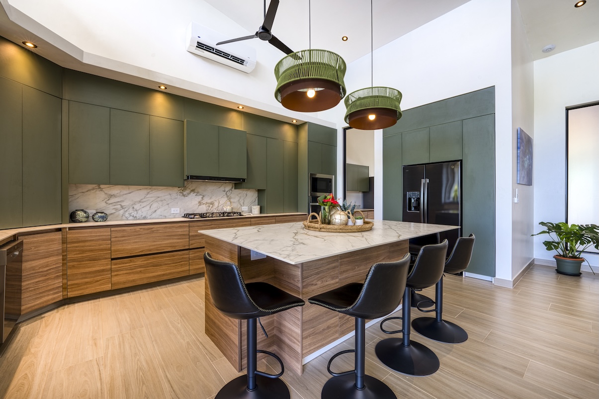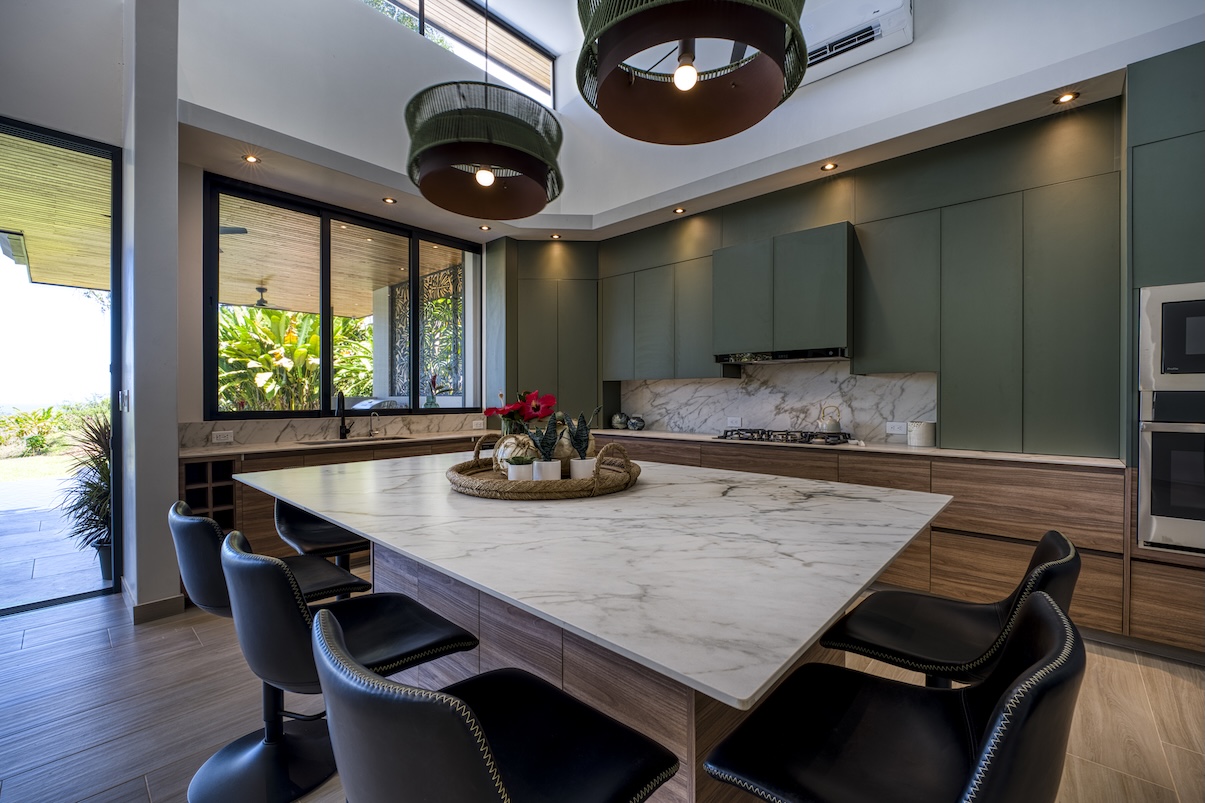 La cocina interior ofrece un diseño moderno con electrodomésticos de alta gama, una espaciosa despensa, refrigerador adicional y enfriador de vinos.