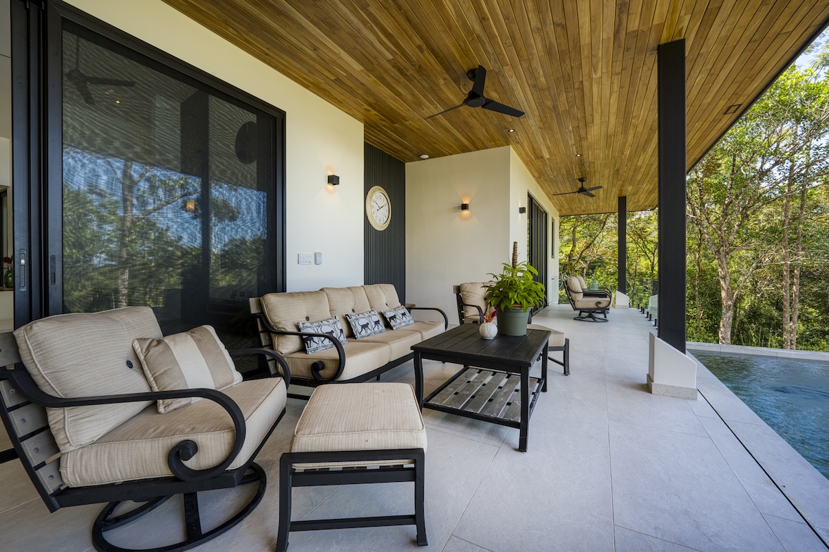 Bedrooms: Three large bedrooms, each with its own private terrace overlooking the rainforest, a serene stream, and abundant wildlife.