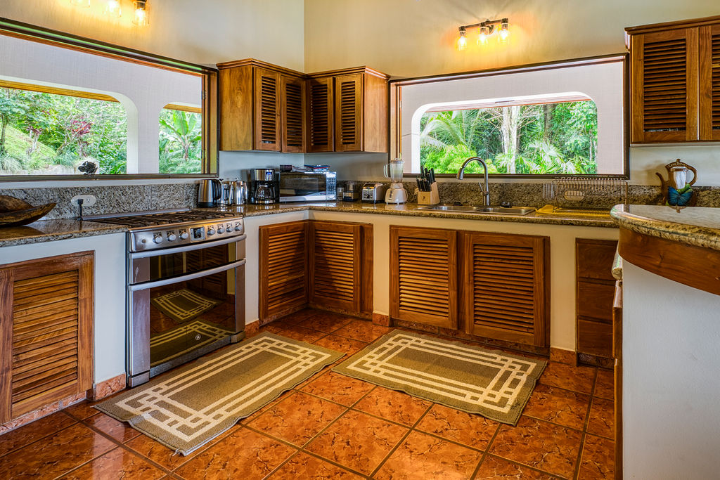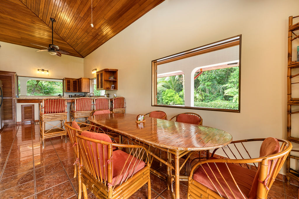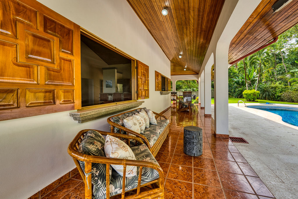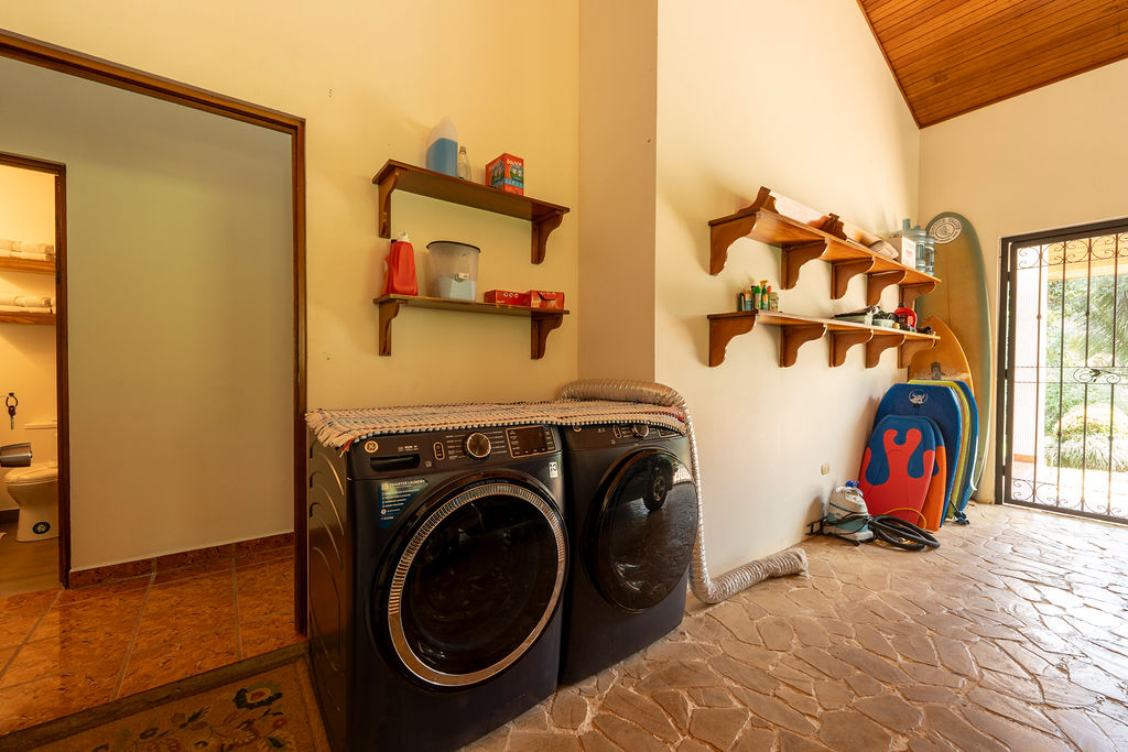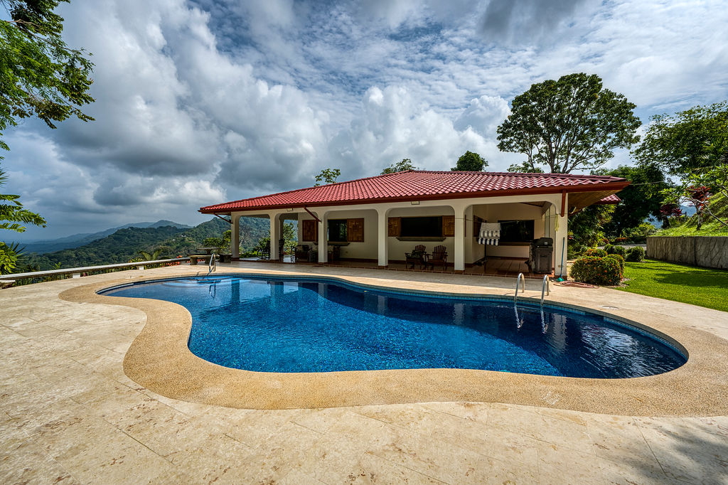 Located in the mountain community of Lagunas about 15 minutes from Playa Dominical with epic coastline and ocean views. This home is a perfect family vacation rental with large pool and spacious indoor and outdoor living areas. Fully equipped kitchen and covered outdoor BBQ area just outside the kitchen are ideal for cooking those memorable family meals.