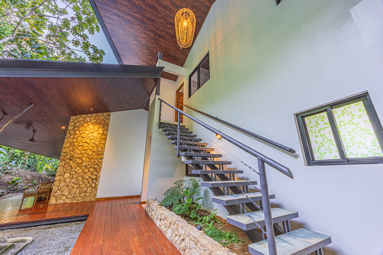 La entrada a la casa es magnífica, con cercas de hierro forjado a medida y un oasis en el patio trasero con plantas perfectas. El techo permite mantenerse seco, ya sea que entre con las compras o disfrute del patio trasero. Entre por la enorme puerta principal de laurel, equipada con teclado, para deleite del entretenimiento de la casa. Amplio concepto abierto con muebles artesanales de guanacaste, una amplia cocina de chef con gabinetes a medida, una gran isla de granito y encimeras. Disfrute de la posibilidad de abrir completamente la ventana de acordeón sobre el fregadero para disfrutar de la maravillosa brisa. Los gabinetes de cocina de teca hechos a mano y la decoración de paredes son solo algunas de las características de este maravilloso espacio. Un medio baño convenientemente ubicado ofrece fácil acceso para el entretenimiento, con un tocador de guanacaste.