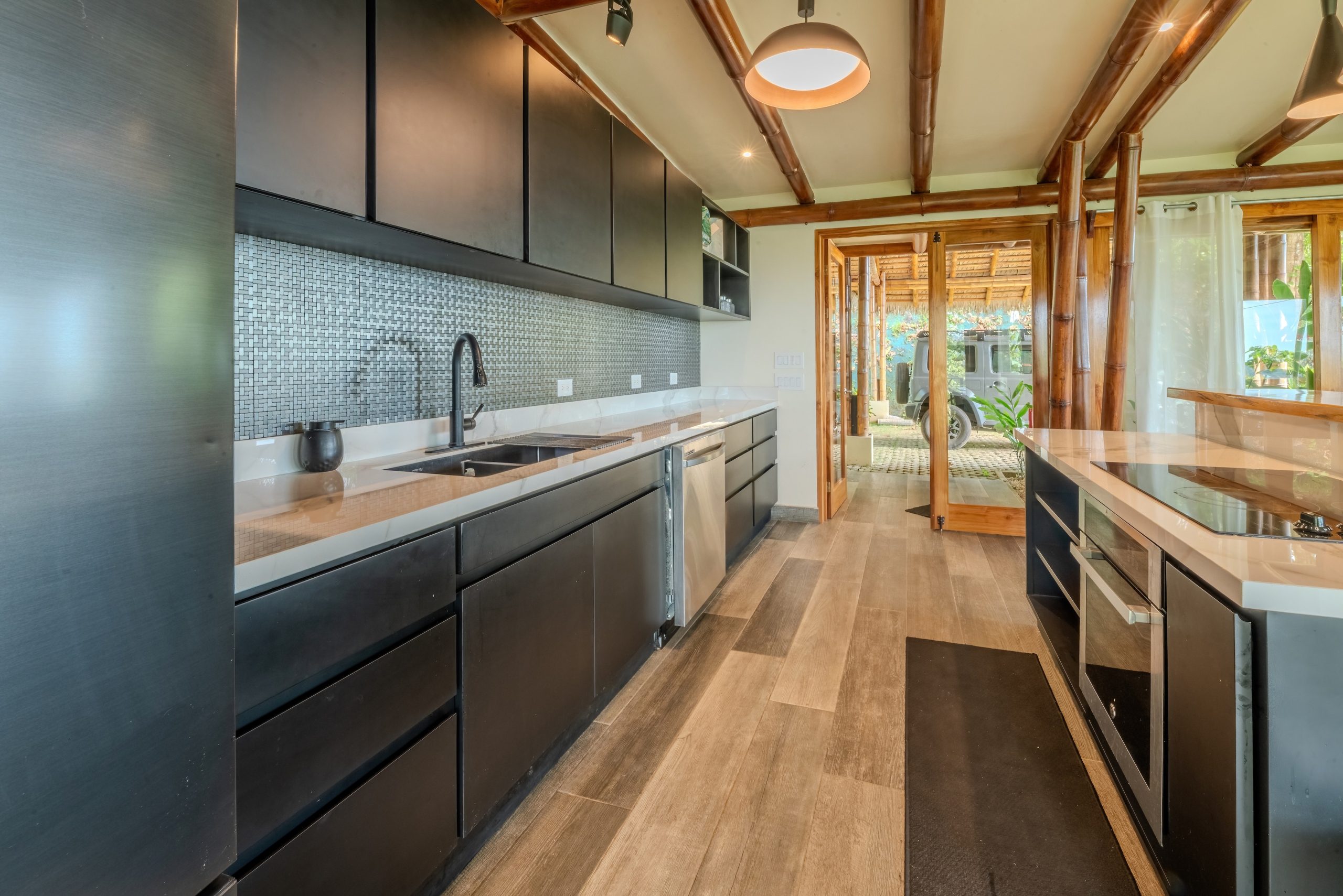 The interior is functional and well balanced. Granite countertops, solid wood doors, warm wood accents, and elegant metal stair railings create a sense of quality without excess. The spaces are bright, open, and oriented to capture natural breezes and sunset light, while the nearby jungle is a constant reminder that you are in a vibrant tropical environment.