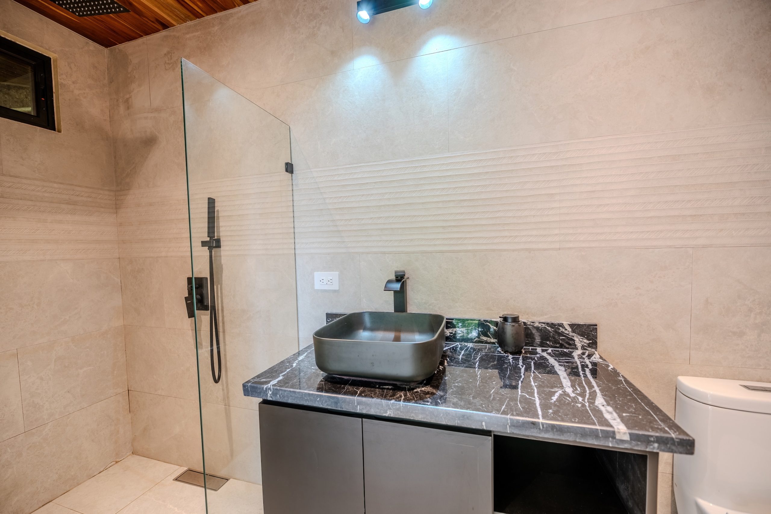 El interior es funcional y bien equilibrado. Encimeras de granito, puertas sólidas, cálidos detalles en madera y elegantes barandillas metálicas en las escaleras crean un ambiente de calidad sin excesos. Los espacios son luminosos, abiertos y orientados para aprovechar la brisa natural y la luz del atardecer, mientras la selva cercana recuerda constantemente que estás en un entorno tropical vibrante.