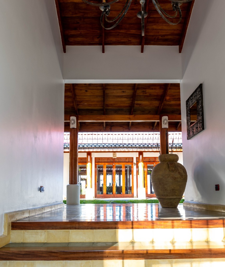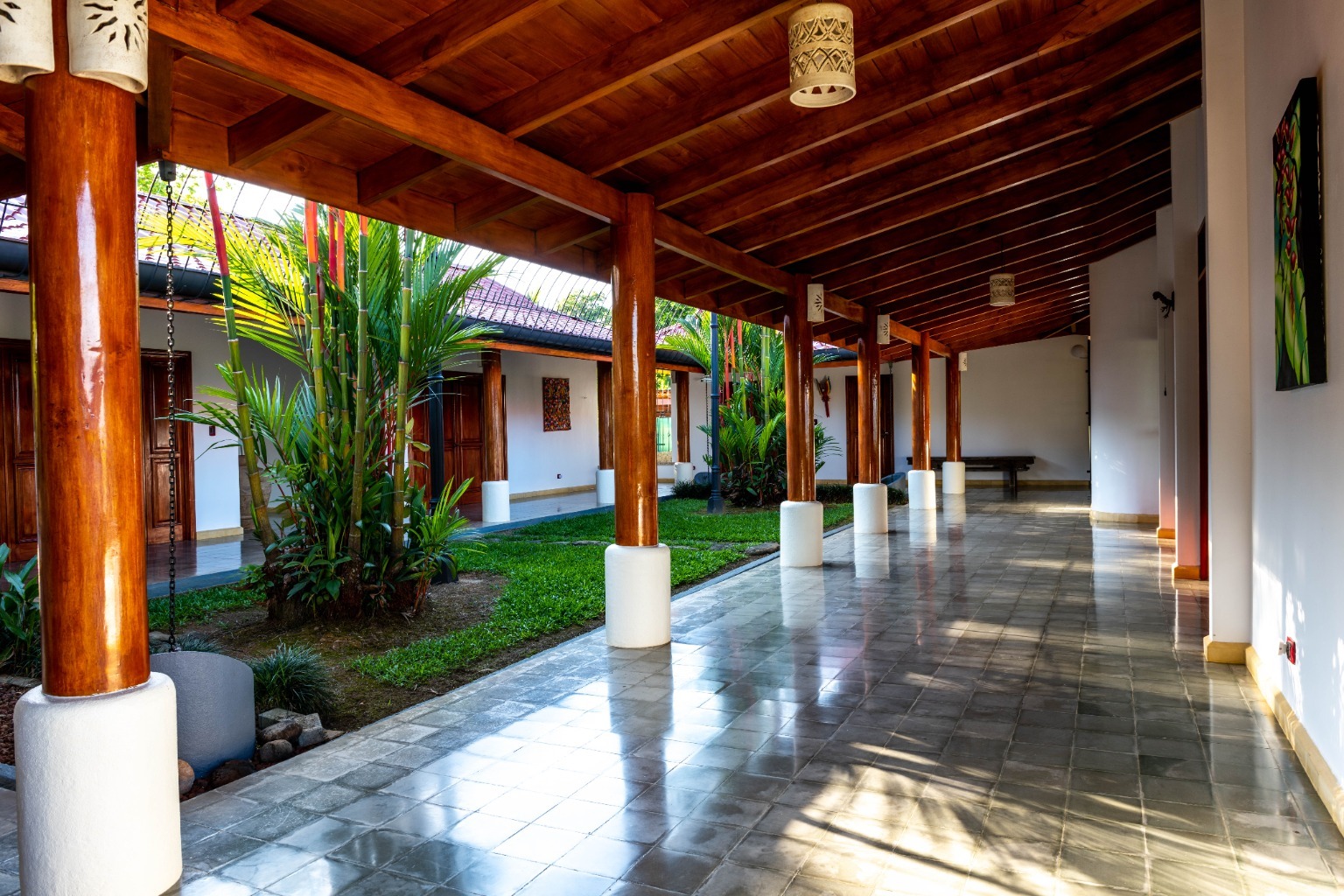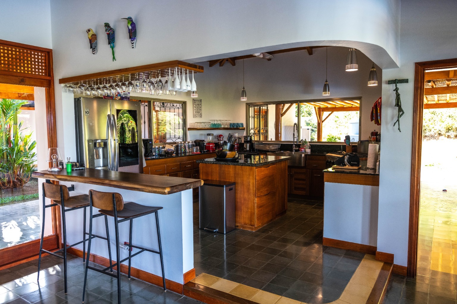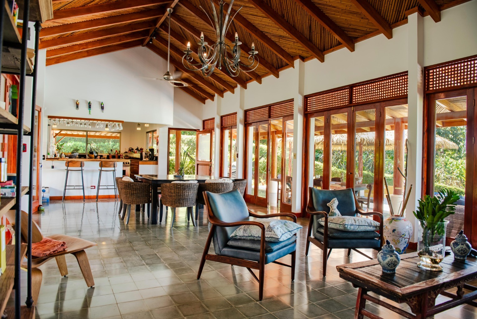 Casa principal: Elegancia europea con un diseño sofisticado de 4 habitaciones y 4 baños. Destacan los techos de bambú, finos acabados en madera, azulejos artesanales españoles y un patio central ajardinado que favorece la ventilación natural. La cocina gourmet se abre hacia una amplia terraza con piscina y puertas con mosquitero que integran perfectamente los espacios interiores y exteriores.