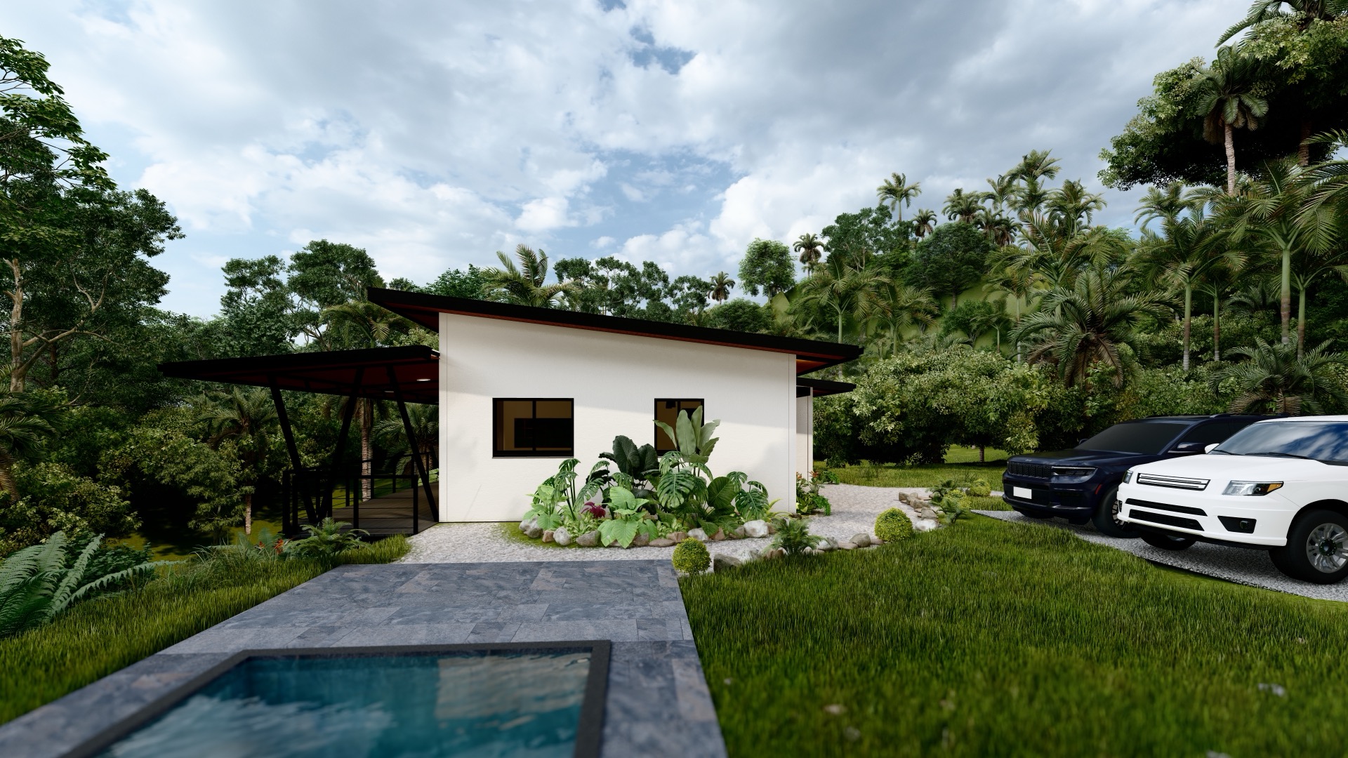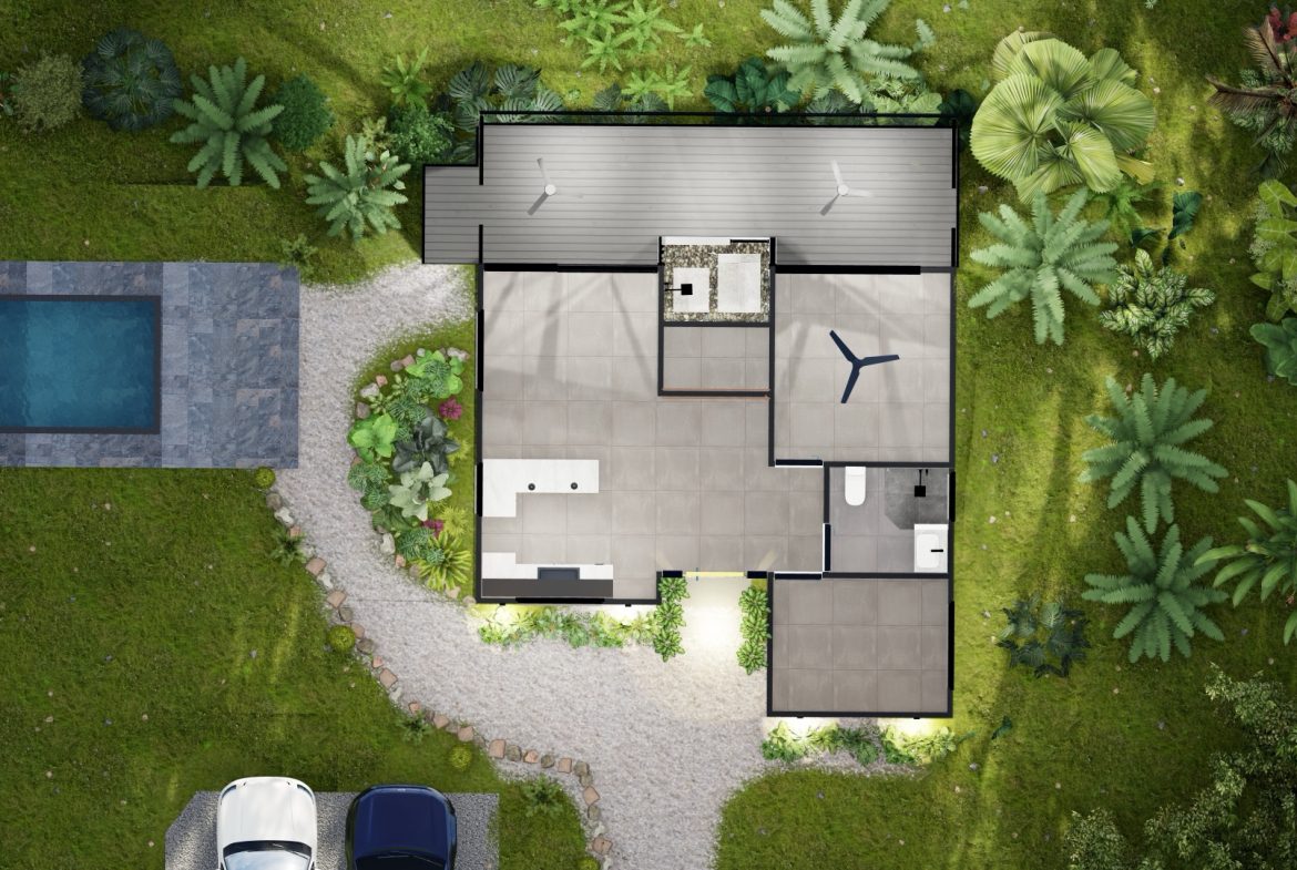 Currently under construction, with estimated completion in March 2026, this 2-bedroom, 1-bath residence has been thoughtfully designed and sits on a spacious 5,000 m² (1.25-acre) lot, ensuring privacy, openness, and full immersion in nature.