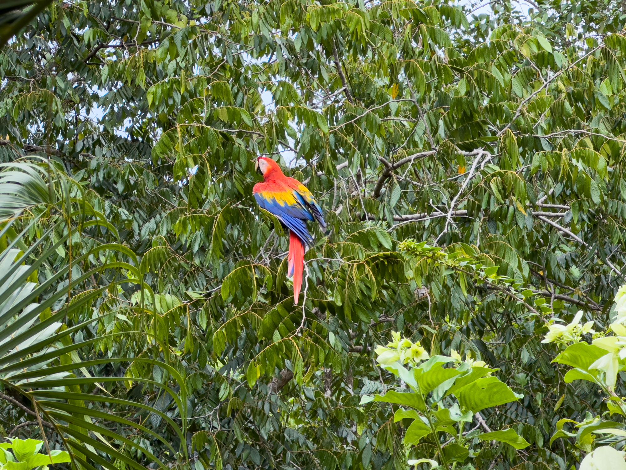 From the second-floor terrace, equipped with comfortable chairs, you can admire the green landscape and observe the frequent visits of scarlet macaws and titi monkeys , present on both floors of the house. -
