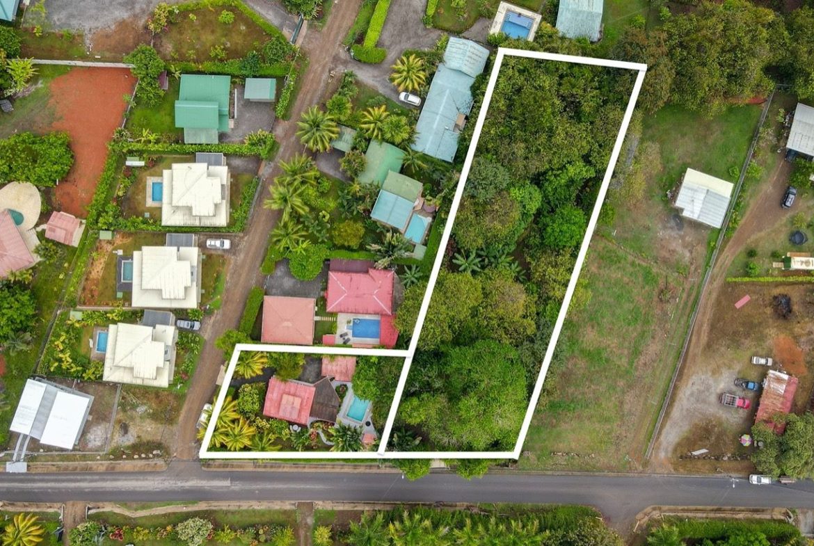 Ubicada en una esquina donde se cruzan una calle pavimentada principal y una tranquila vía lateral, esta propiedad en forma de L se despliega en dos áreas: un lote residencial íntimo con la casa y piscina, y una generosa sección de jardín tropical que forma la base de la L. Este jardín es un oasis botánico cuidadosamente diseñado, con árboles frutales maduros como mango, pomelo, mangostán, limón, lima, naranja y manzana de agua. Un verdadero paraíso que recuerda a un parque privado.