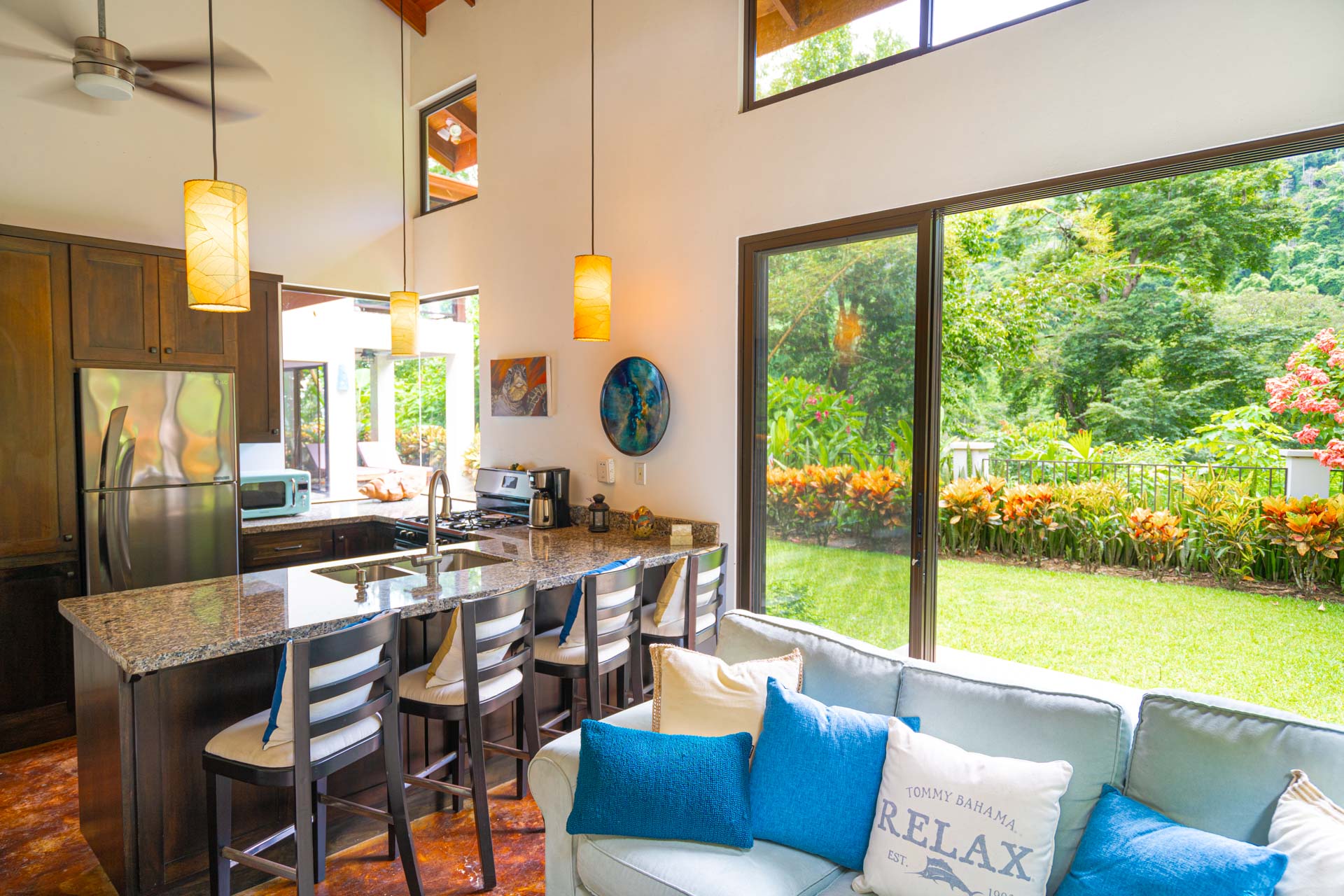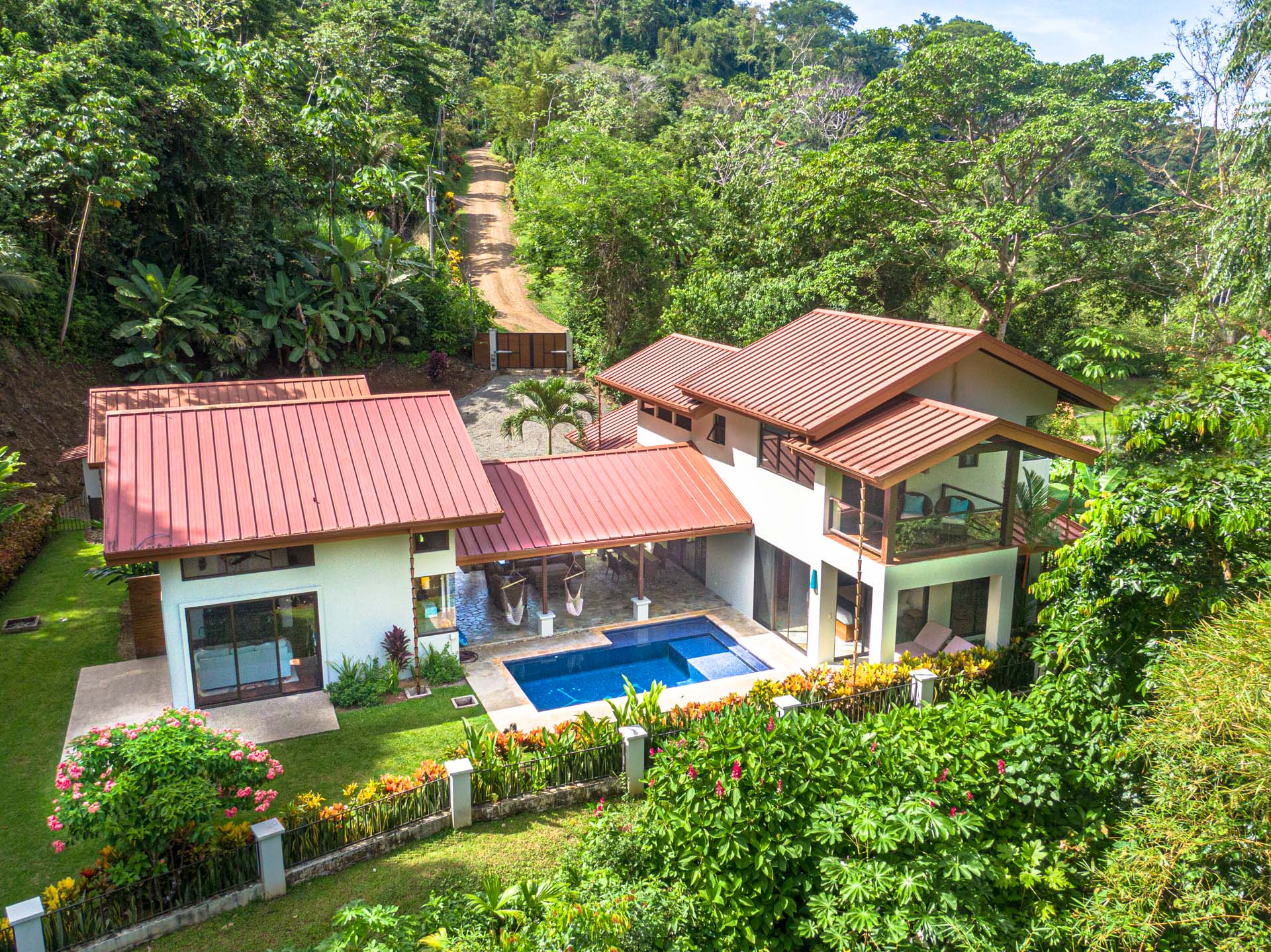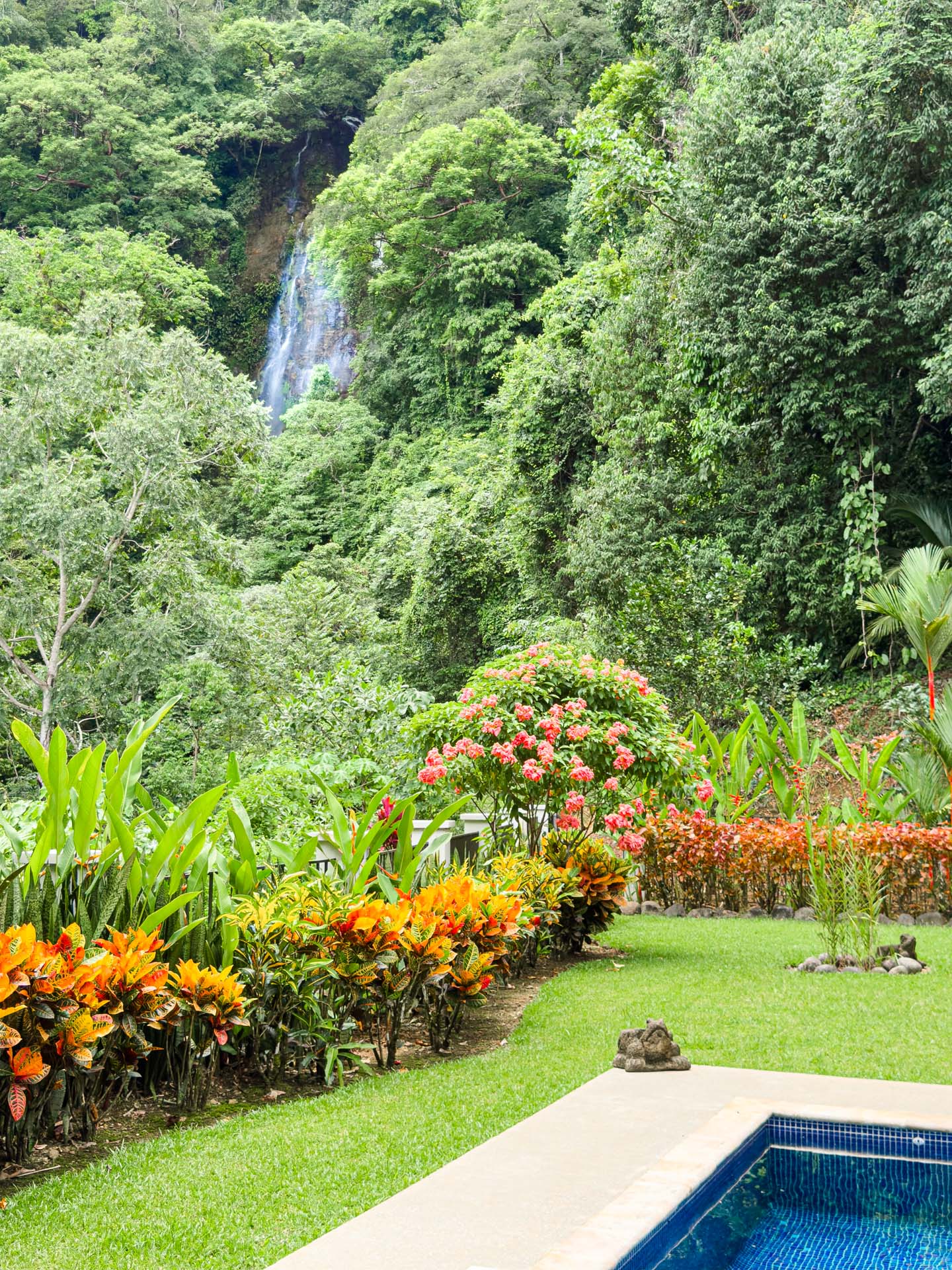 Enjoy the tranquility of the jungle setting with the constant sound of falling water and a direct view of the waterfall from several points on the property. -