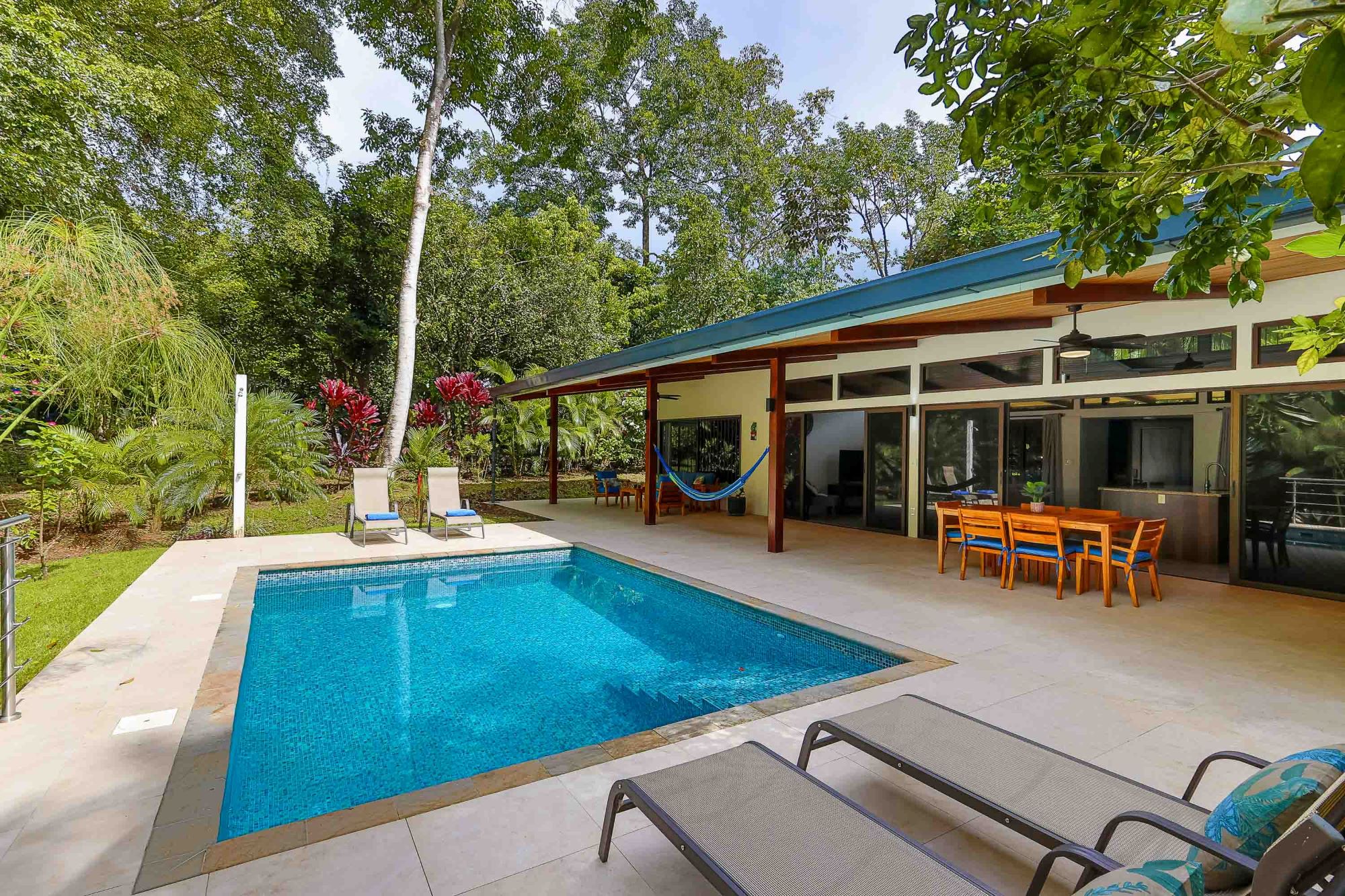 Built just two years ago, this modern home offers spacious living and an open layout ideal for a tropical lifestyle. The functional kitchen is equipped for both cooking and entertaining. Ceiling fans and air conditioning units in the bedrooms ensure year-round comfort. It also features a spacious laundry room and a dedicated work area, perfect for those working from home. The large covered terrace, adjacent to the shimmering pool, is ideal for relaxing or entertaining. All this in a private setting with no immediate neighbors.