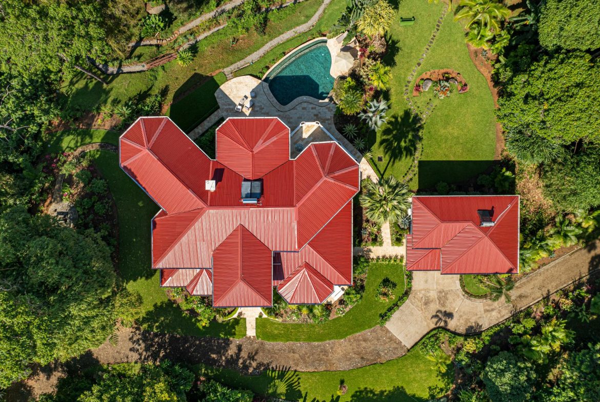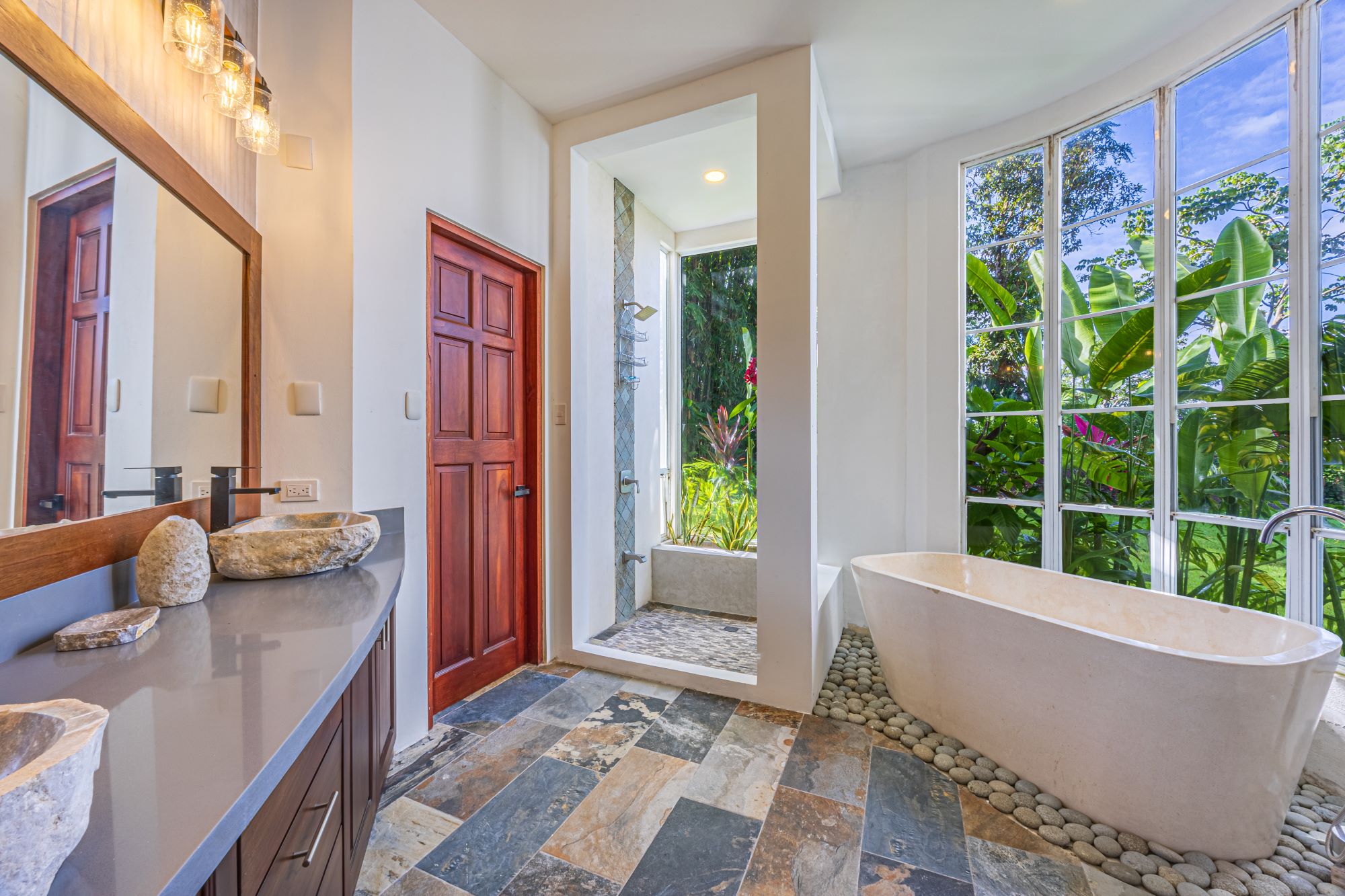 An extensive one-hectare tropical garden , with meticulous landscaping in the Costa Rican style.