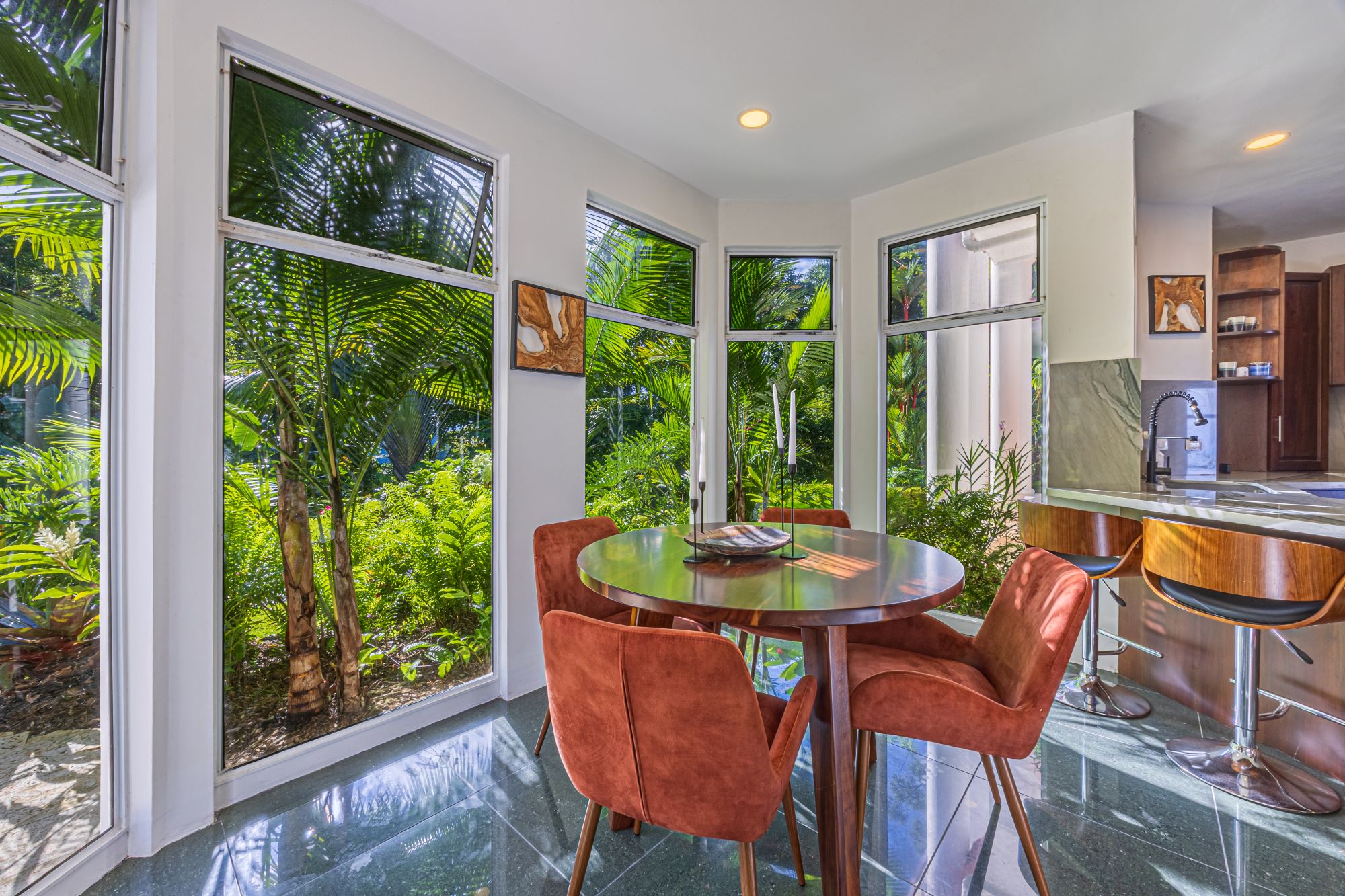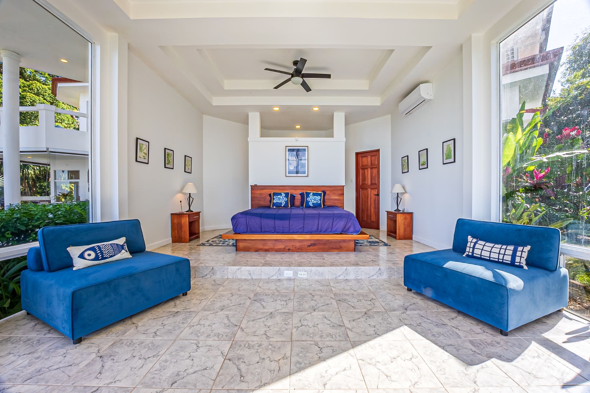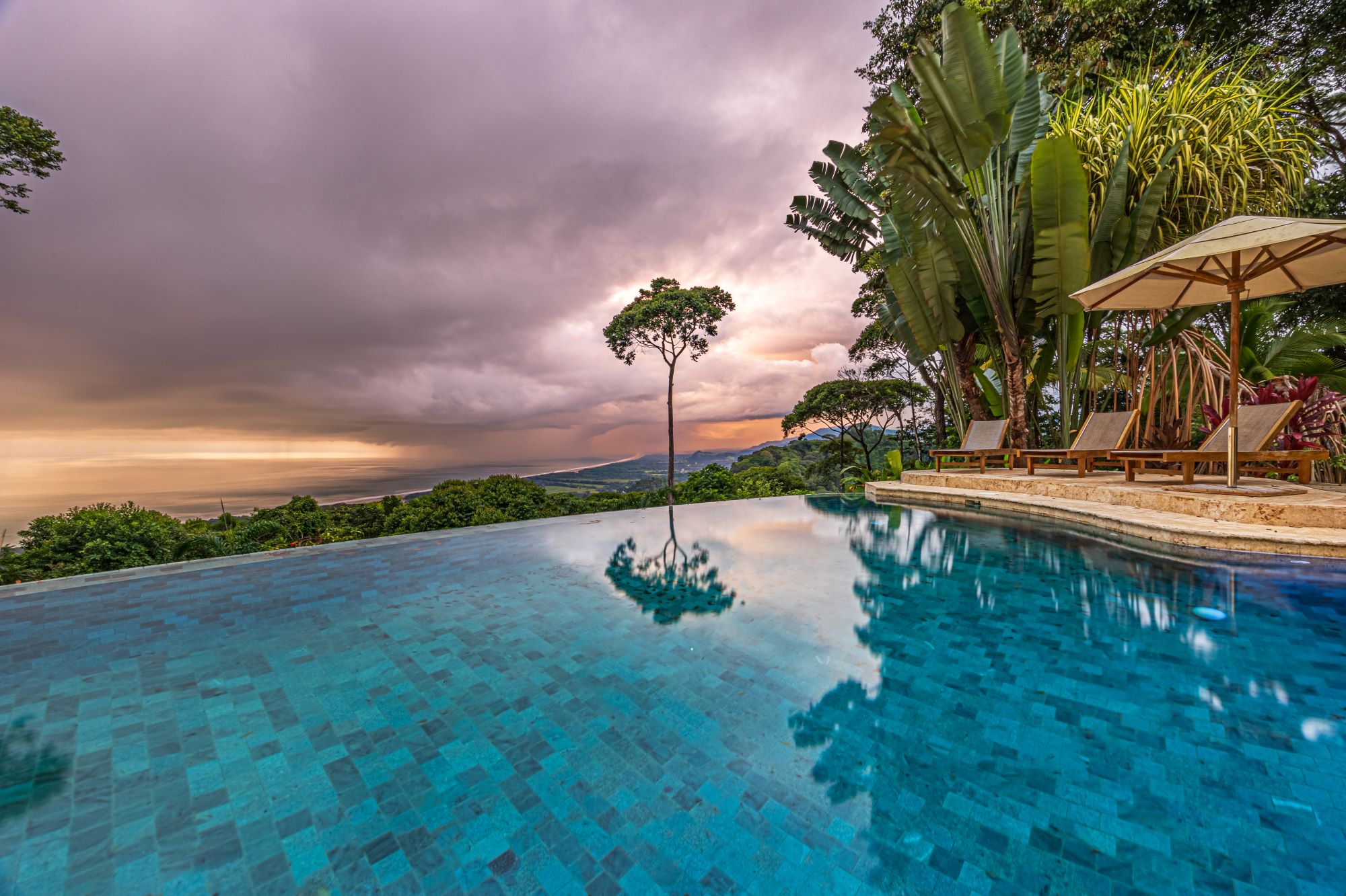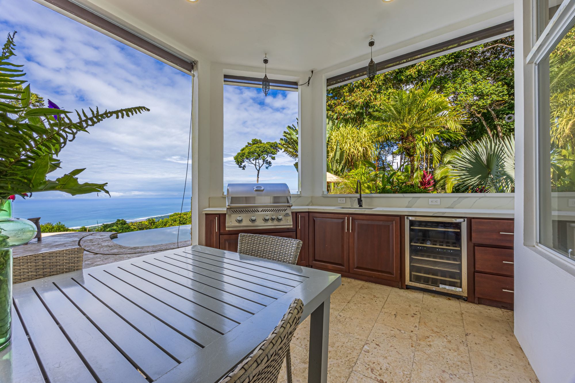 Desde casi todos los espacios de la casa principal se disfruta de impresionantes vistas al océano y a las montañas, creando un espectáculo natural que cambia con cada momento del día. Las vistas al mar se extienden desde Manuel Antonio al norte hasta la Isla del Caño al sur, con atardeceres sobre el Pacífico 365 días al año, como si el horizonte se desplegara desde sus propios pies.