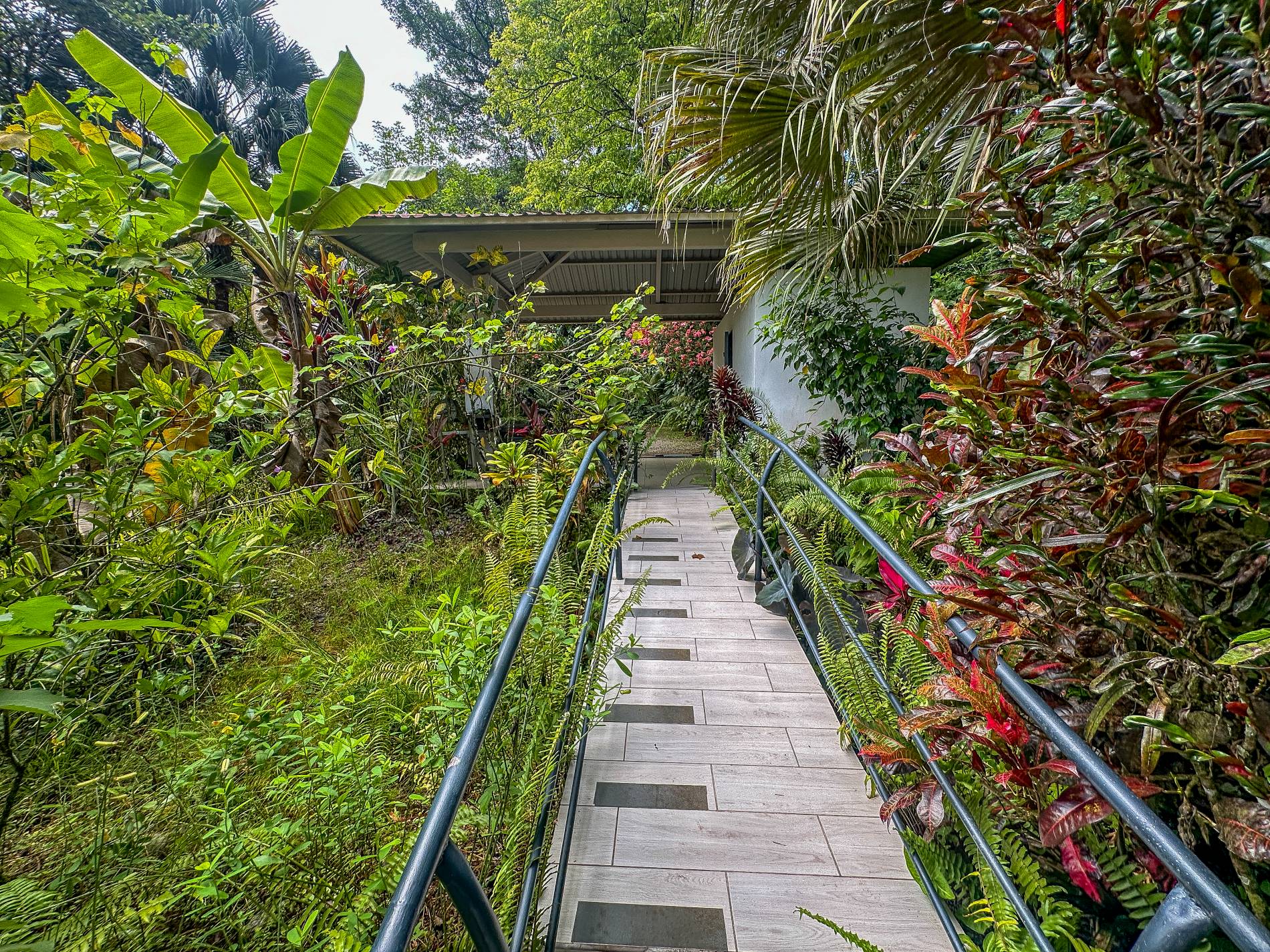 La cochera techada protege tanto a su vehículo como a usted del sol o la lluvia. Desde allí, una pasarela elevada conecta directamente con la casa, que se encuentra a solo 1,4 km de la carretera Costanera. El acceso incluye un trayecto pintoresco por el nuevo puente de Ojochal y pasa por algunos de los restaurantes y atracciones más reconocidos de la zona.