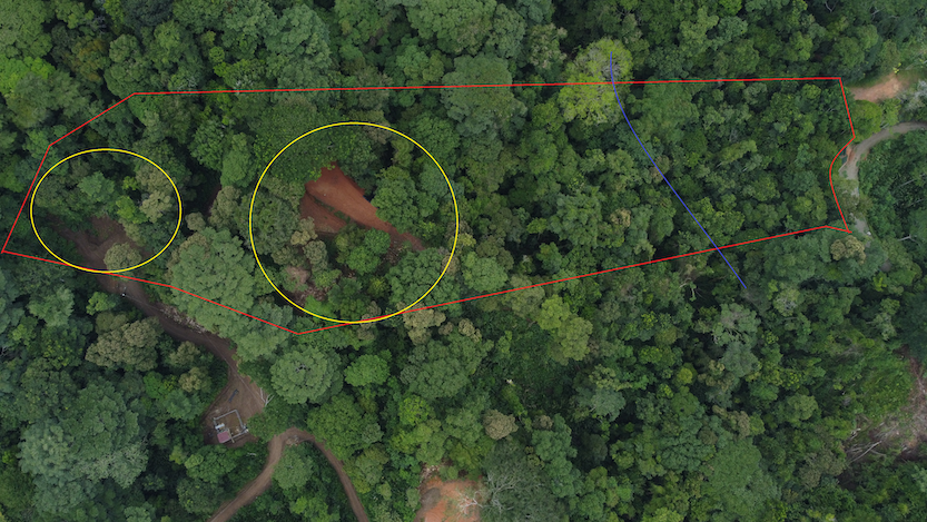 La distribución del terreno permite desarrollar espacios íntimos o compartidos, adaptándose perfectamente al entorno selvático. Este lugar invita a crear un proyecto que celebre la vida, la creatividad y la conexión con la naturaleza.