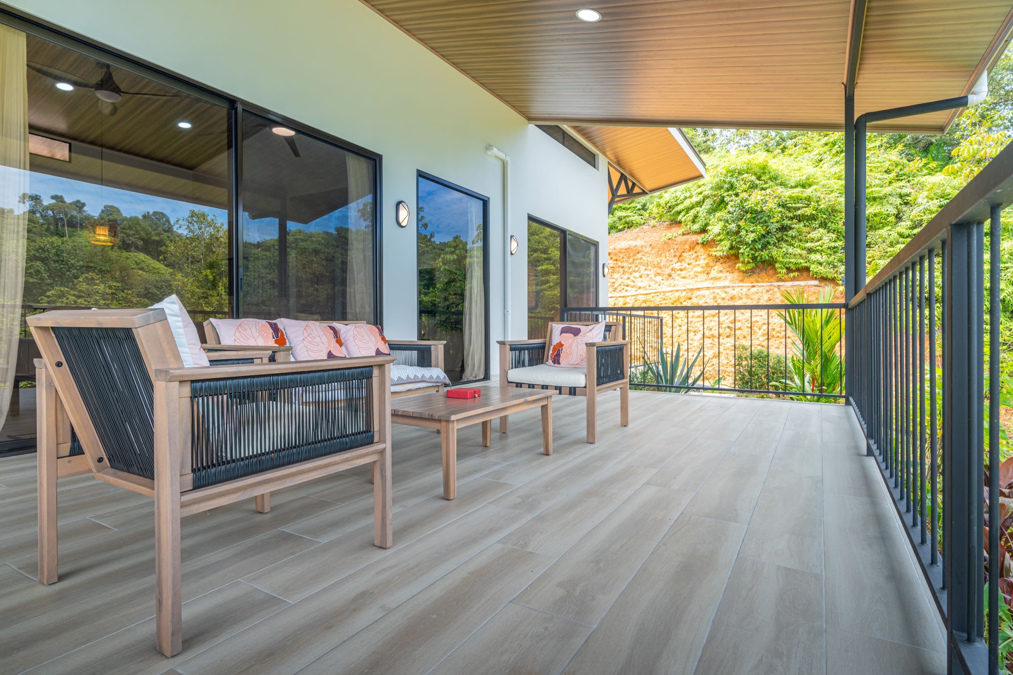 Large covered terrace ideal for relaxing, dining al fresco, and taking in the views of the jungle and mountains.