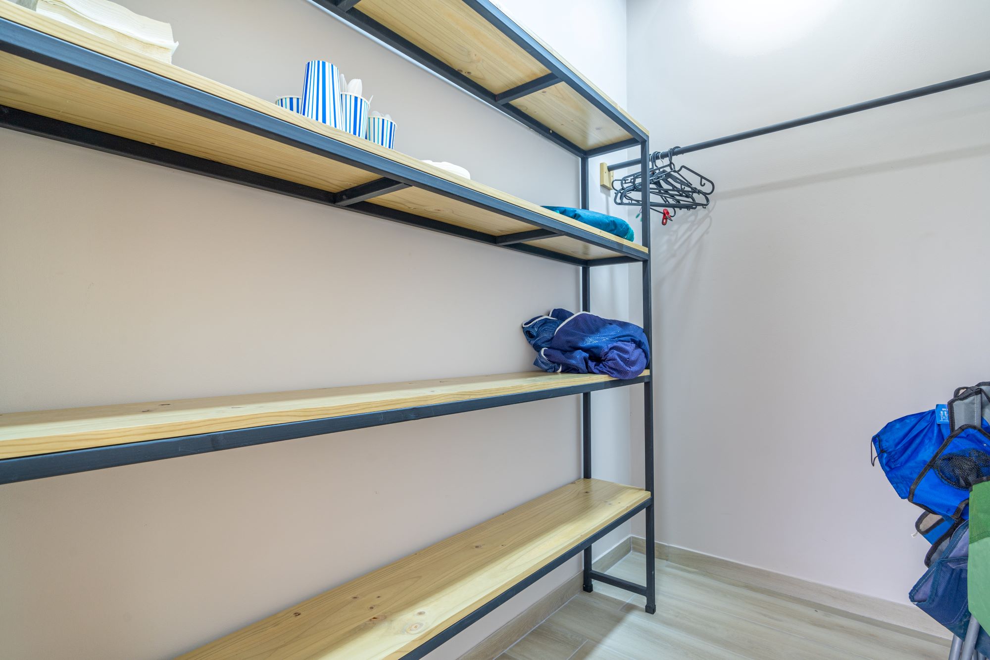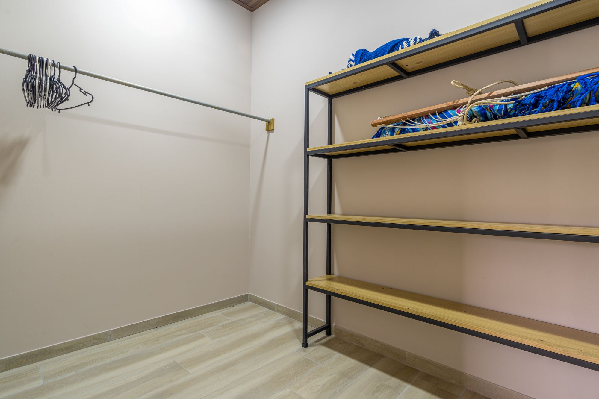 Two master suites, each with a walk-in closet and direct outdoor access. One of them is located just steps from the pool.