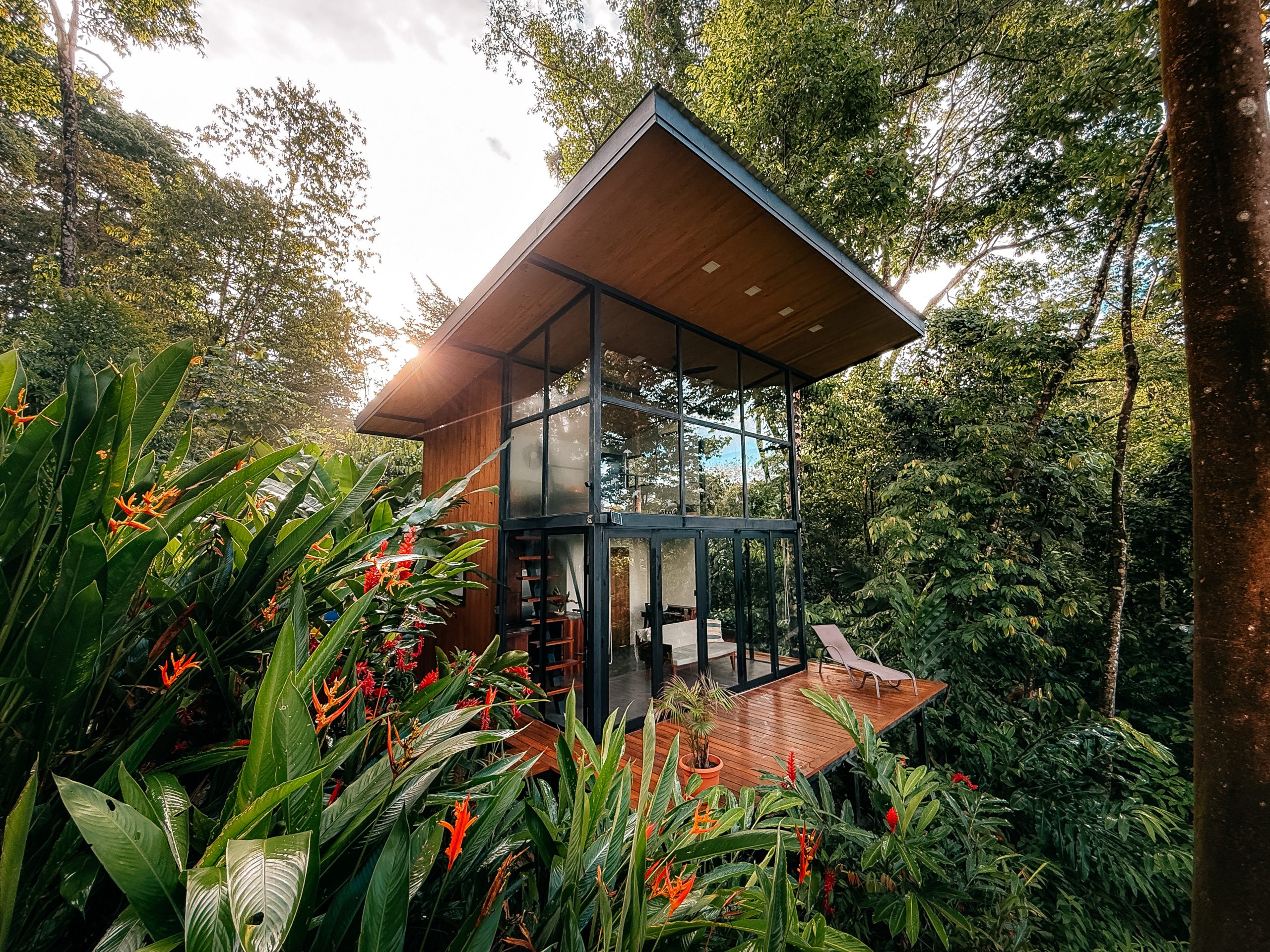 Puertas de vidrio de piso a techo que integran el interior con la jungla y la brisa marina
