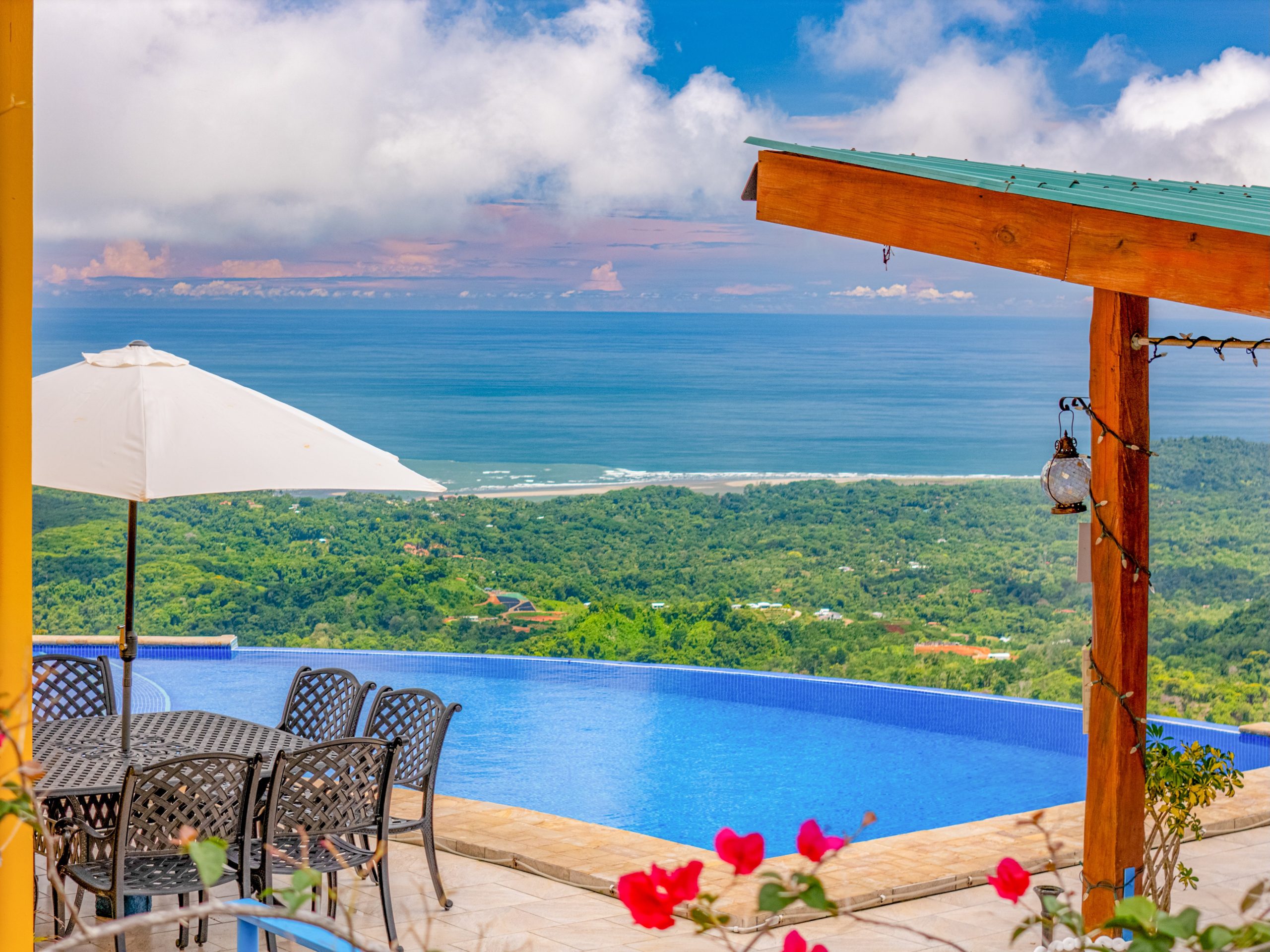 Vistas incomparables: Contemple panorámicas al océano, majestuosas montañas, atardeceres todo el año y la tranquilidad del valle. Desde la villa podrá admirar también el pintoresco pueblo de Ojochal.