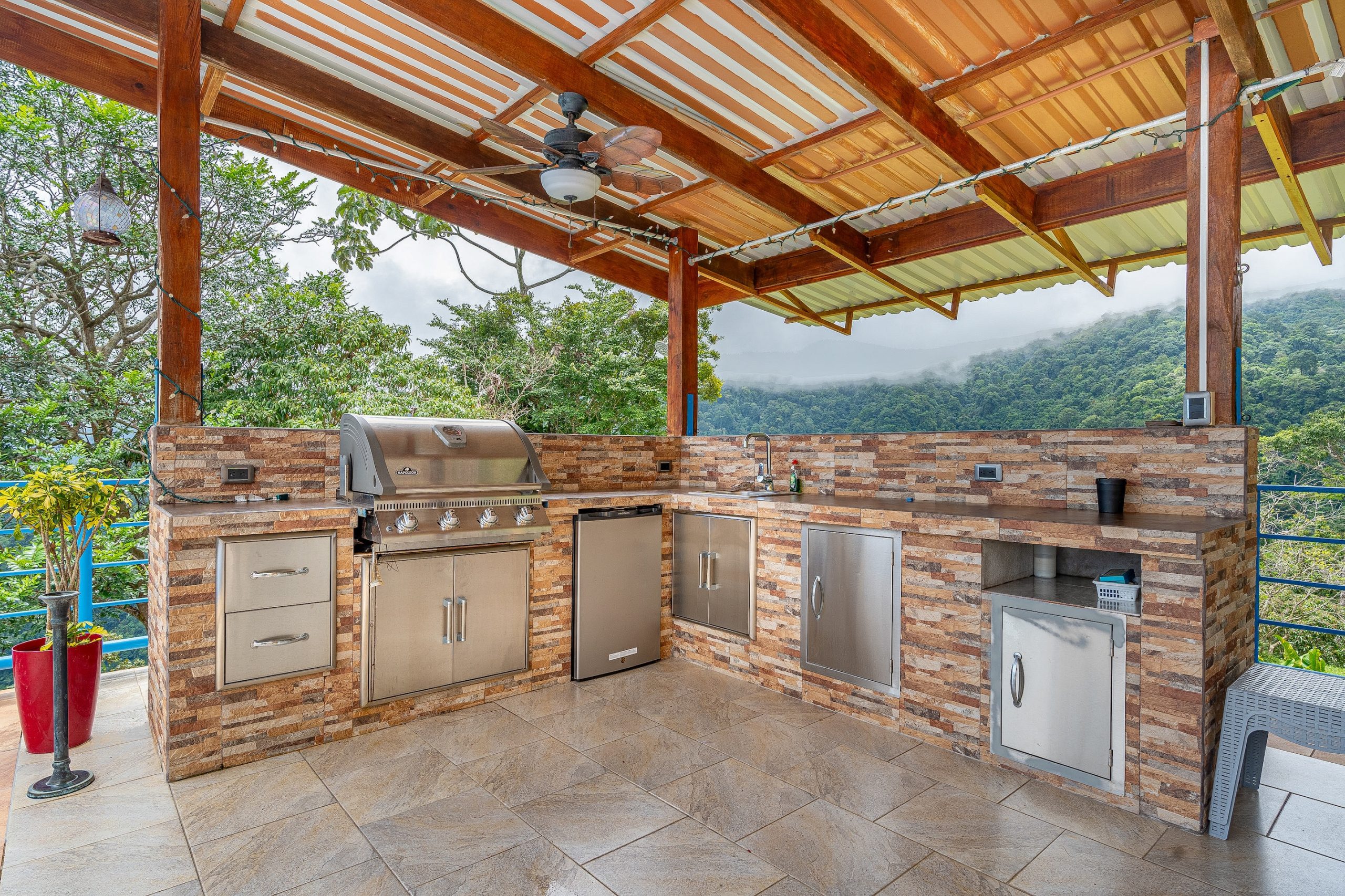 Outdoor kitchen: Ideal for memorable gatherings. Whether grilling fresh seafood or preparing tropical dishes, this space invites you to enjoy al fresco dining.