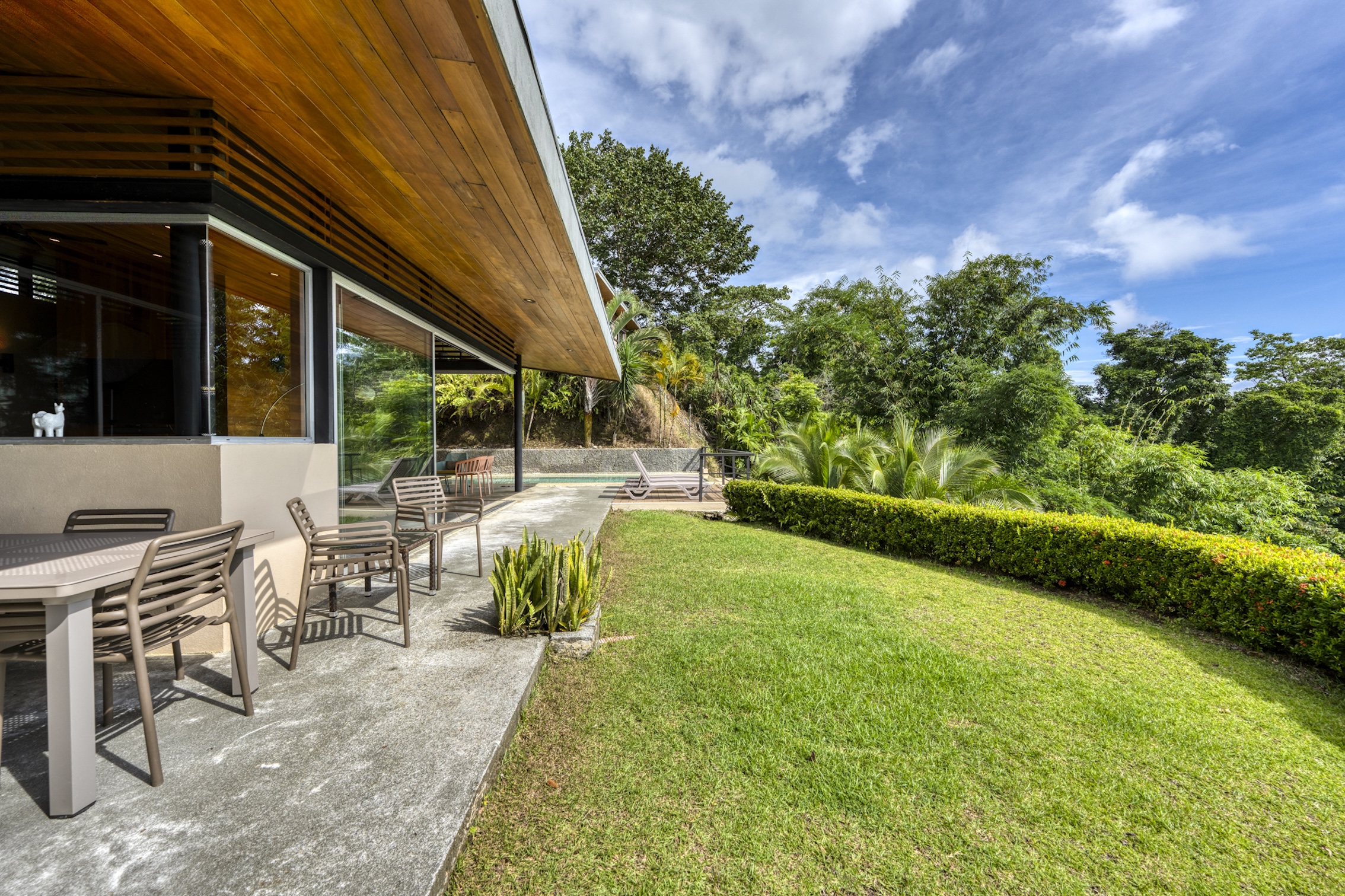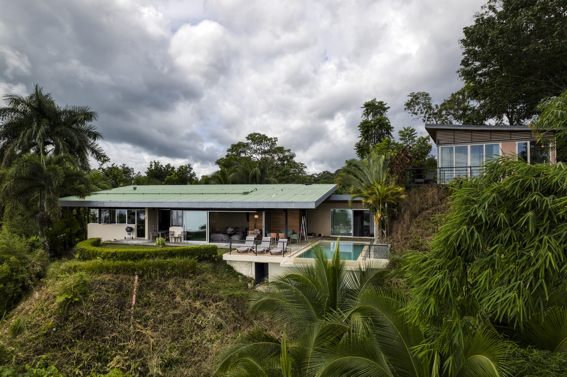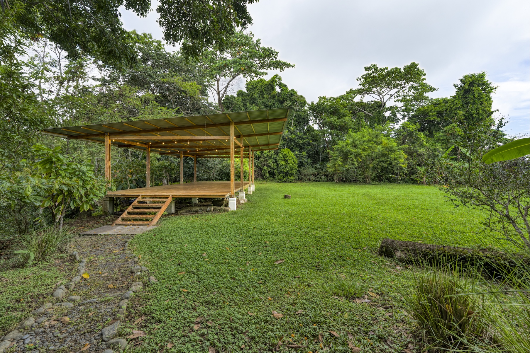 La villa ha sido diseñada meticulosamente para atraer a viajeros de alto poder adquisitivo y grupos que buscan un refugio. Una impresionante piscina infinita con vista al mar domina el espacio exterior, brindando una vista privilegiada de las puestas de sol en la selva y la refrescante brisa tropical. Junto a la piscina, una amplia terraza de yoga con capacidad para hasta 20 personas es perfecta para retiros de bienestar, eventos privados o sesiones de ejercicio grupales. Rodeada de exuberante selva tropical, árboles frutales y una rica fauna, que incluye tucanes, guacamayos y monos, la propiedad ofrece una conexión única con la naturaleza.