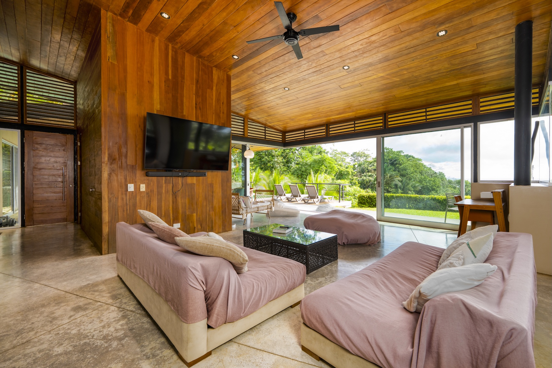 The villa has been meticulously designed to appeal to high-net-worth travelers and groups seeking a secluded retreat. A stunning infinity pool overlooking the ocean dominates the outdoor space, offering a privileged view of the jungle sunsets and the refreshing tropical breeze. Adjacent to the pool, a spacious yoga terrace accommodating up to 20 people is perfect for wellness retreats, private events, or group exercise sessions. Surrounded by lush rainforest, fruit trees, and abundant wildlife, including toucans, macaws, and monkeys, the property offers a unique connection with nature.