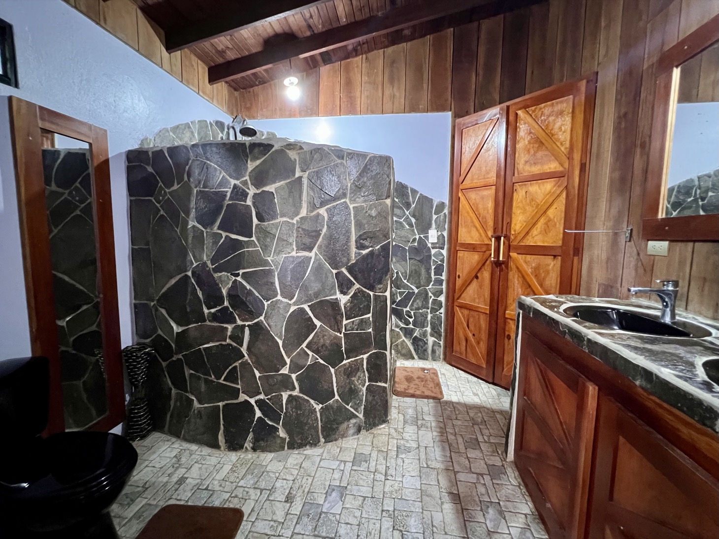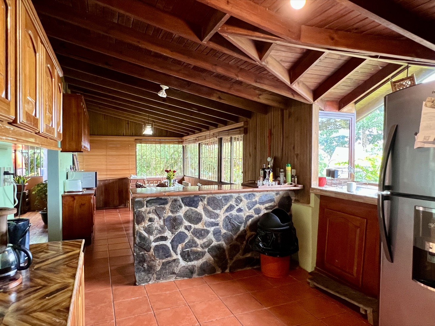 La propiedad cuenta con estructuras rústicas existentes, incluyendo una casa principal y tres cabañas, que brindan múltiples posibilidades de renovación o rediseño según la visión del comprador. En el centro del lote se encuentra una piscina amplia y recientemente renovada, que aporta valor y atractivo adicional al lugar.