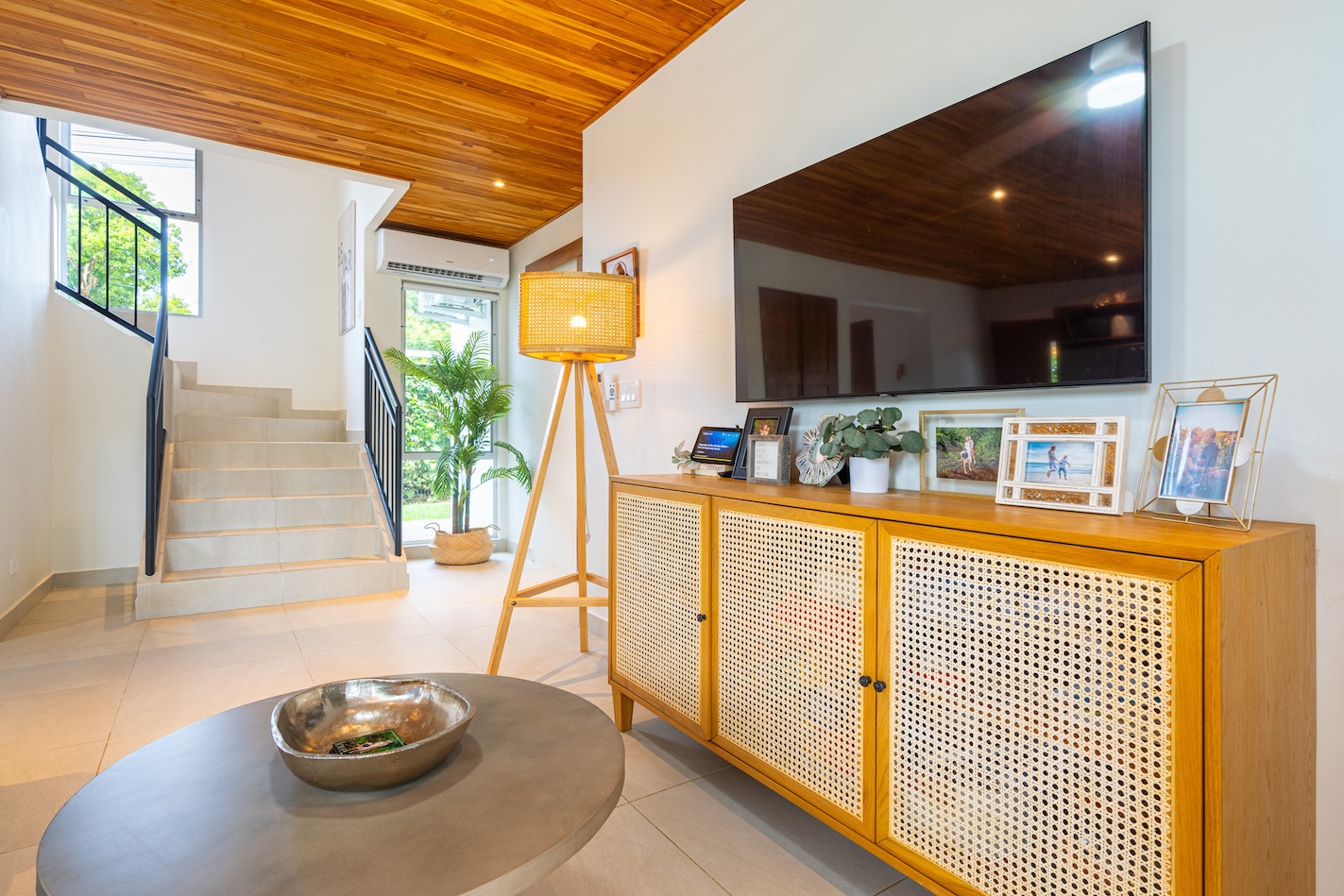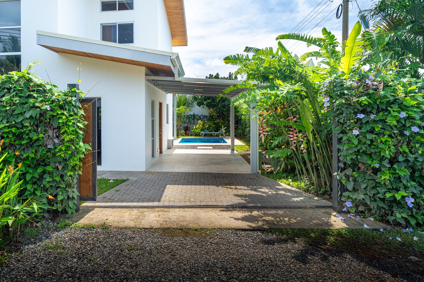 Esta residencia contemporánea de tres dormitorios combina diseño sofisticado con confort diario, creando un espacio que es tan funcional como hermoso. Ubicada en una calle pavimentada en el centro de Ojochal, ofrece lo mejor de ambos mundos: acceso a pie a cafeterías, restaurantes y mercados locales, mientras disfruta de total privacidad rodeado de exuberante vegetación tropical.