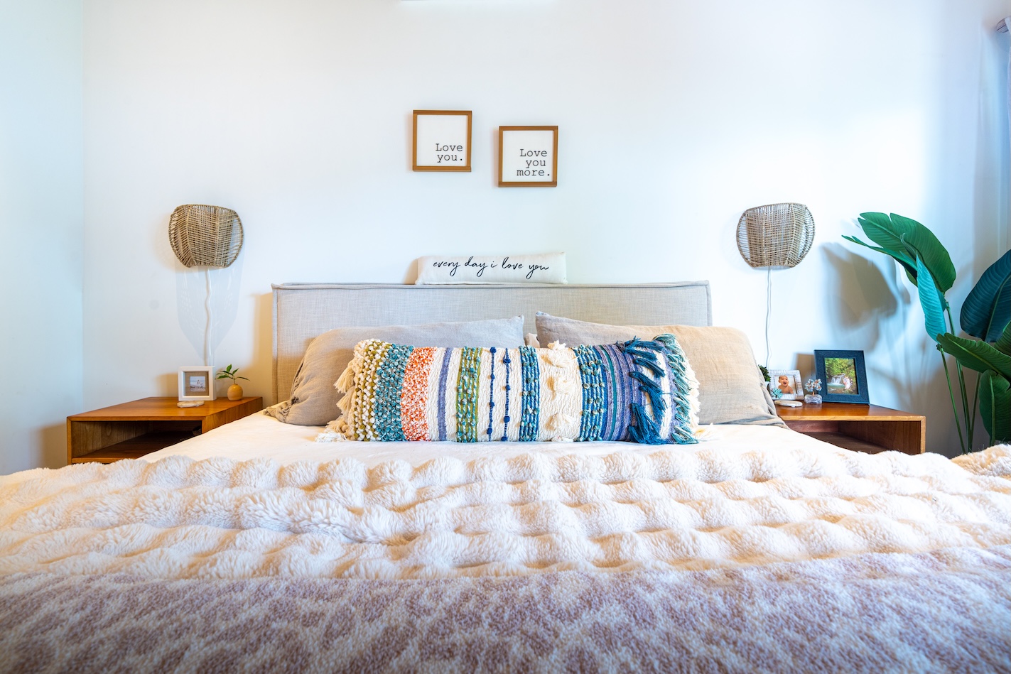 The kitchen and living room are seamlessly integrated for relaxing or entertaining, with air conditioning and ceiling fans throughout the home ensuring year-round comfort.
