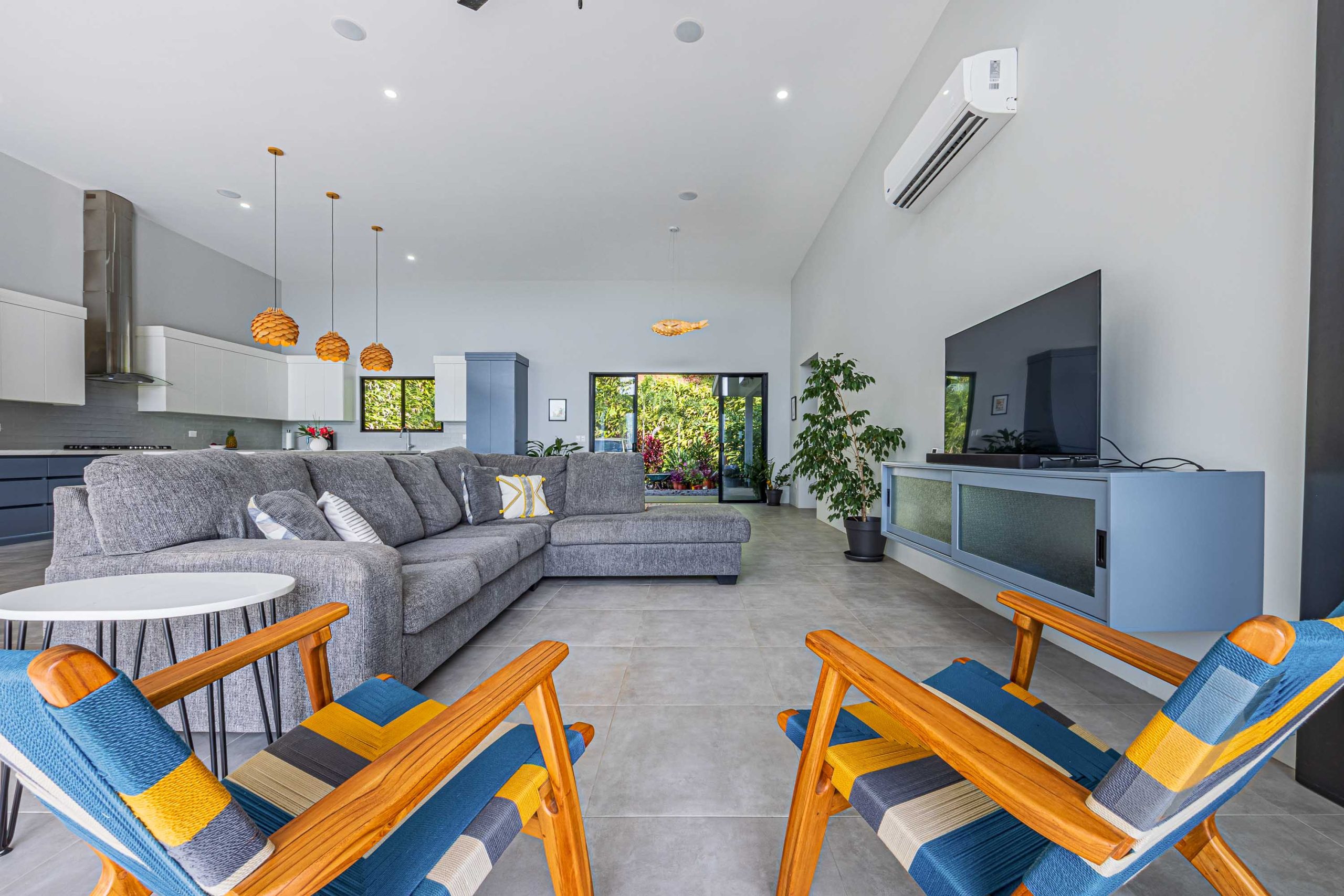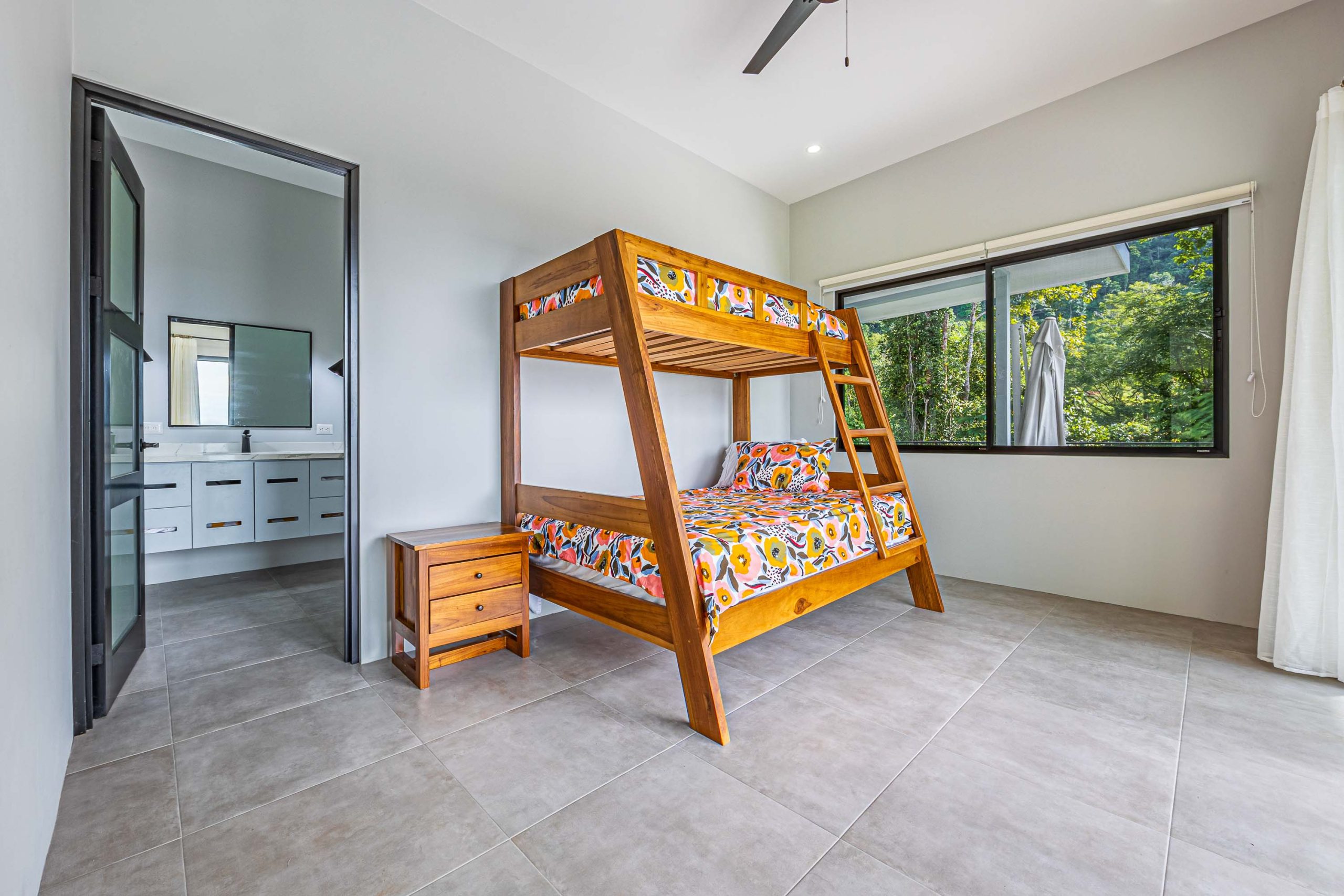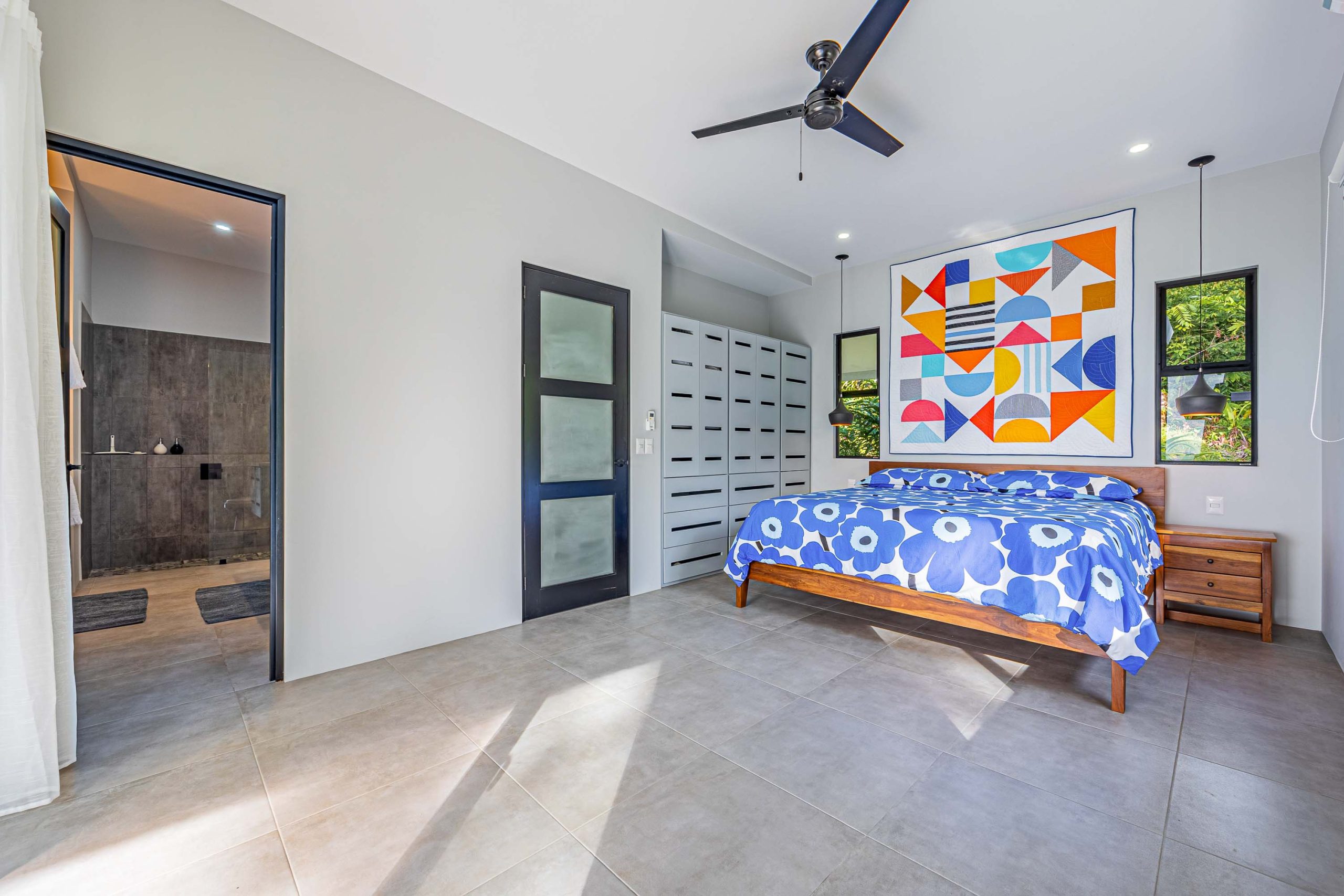 La propiedad se vende completamente amueblada, con piezas excepcionales como una mesa de comedor de Guanacaste maciza para ocho personas, además de sillas y bancas artesanales de tela Masaya tejida a mano. Dos de los tres dormitorios cuentan con camas king y ropa de cama premium, mientras que el tercero dispone de una cama queen y una cama individual, ambas elaboradas en madera de Guanacaste.