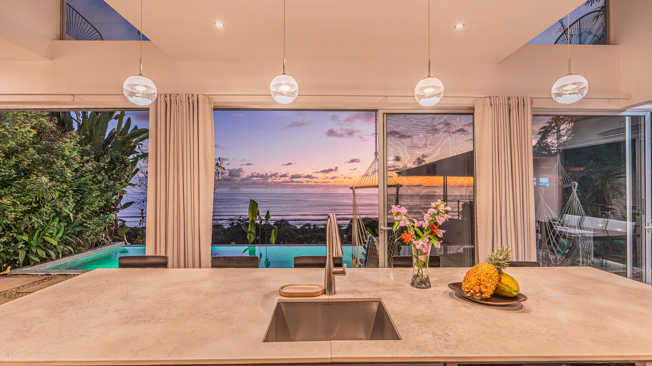 Located within a private and secure community, this spectacular villa offers the perfect balance of privacy, natural surroundings, and an exceptional location. Every bedroom enjoys stunning ocean views, and the property is within close proximity to the beach and just minutes from the shops, restaurants, and services of Dominical.