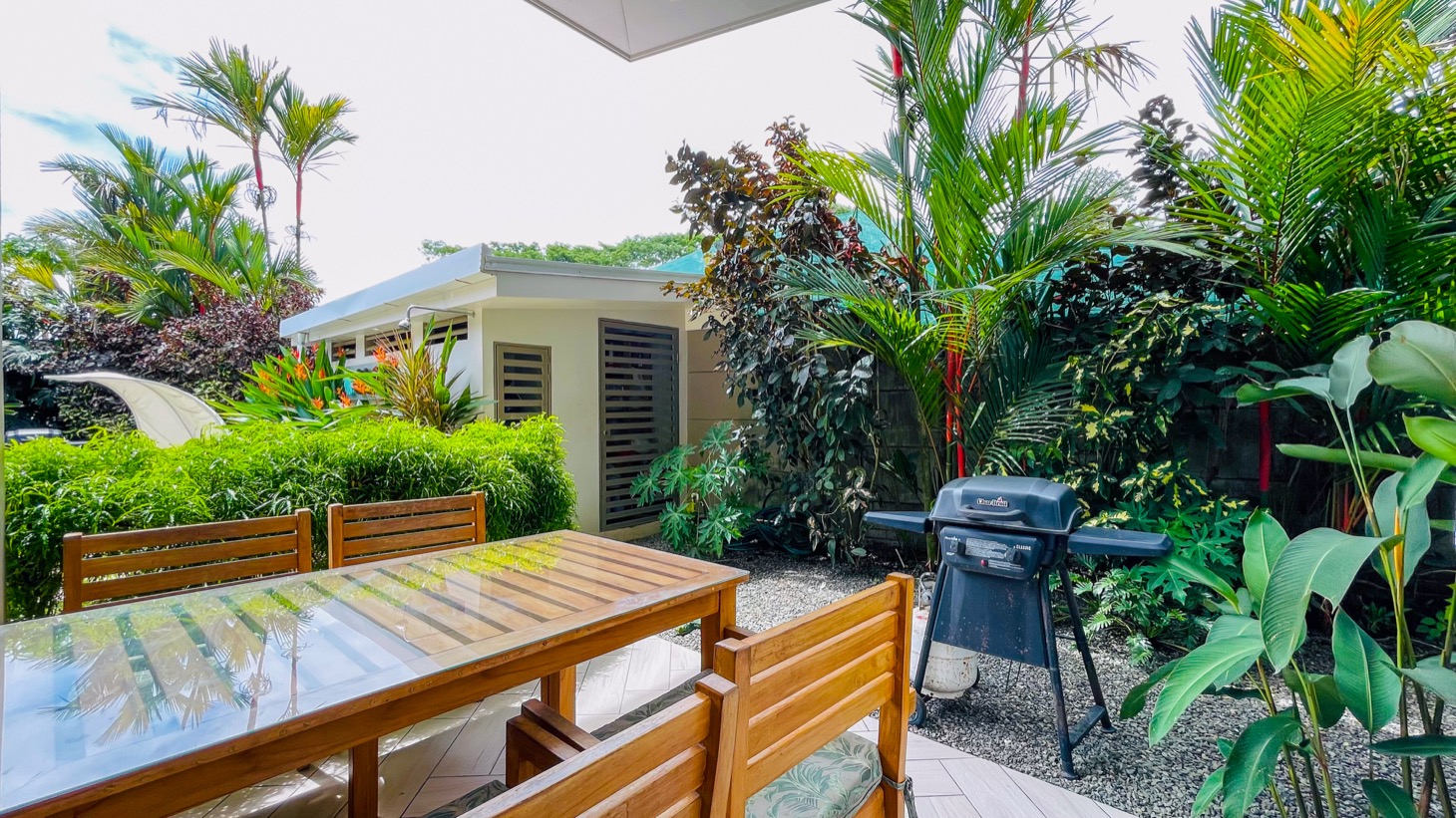 Jardines tropicales cuidadosamente diseñados y amplias áreas al aire libre ideales para relajarse.