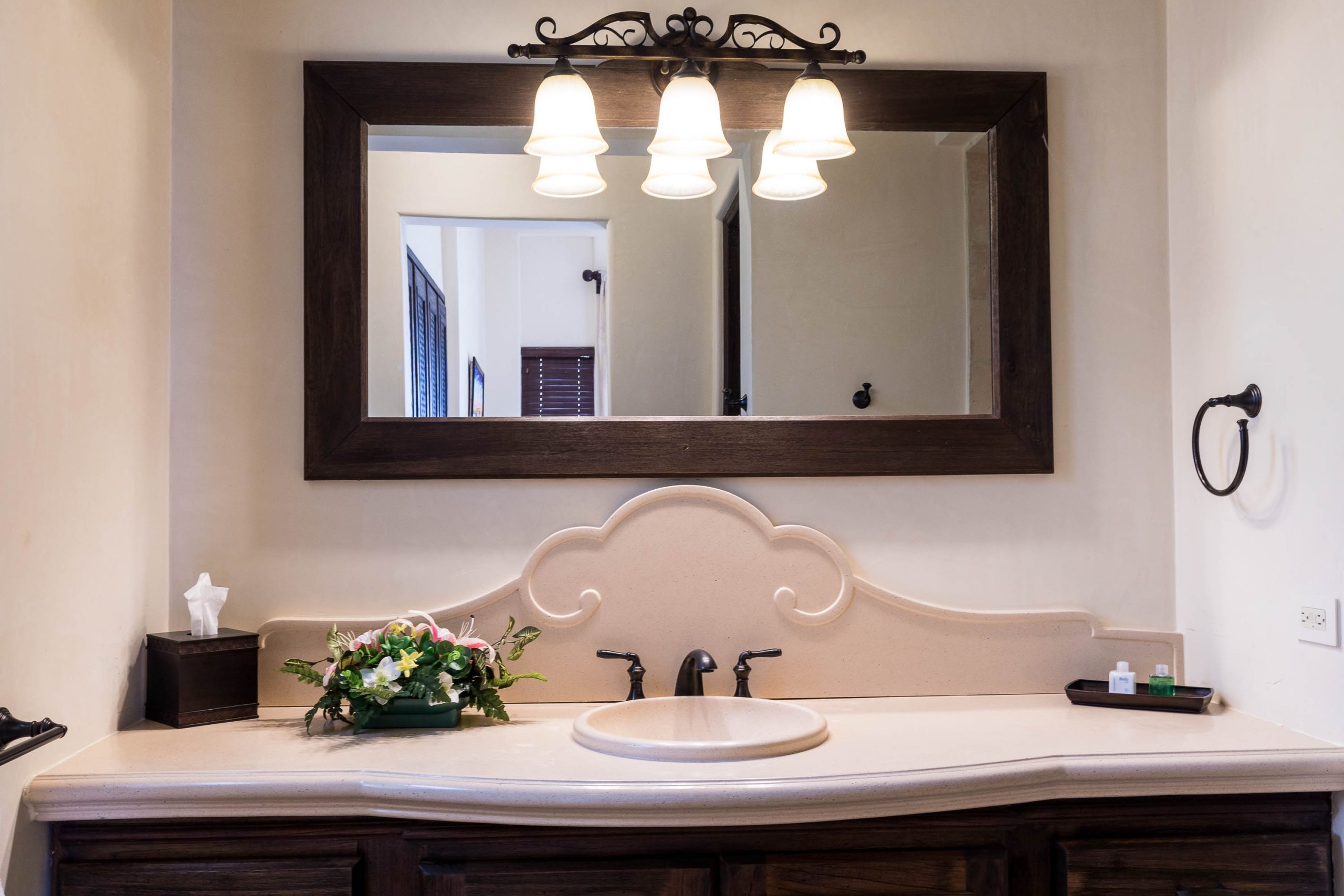 Con una construcción de aproximadamente 1.200 m², la propiedad cuenta con ocho elegantes suites y nueve baños, ofreciendo espacio suficiente para grupos grandes con total comodidad. Su diseño fusiona un estilo tropical contemporáneo con piezas artísticas cuidadosamente seleccionadas, creando una atmósfera sofisticada y acogedora.
