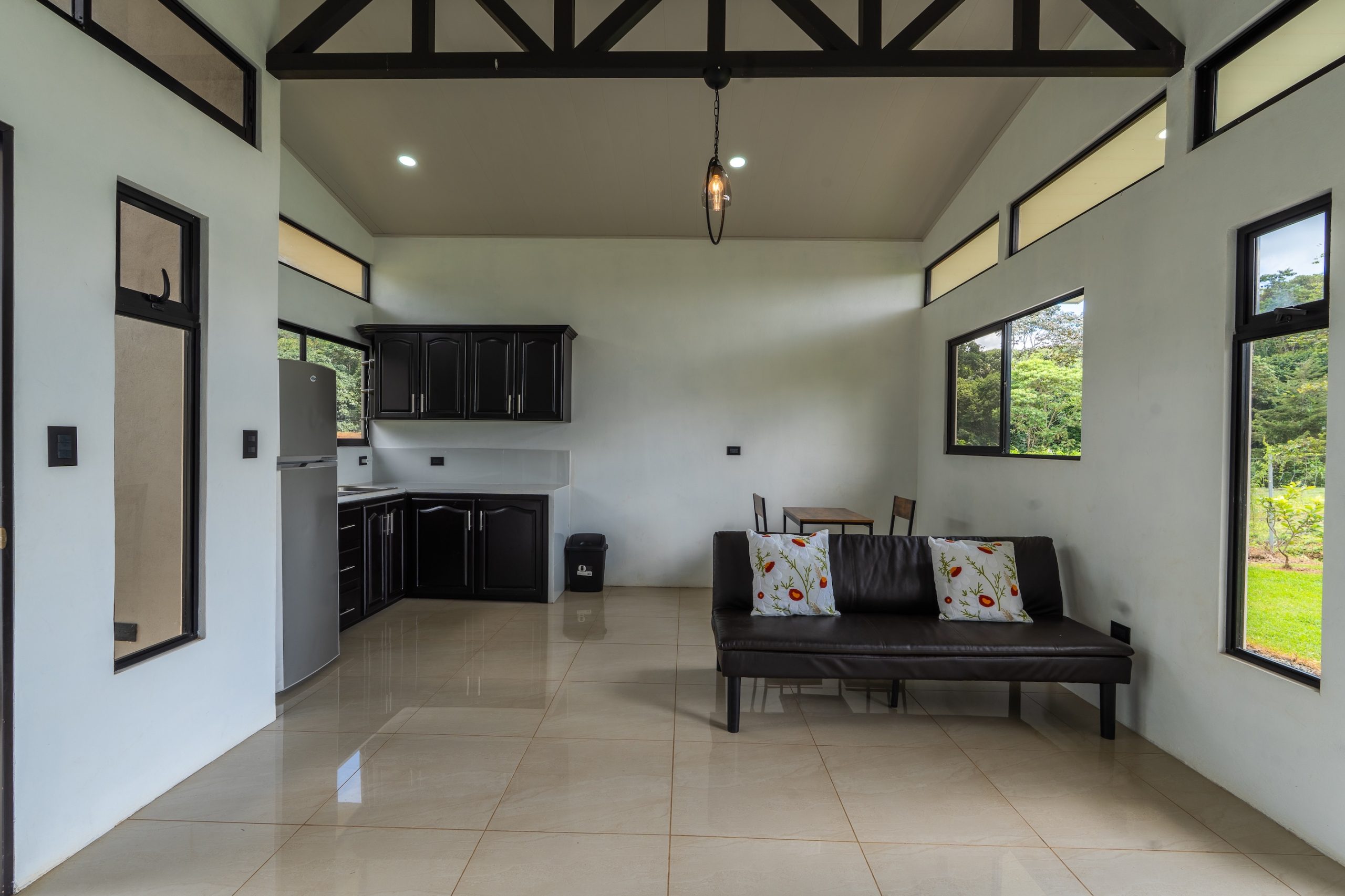 Sala, comedor y cocina integrados en un diseño de concepto abierto