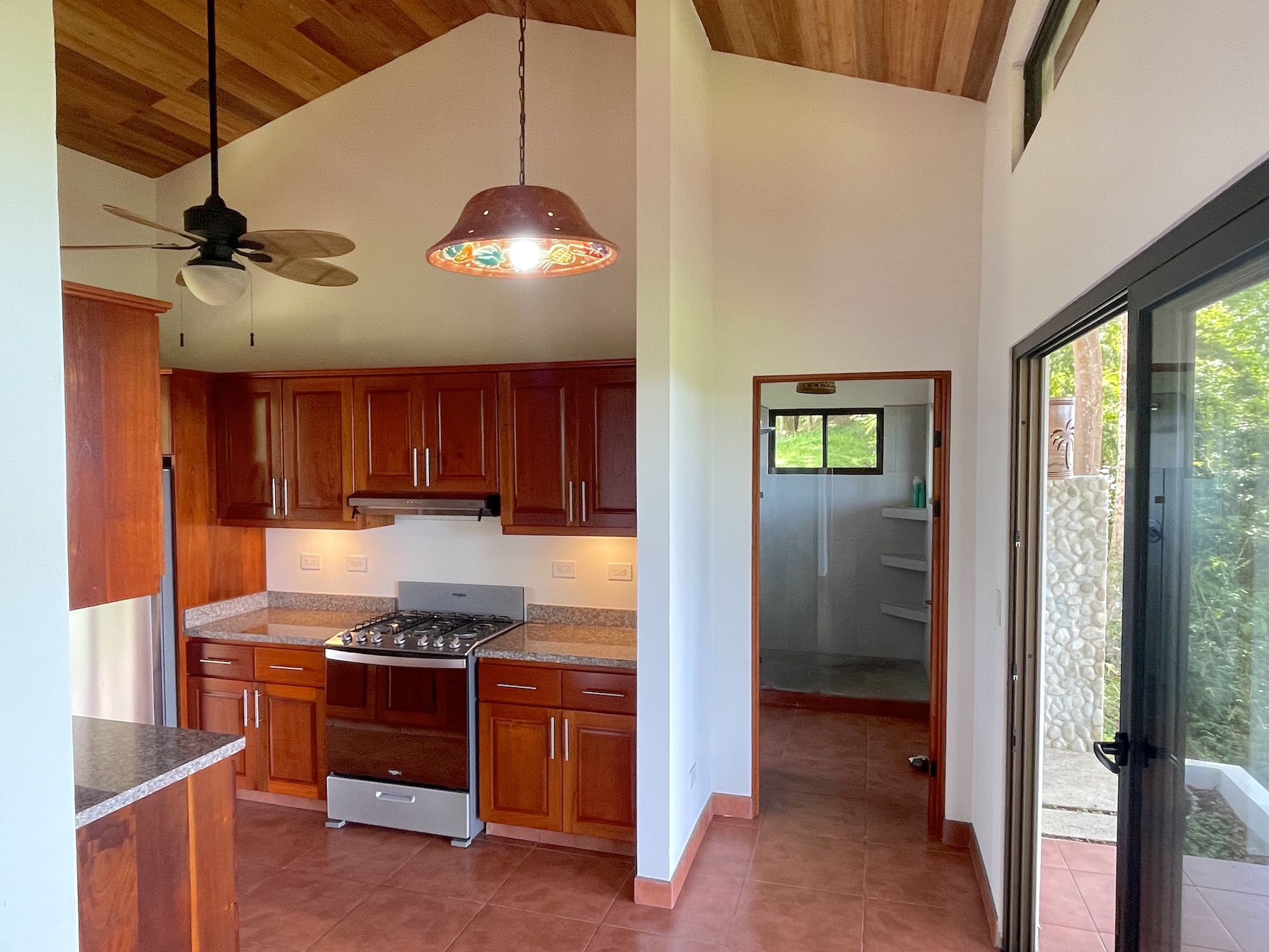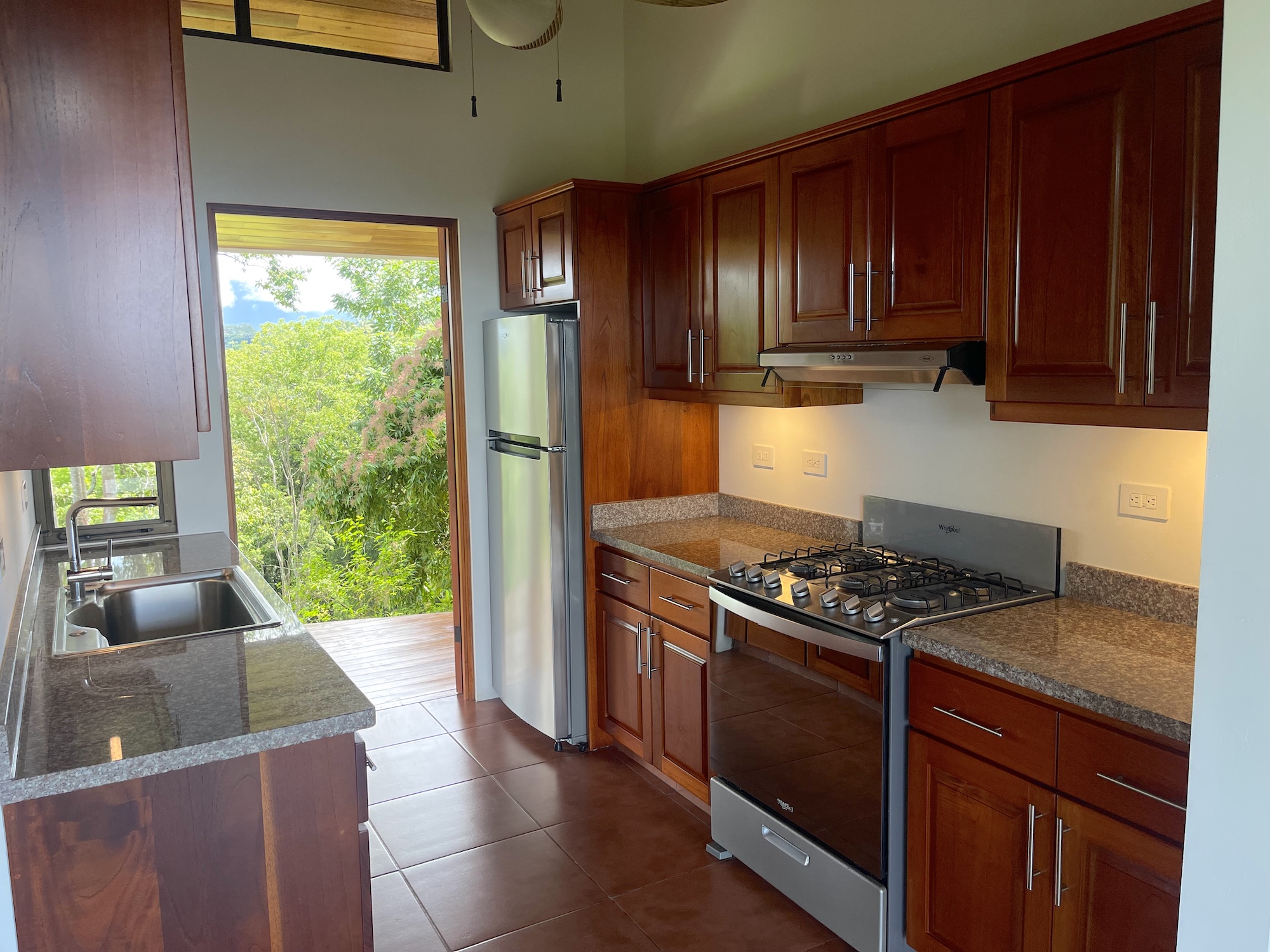 The property is well manicured with various usable areas and already has some fruit trees planted. Also, many Ron-Ron hardwood trees that are well-over 20 years old throughout the property. The main building site is access by a long meandering private driveway and is ample in size for a dream estate home. Above this site is a completed 1 bedroom and 1 bath ocean view home with granite counter tops, solids cedar wood cabinetry, and a walk-in closet. This will become the perfect future guest house and is a place to live while constructing your main house. The views of the Pacific Ocean are outstanding with direct sunsets part of the year. The other side of the property boasts incredible mountain views with the distant peak of Chirripo on clear mornings.