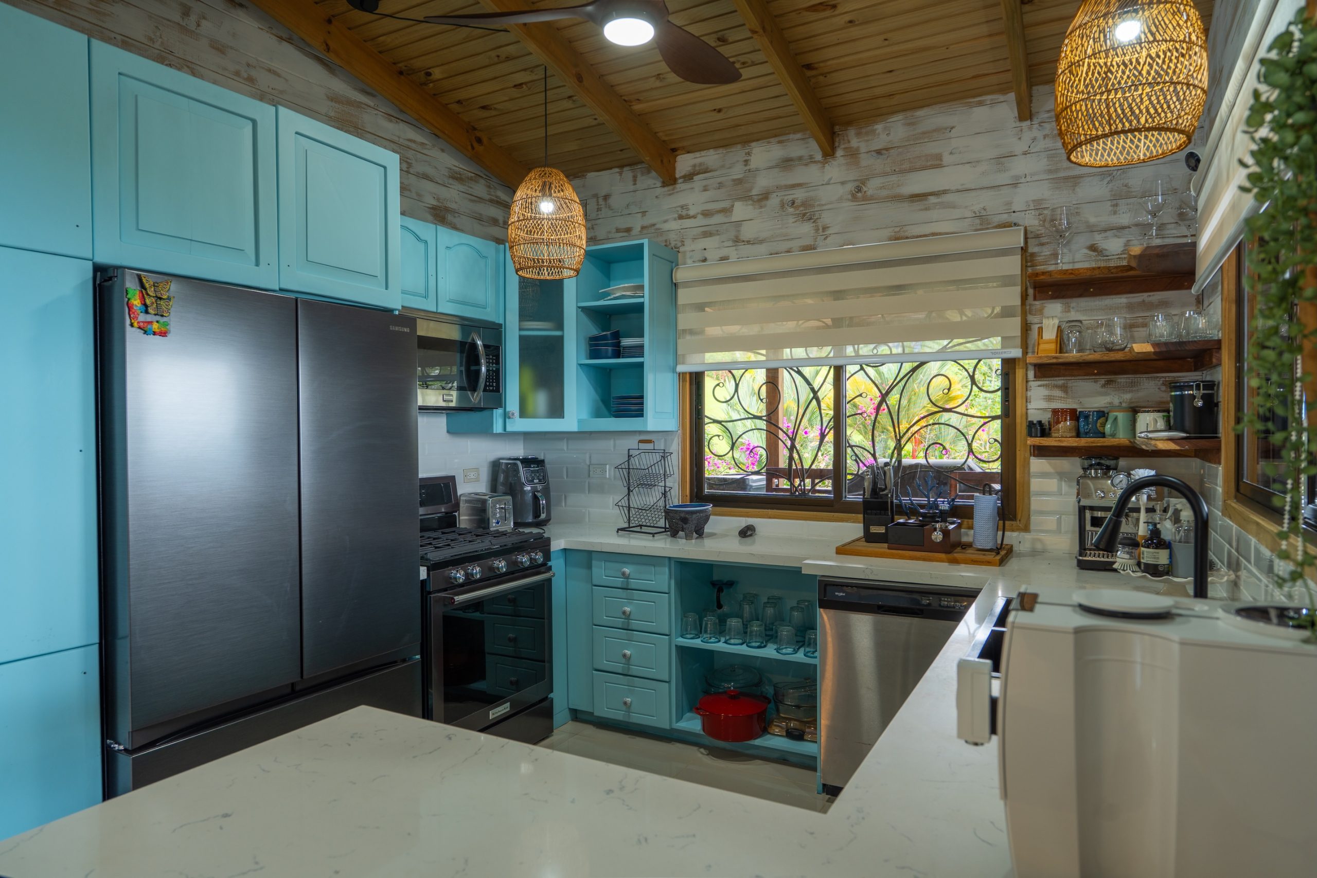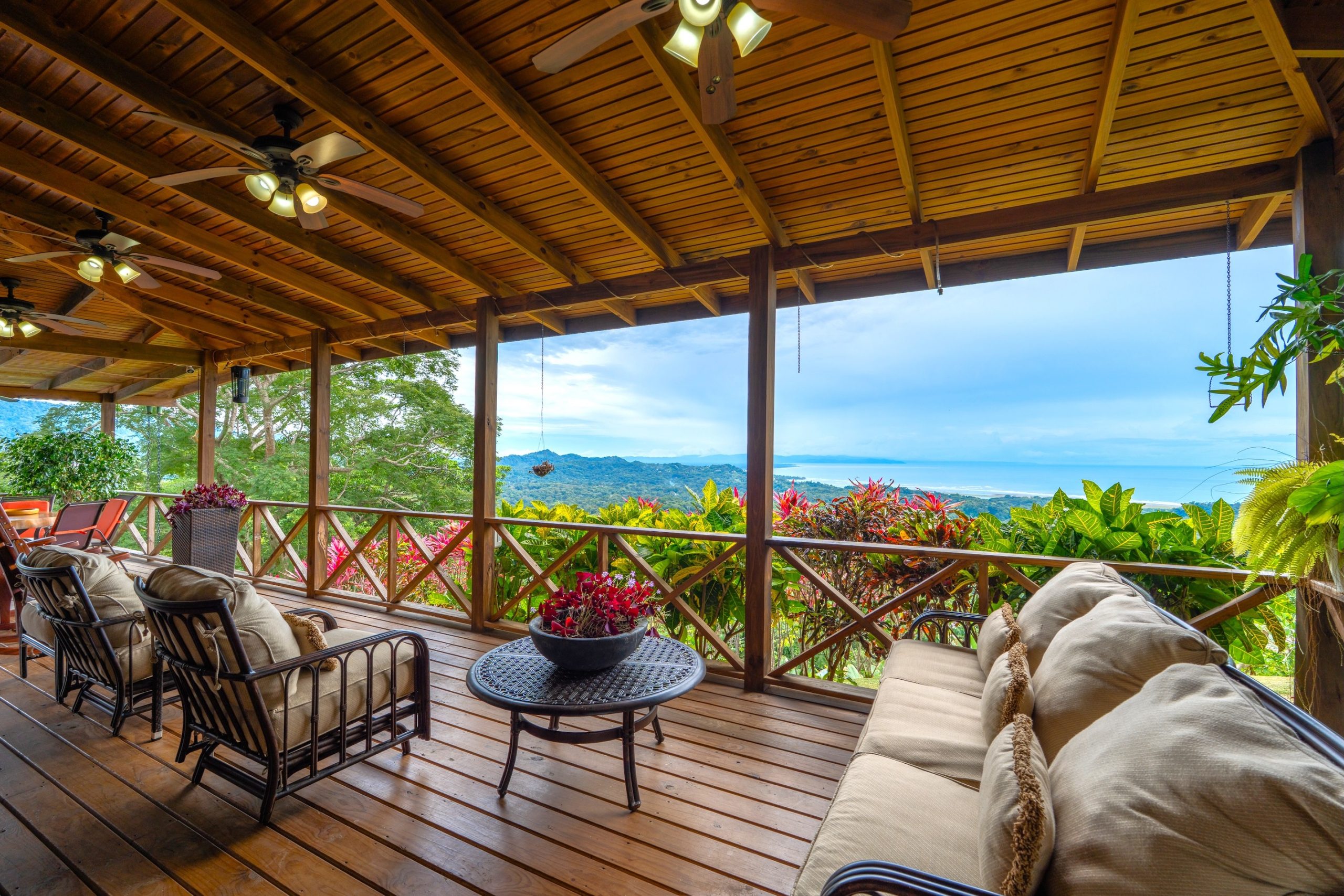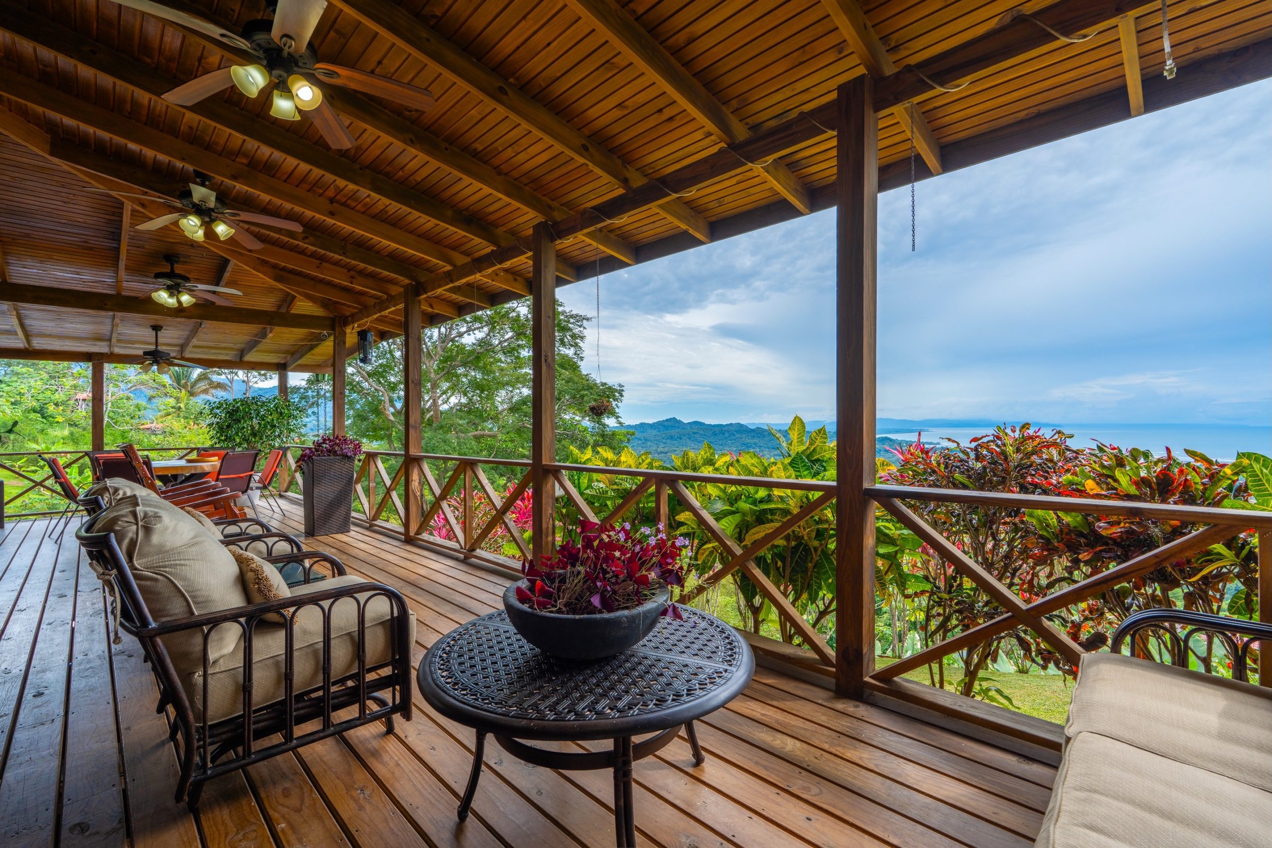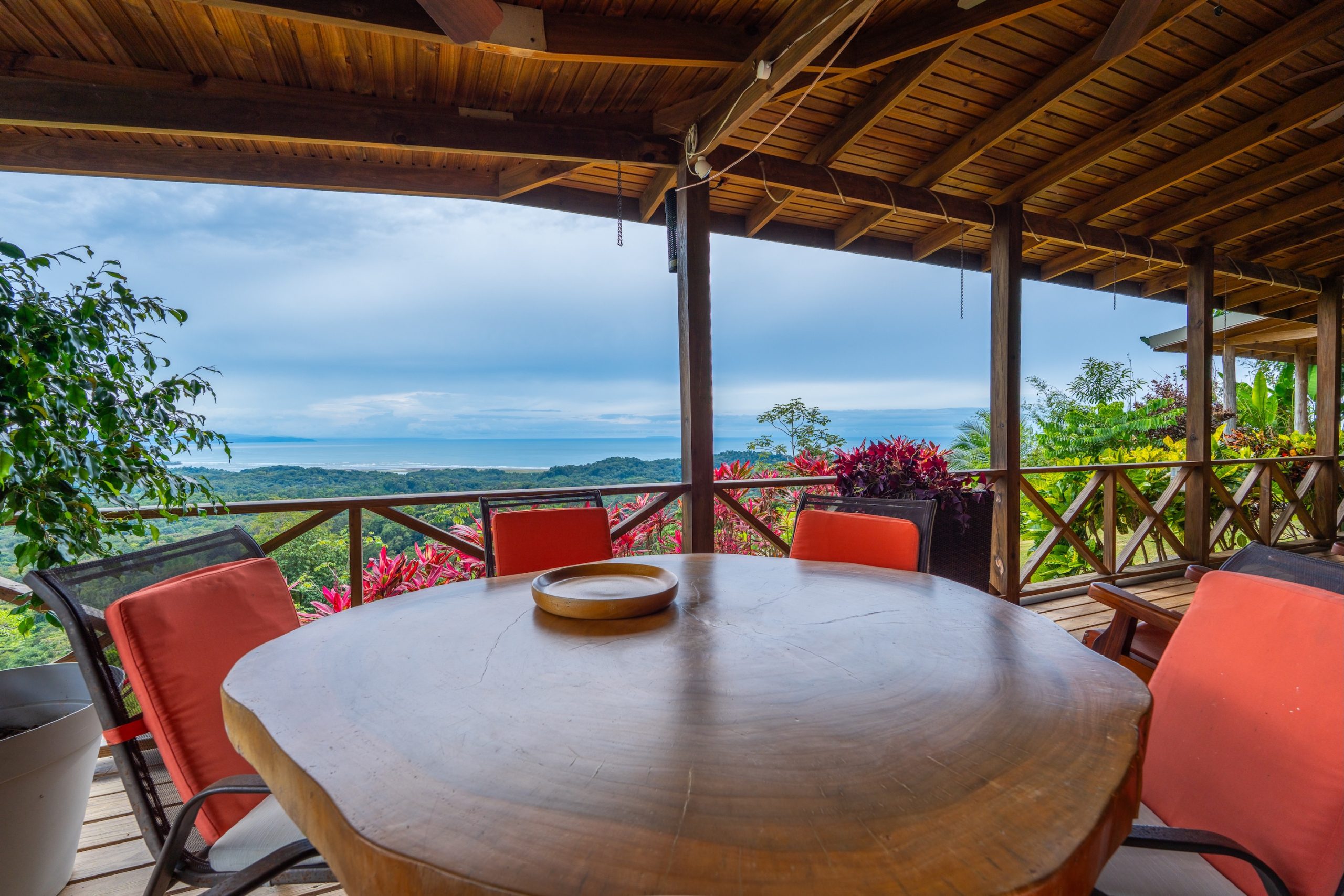 This house is situated in phase 5 of a gated community, only 8 minutes away from downtown Ojochal. Several acres provide excellent seclusion, offering a fantastic vista of the southern Pacific Ocean along with Cano Island. This 3 bedroom house was constructed with love and open hearts to welcome friends and family from all over the globe. Outdoor dining provides the opportunity to appreciate the surroundings and breathtaking mountain views.