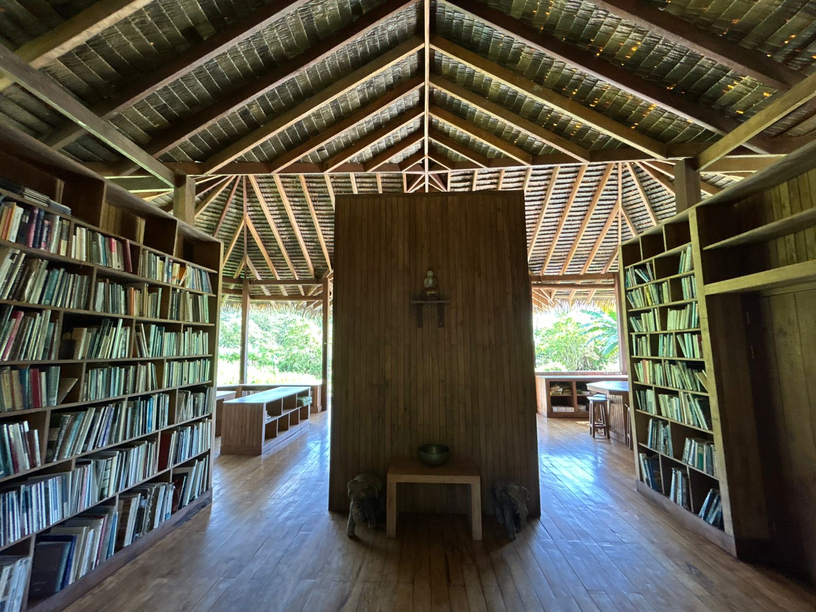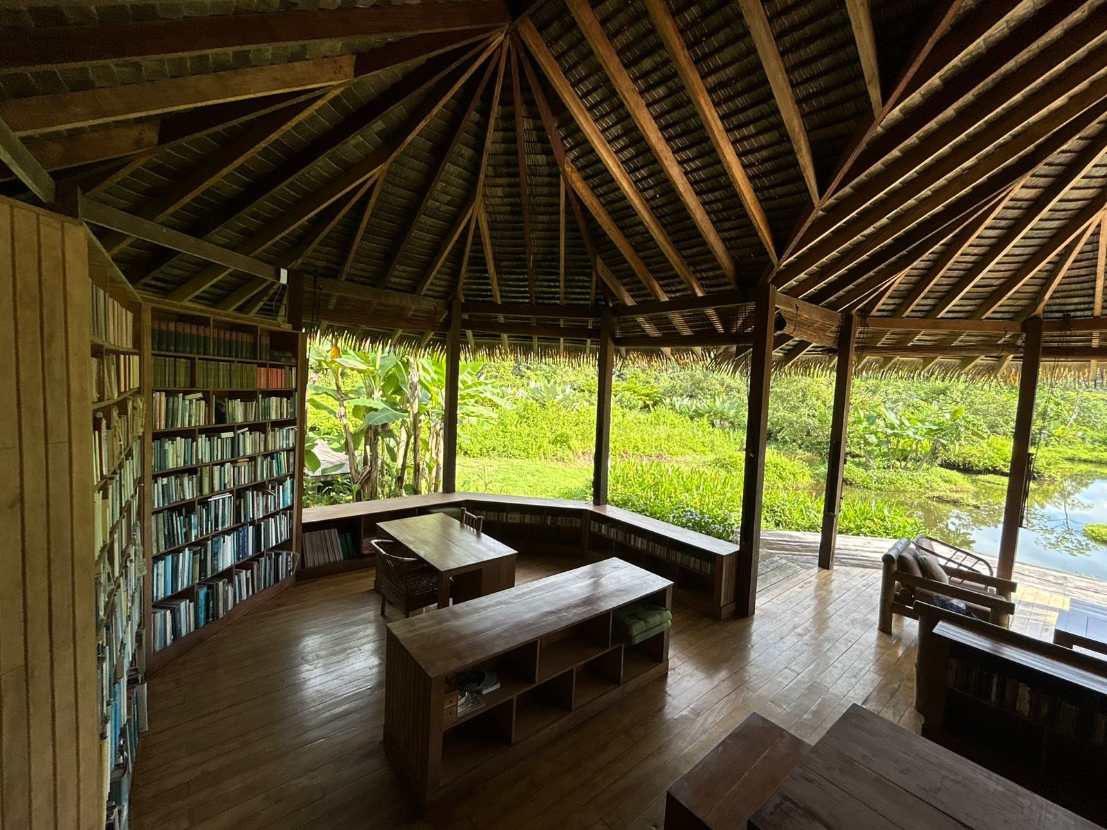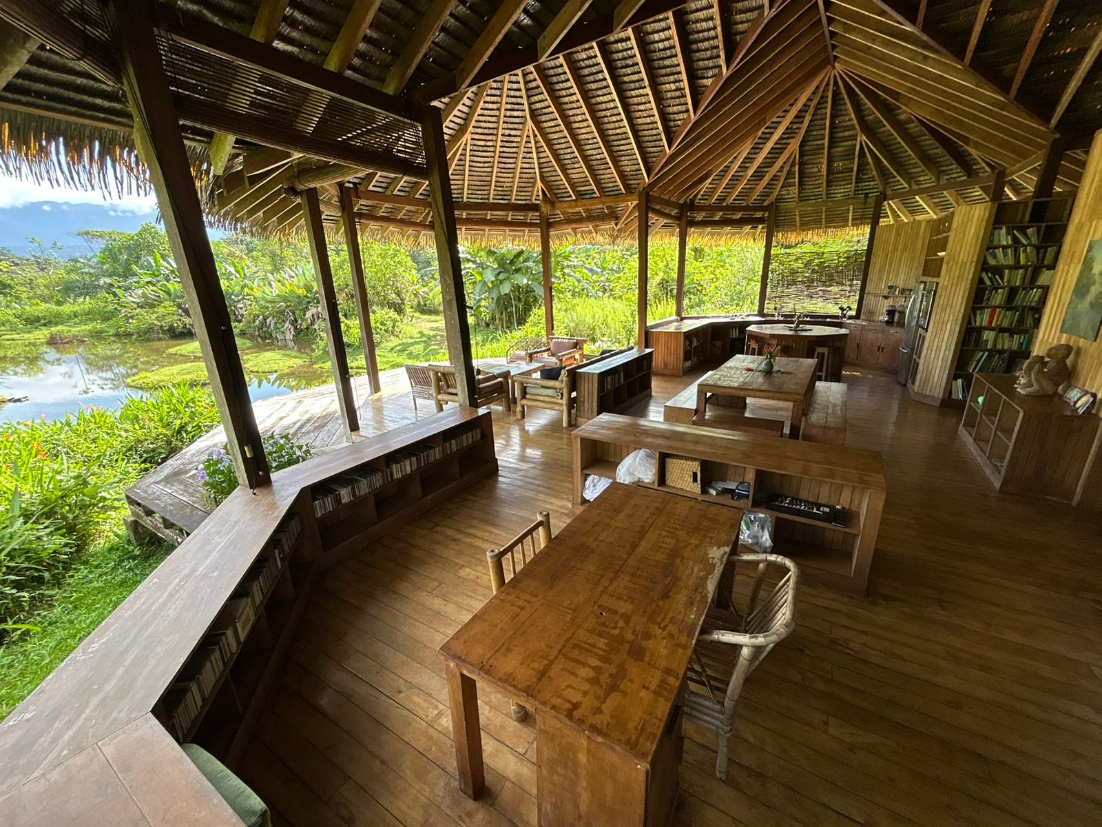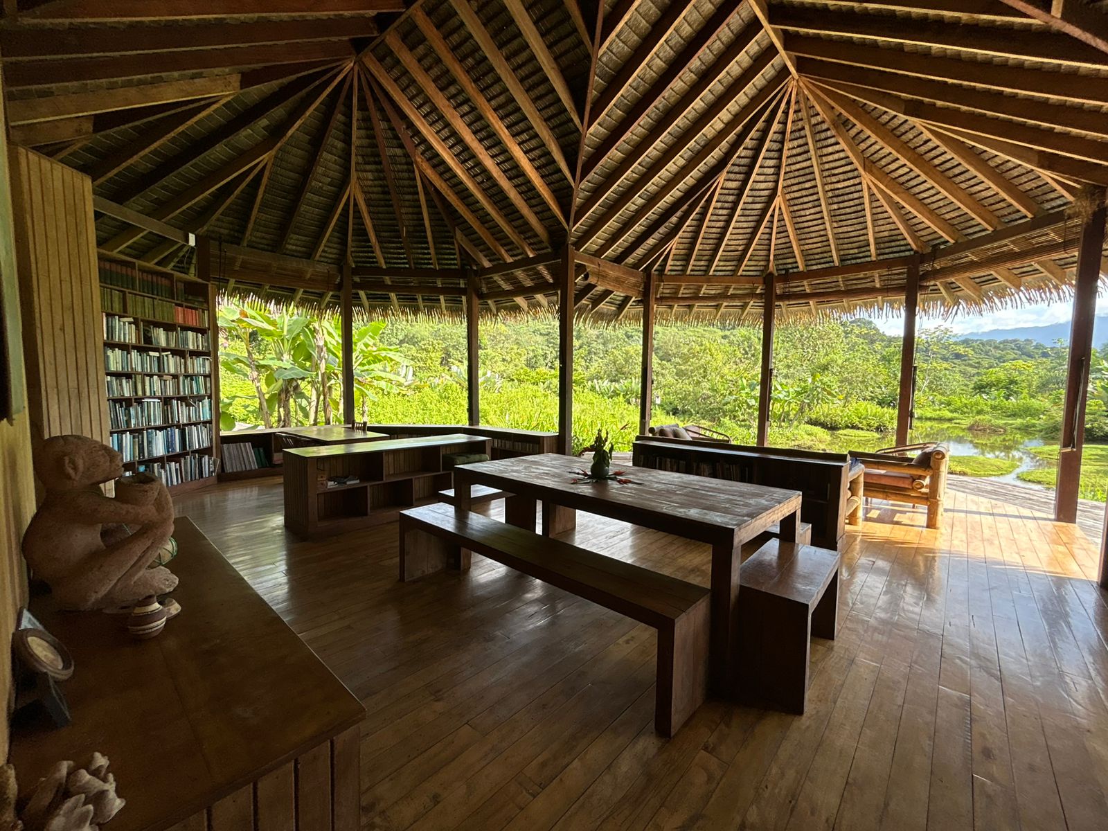 Casa Grande : A communal structure made up of four octagonal modules. It includes a living room facing a pond, a fully equipped kitchen, a central dining room, an office, and a library with thousands of volumes.