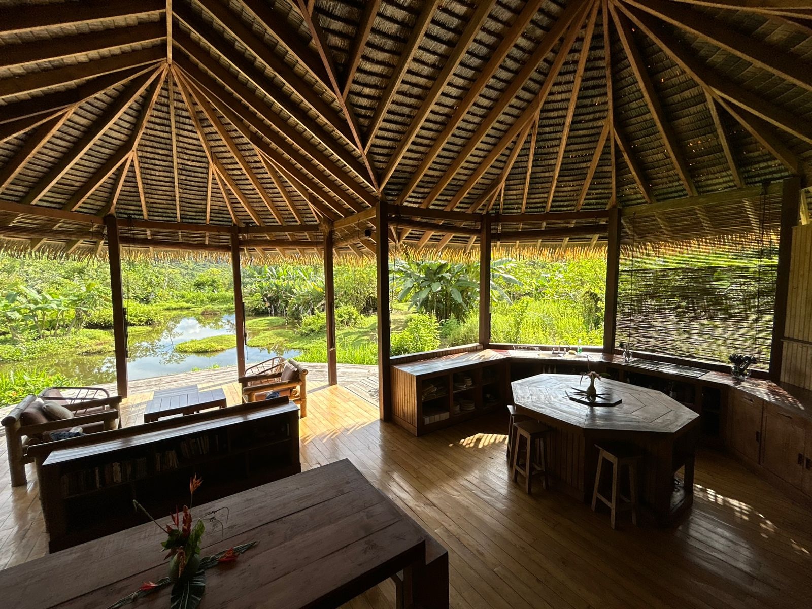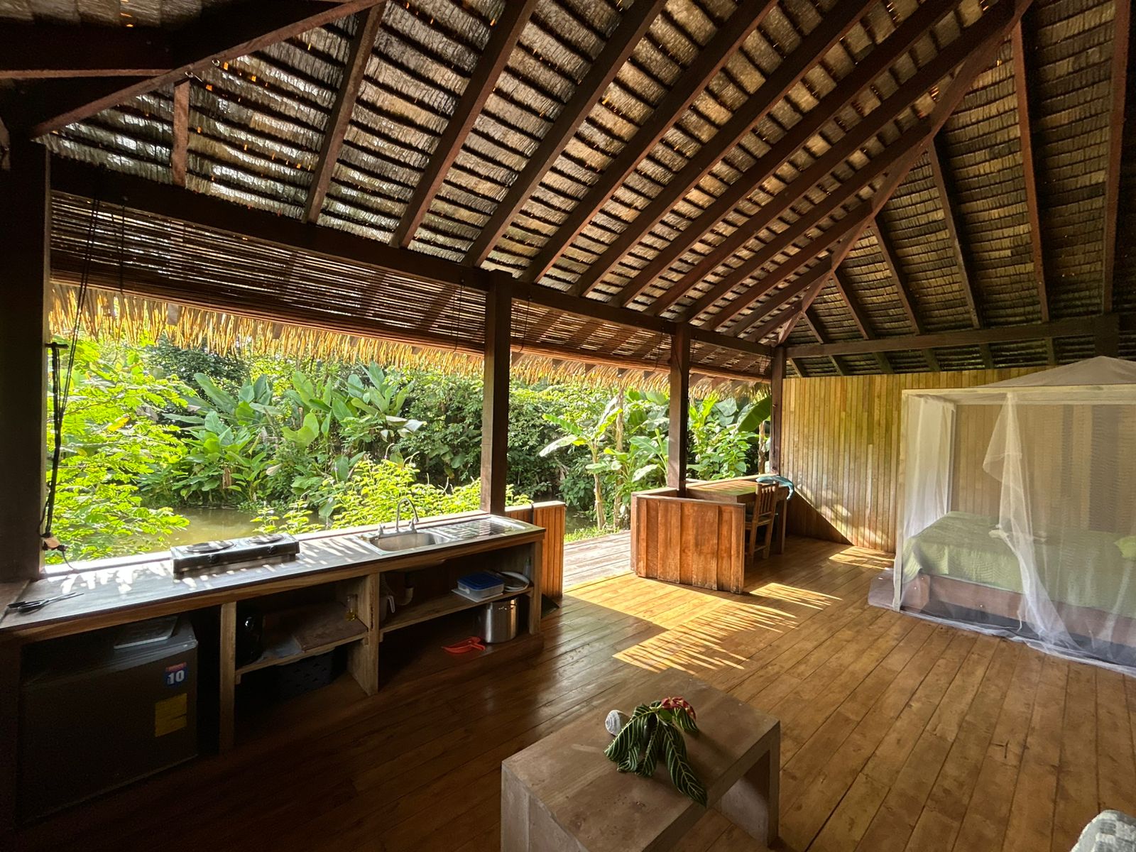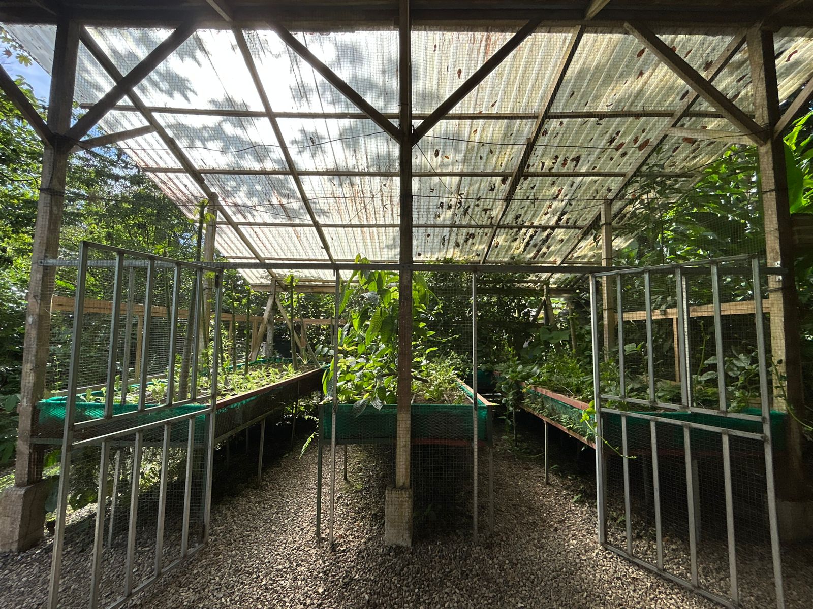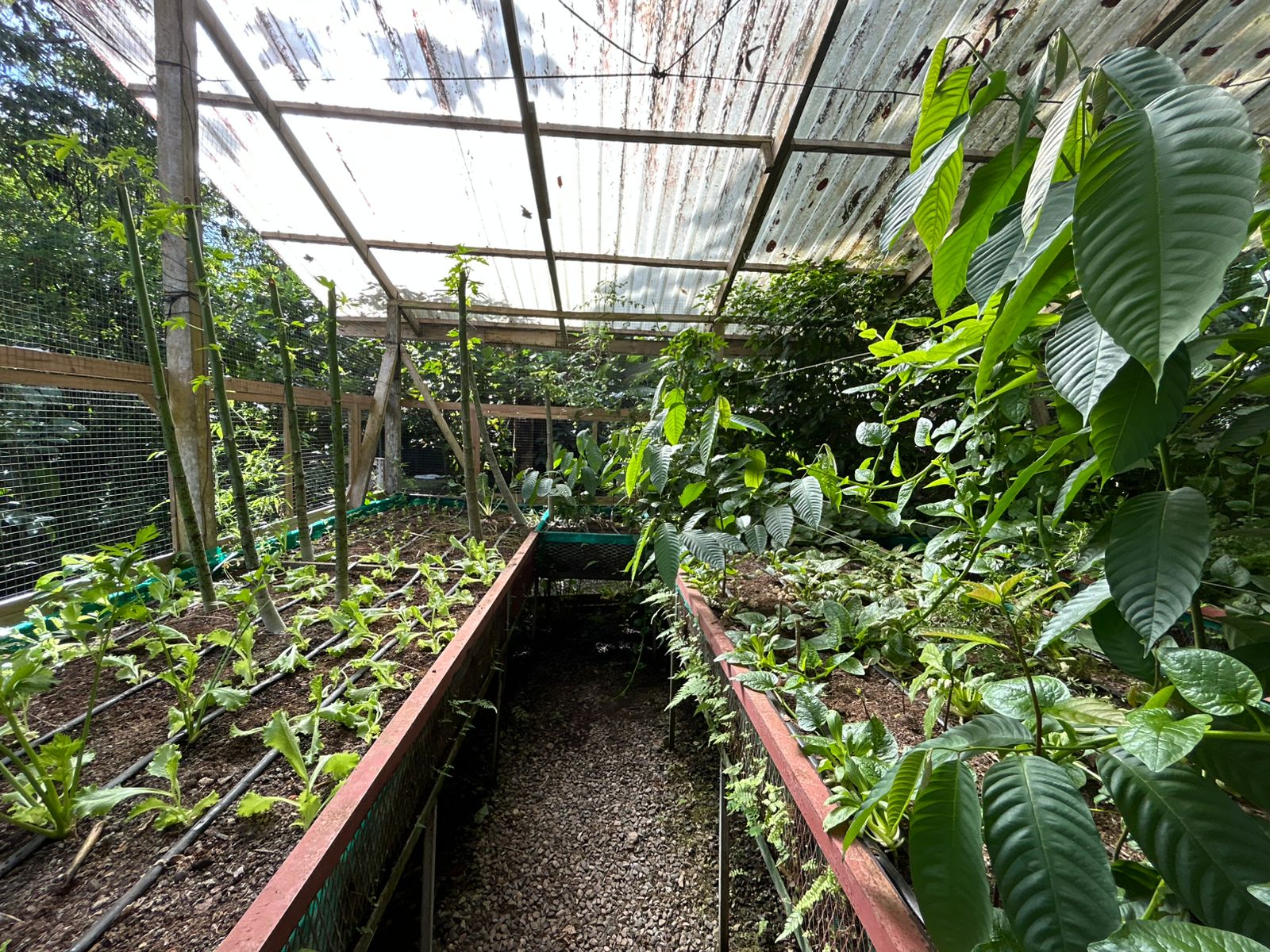 Huerto de verduras y hierbas: Cultivos variados como batatas, okra, katuk, sacha inchi, cúrcuma, jengibre y más. Completado con invernadero, compostaje, gallinero y horno de biocarbón, integrando prácticas de permacultura y sostenibilidad.