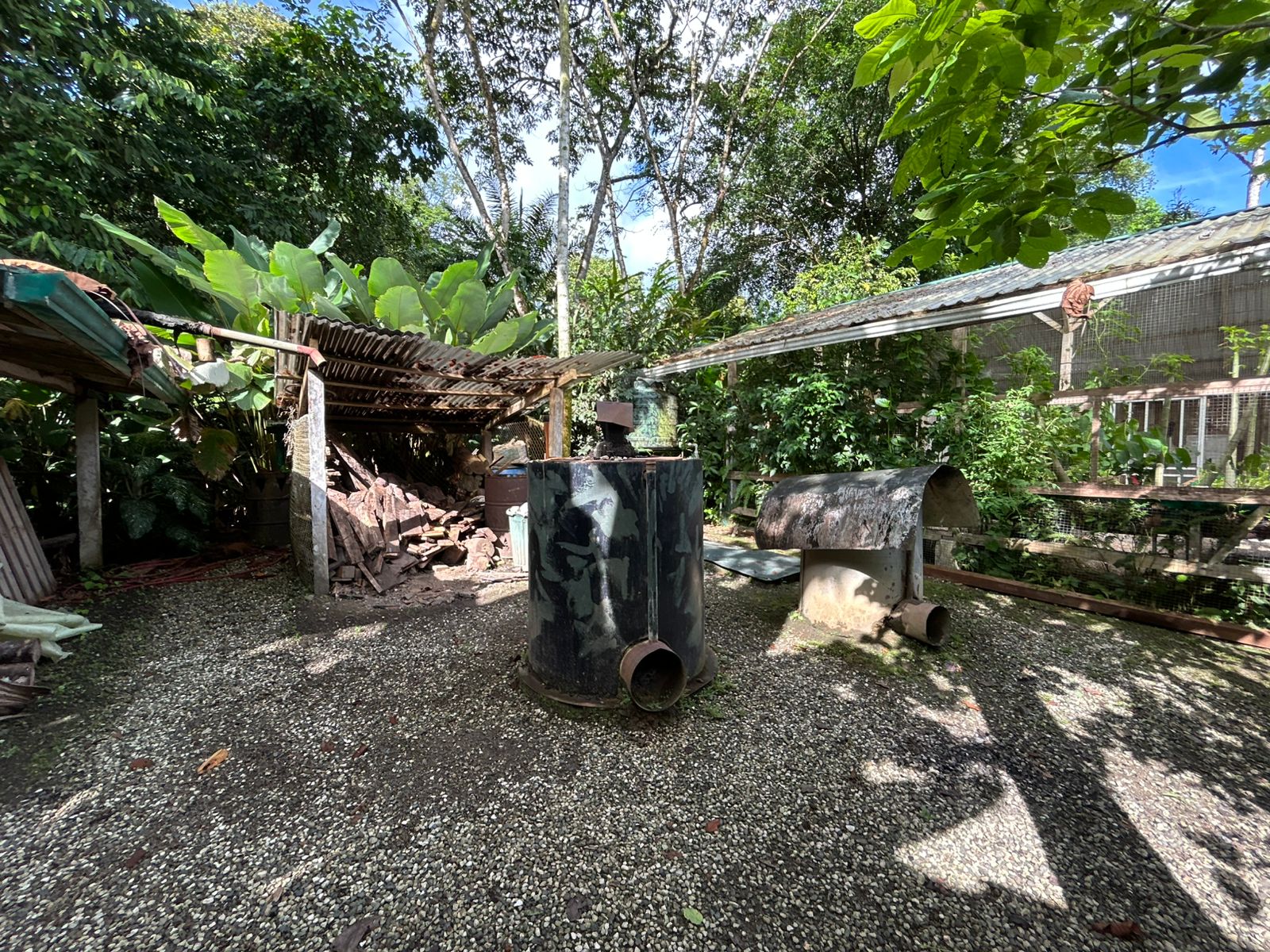 Vegetable and Herb Garden : Growing a variety of crops such as sweet potatoes, okra, katuk, sacha inchi, turmeric, ginger, and more. Complete with a greenhouse, composting area, chicken coop, and biochar oven, integrating permaculture and sustainability practices.