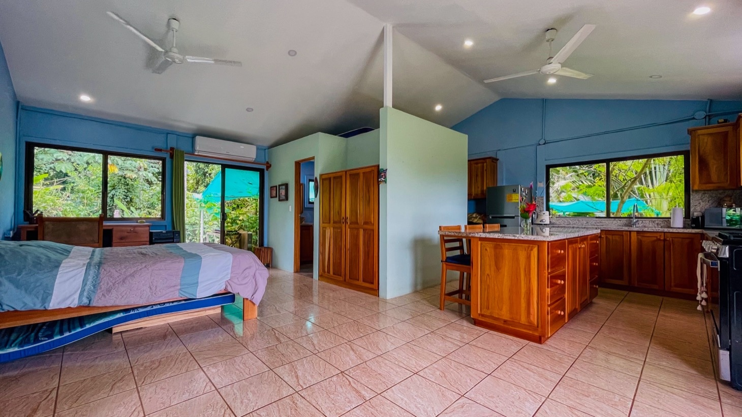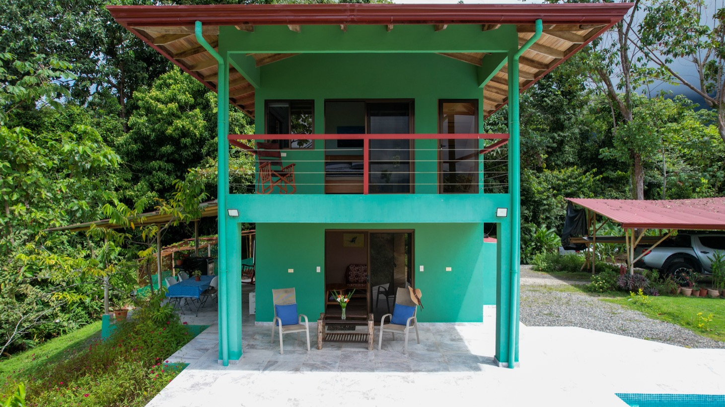 Located on a quiet hillside, surrounded by tropical rainforest and mature fruit trees , this property allows you to enjoy a privileged natural setting with easy and convenient access , something rare in elevated areas.
