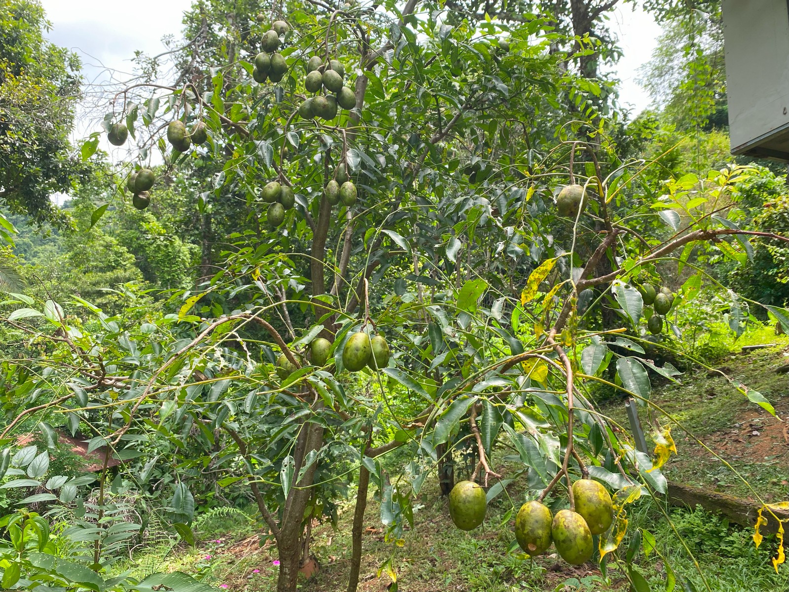Sweet orange tree, Sweet and sour mandarin, Lansun, Magustin, Abiu, Biribah, Carao, Yaca ,Pitanga, Costa Rican guava, breadfruit tree, Black sapote, Moringa, Sour lemon, Coconut palm (pipa), Avocados