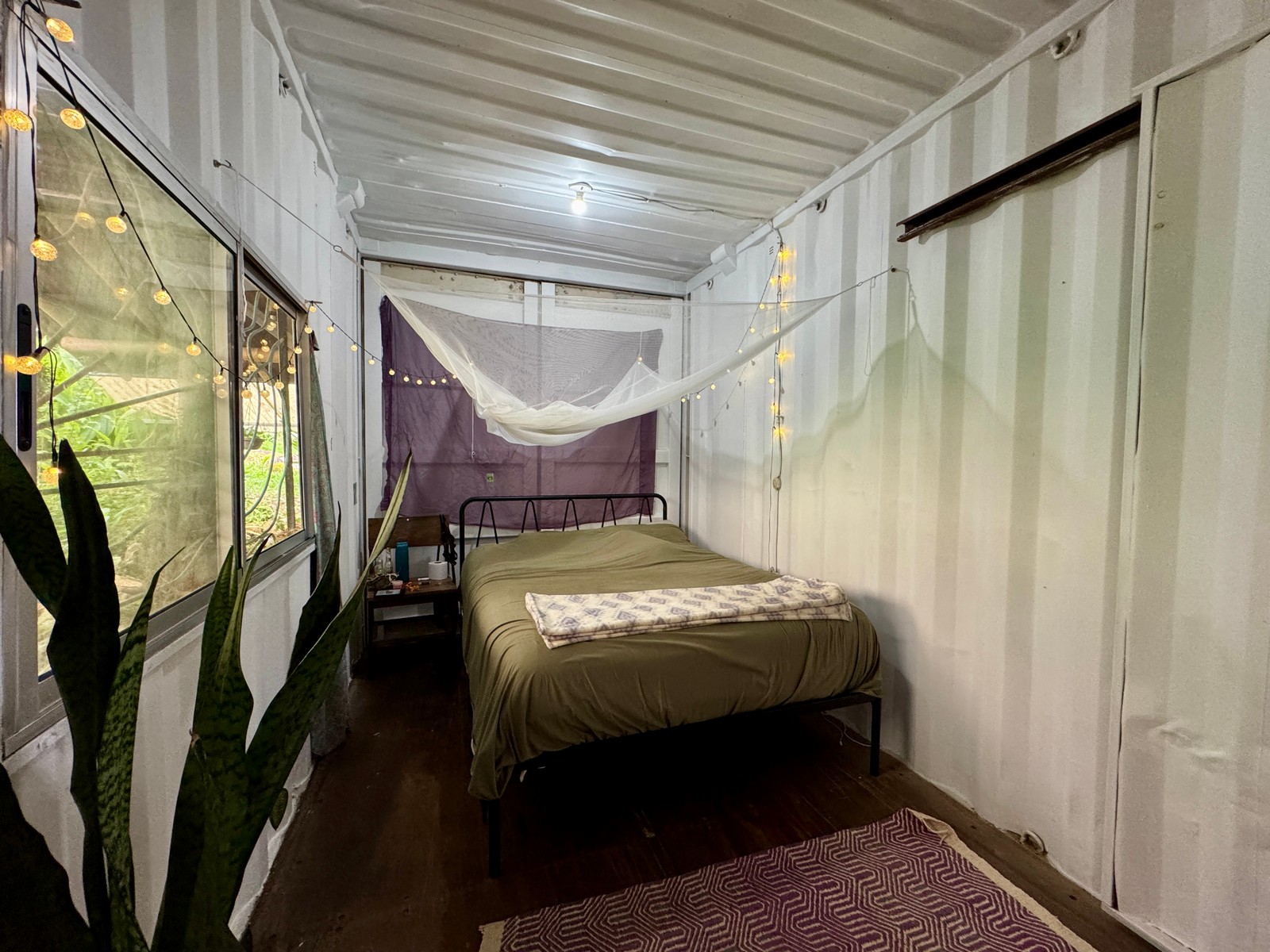 La residencia principal ha sido inteligentemente construida a partir de un contenedor marítimo reformado, con una estructura sólida que ya incluye los cimientos necesarios para una futura segunda planta. En su estado actual, cuenta con: