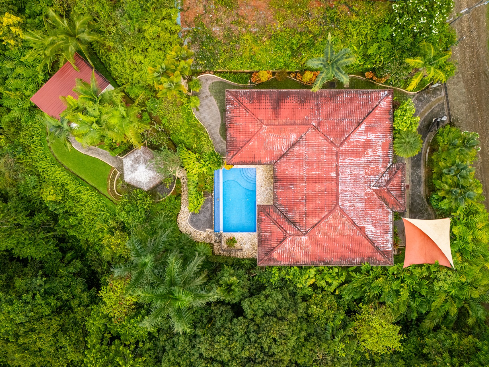 This property sits on just under an acre that allows those ocean and mountian views to never be obstructed. Another full covered tiki hut seating area below the home has space for those that like to slip away and read a book or simply to have your friends and family take in other wild life and views. Shortly down the path a new office awaits with a large owners lock up so should one need to work the space has been added. Need extra sleeping space? This new building is easily transformed to suite.