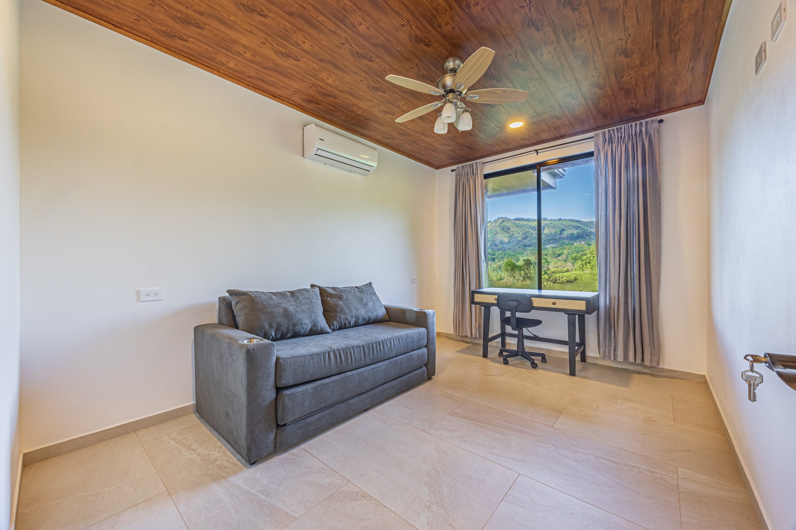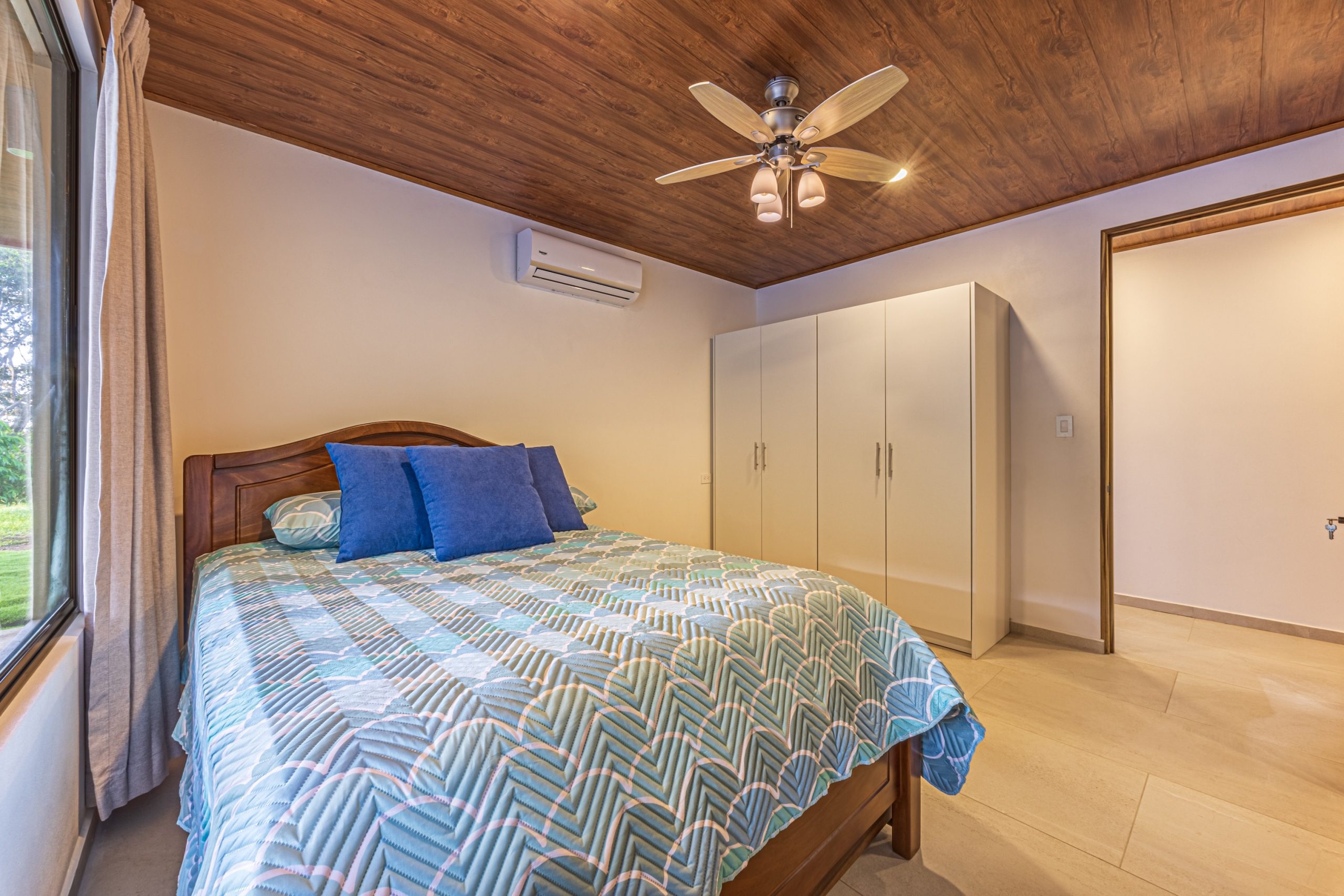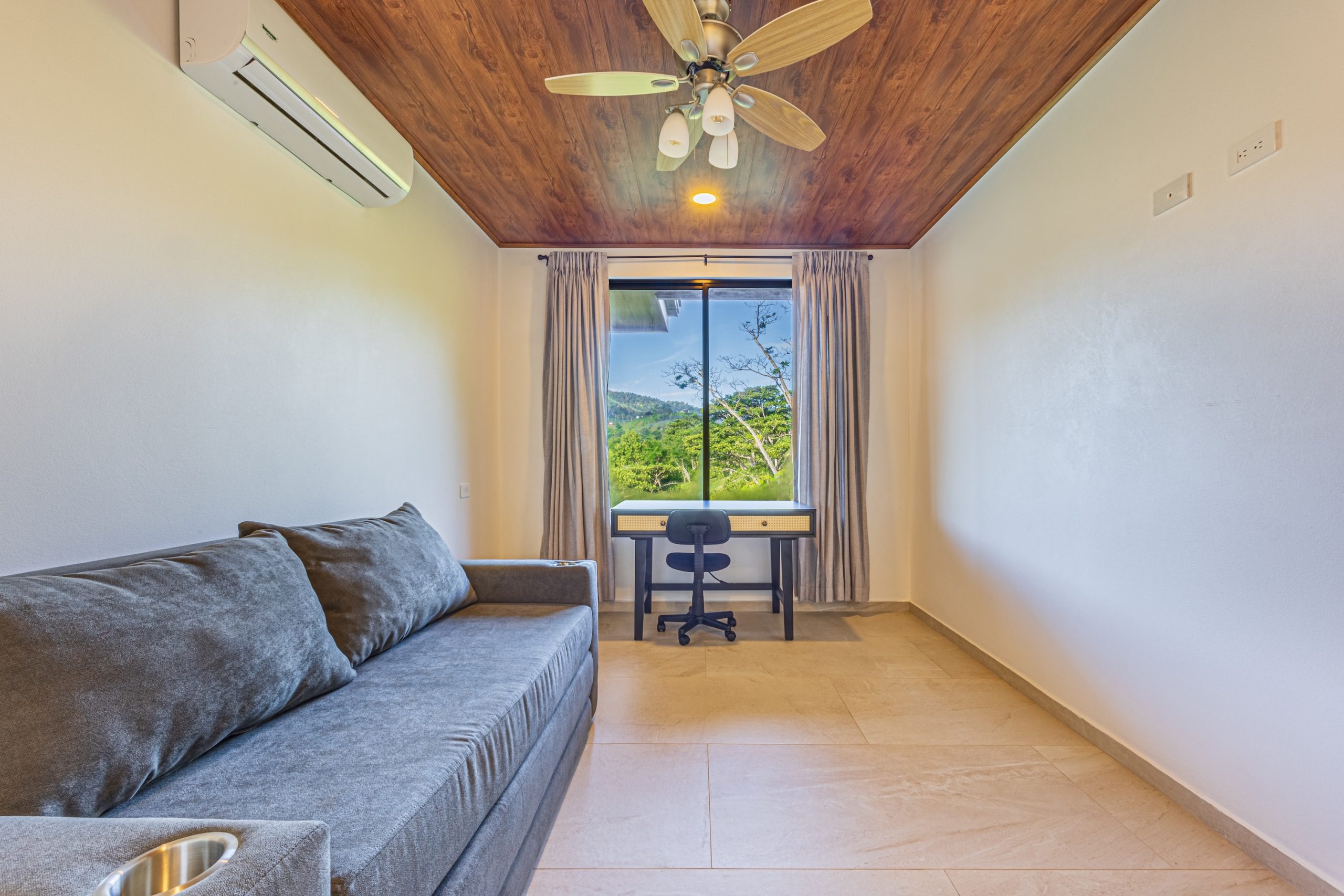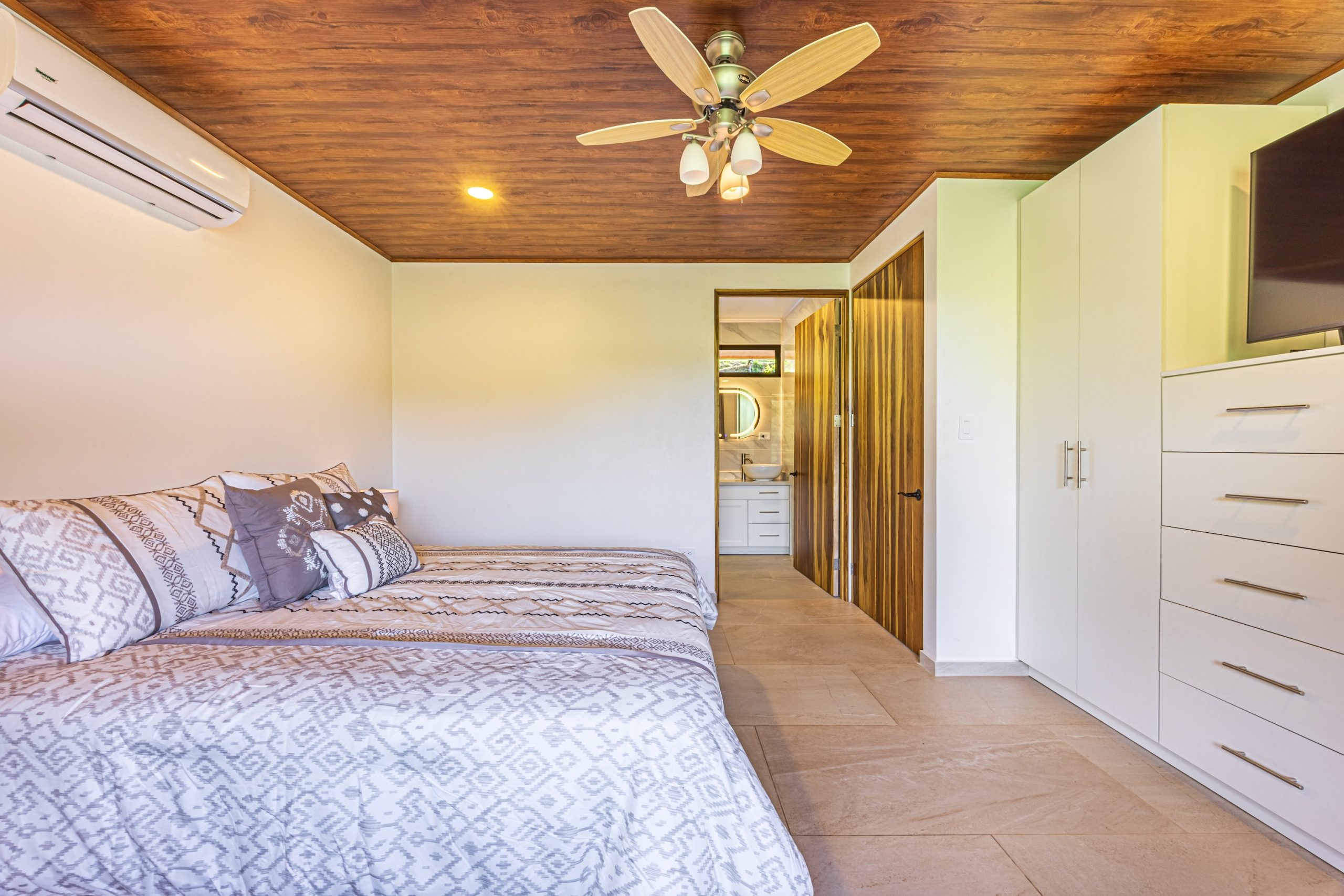 La vivienda cuenta con 3 habitaciones y 2 baños completos, todos diseñados con acabados de calidad. Cada dormitorio incluye aire acondicionado, al igual que la sala, garantizando una temperatura agradable durante todo el año.