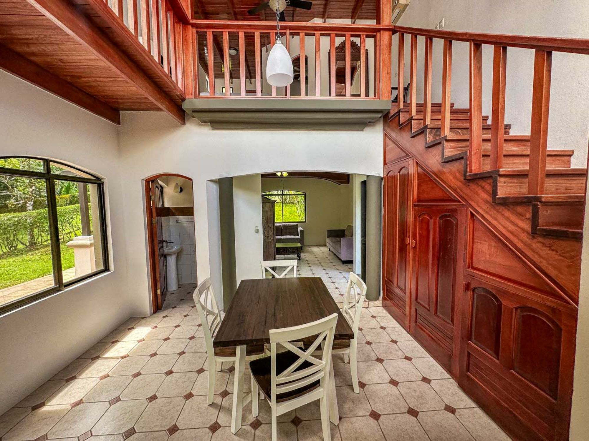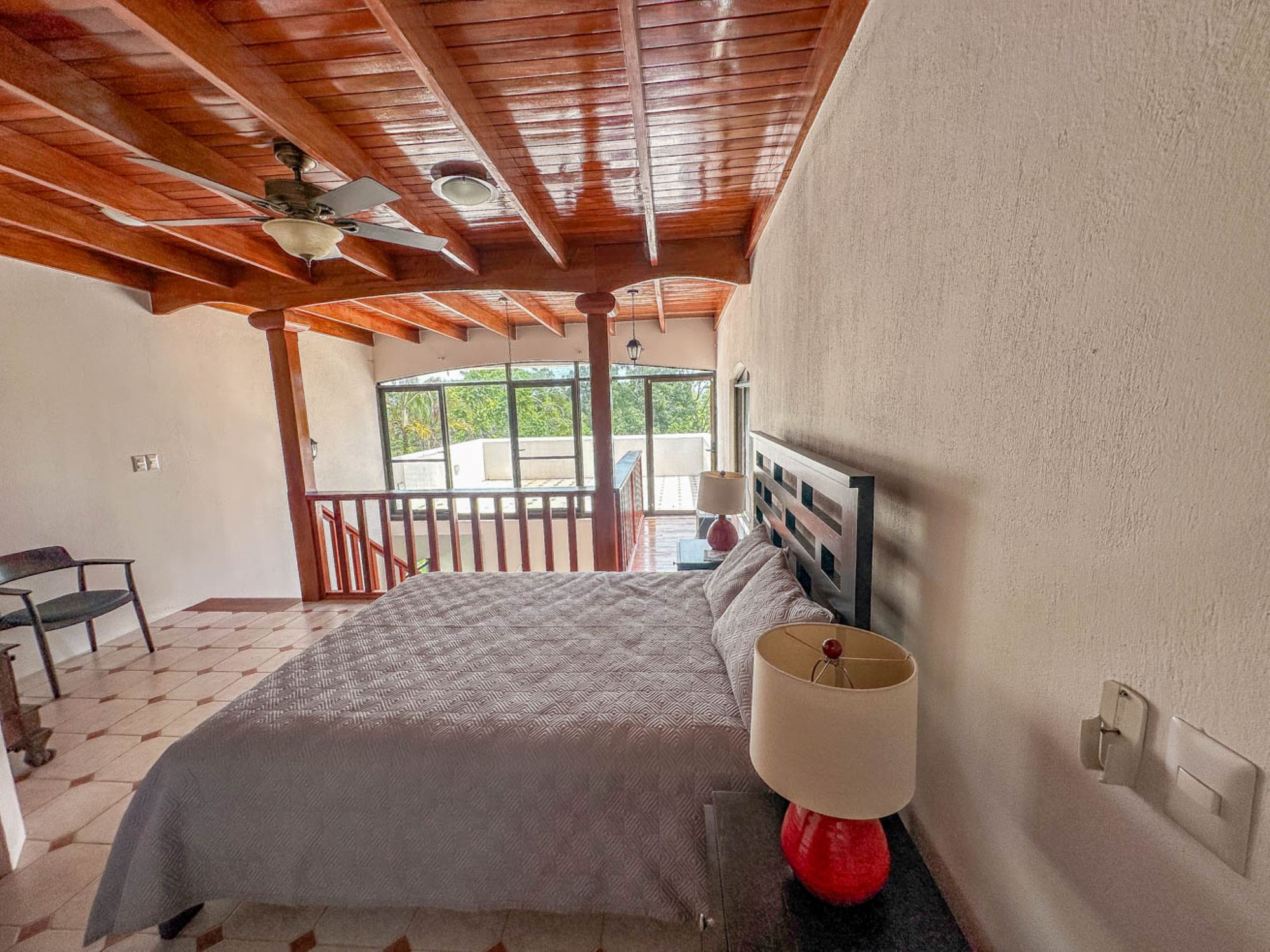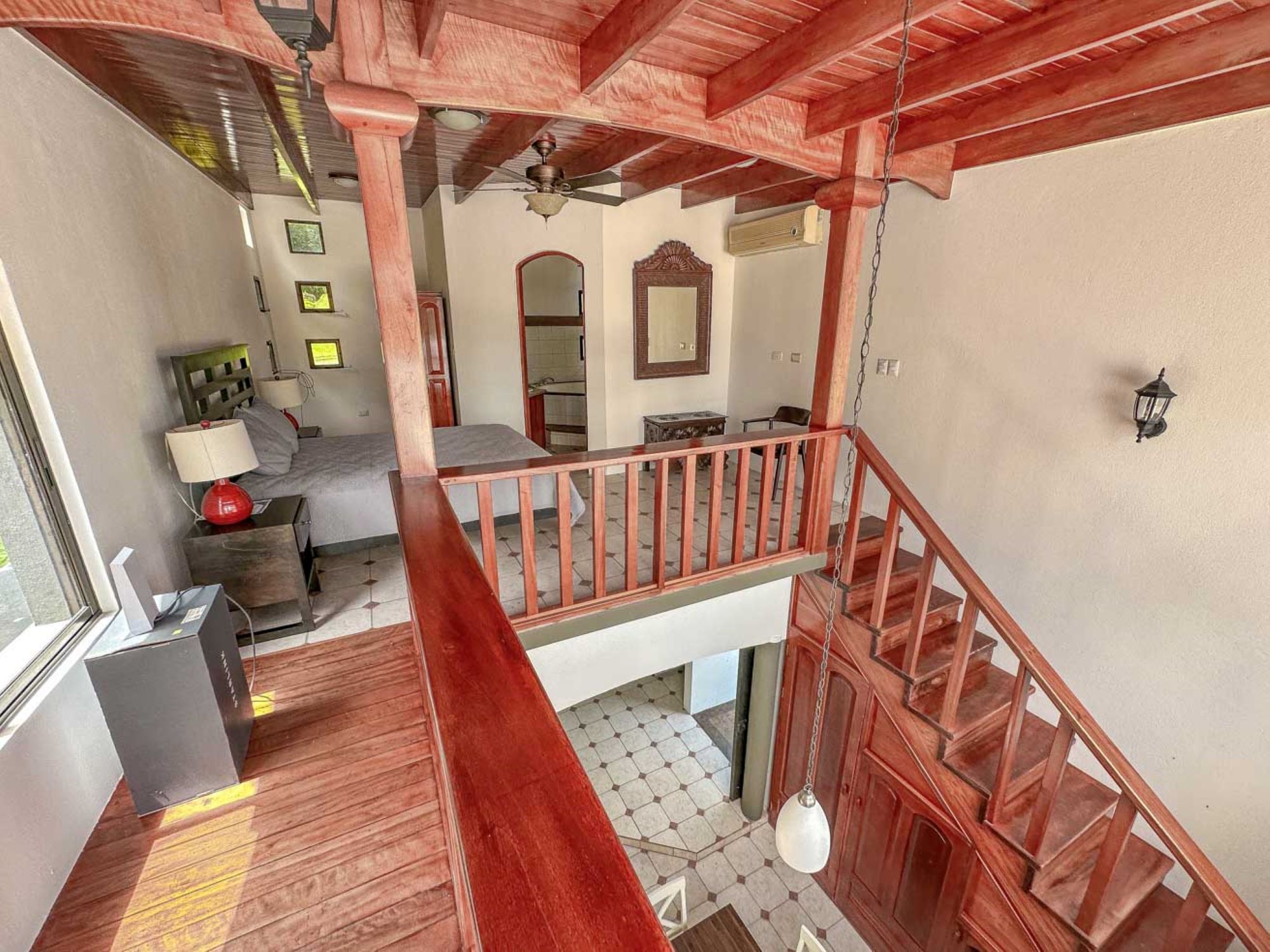 Upstairs is the loft bedroom, a cozy, open space with a private bathroom, shower, and jacuzzi, which connects to a spectacular sun-filled terrace. This outdoor space is perfect for starting the day with a yoga session, enjoying a morning coffee, relaxing with a midday cocktail, or toasting with wine and cheese at sunset. Even a barbecue would be the perfect complement to this tropical gem!
