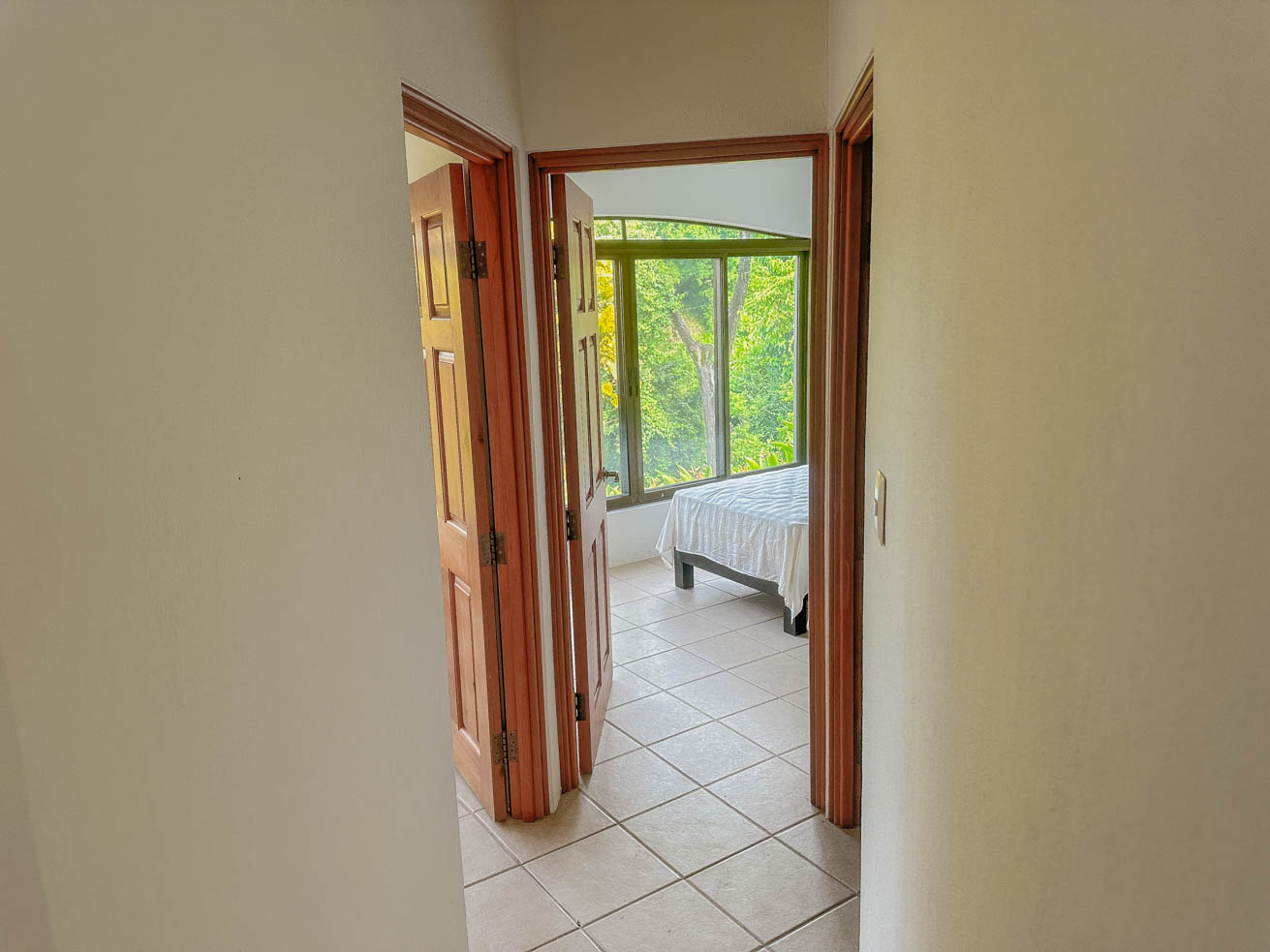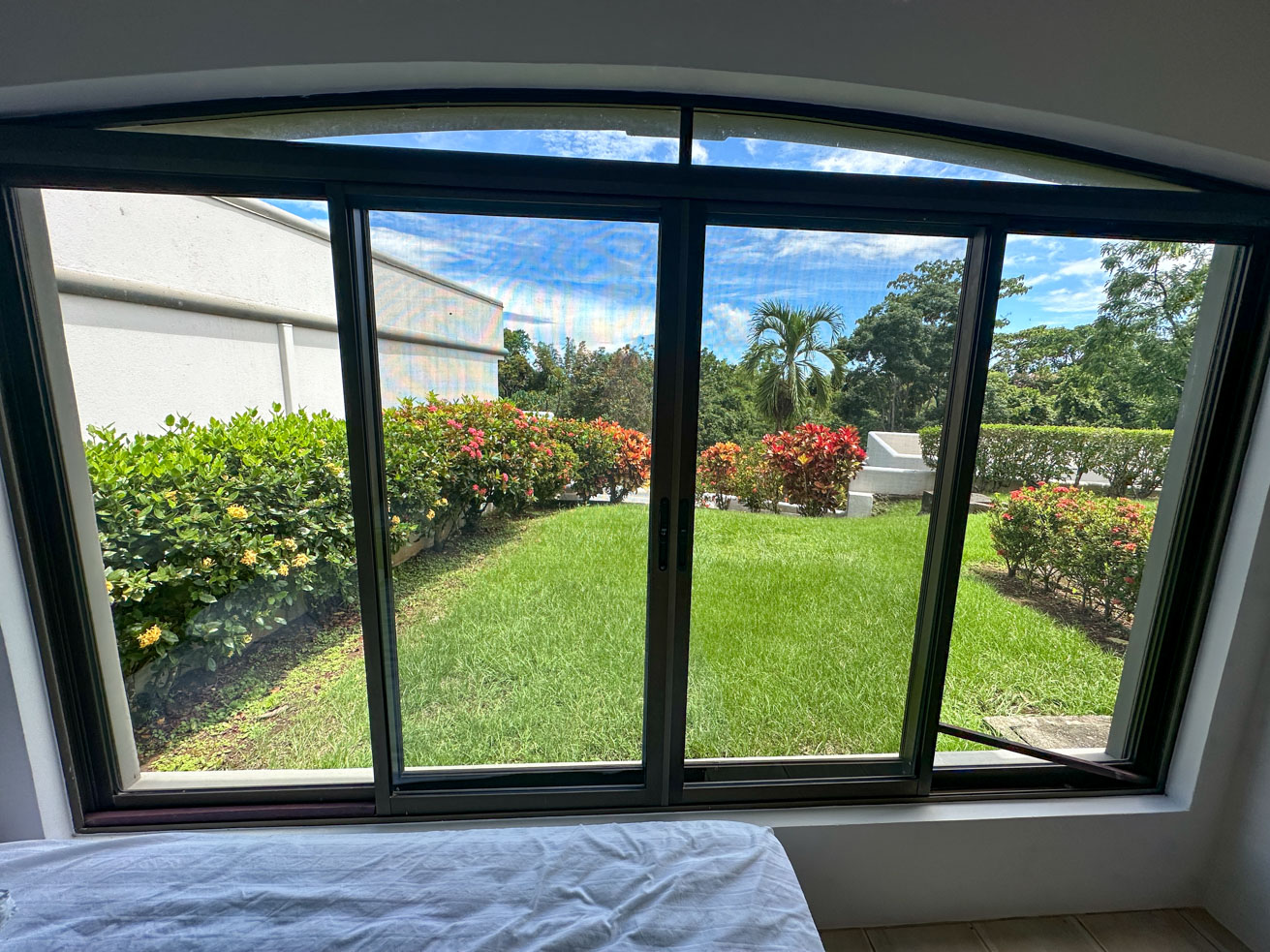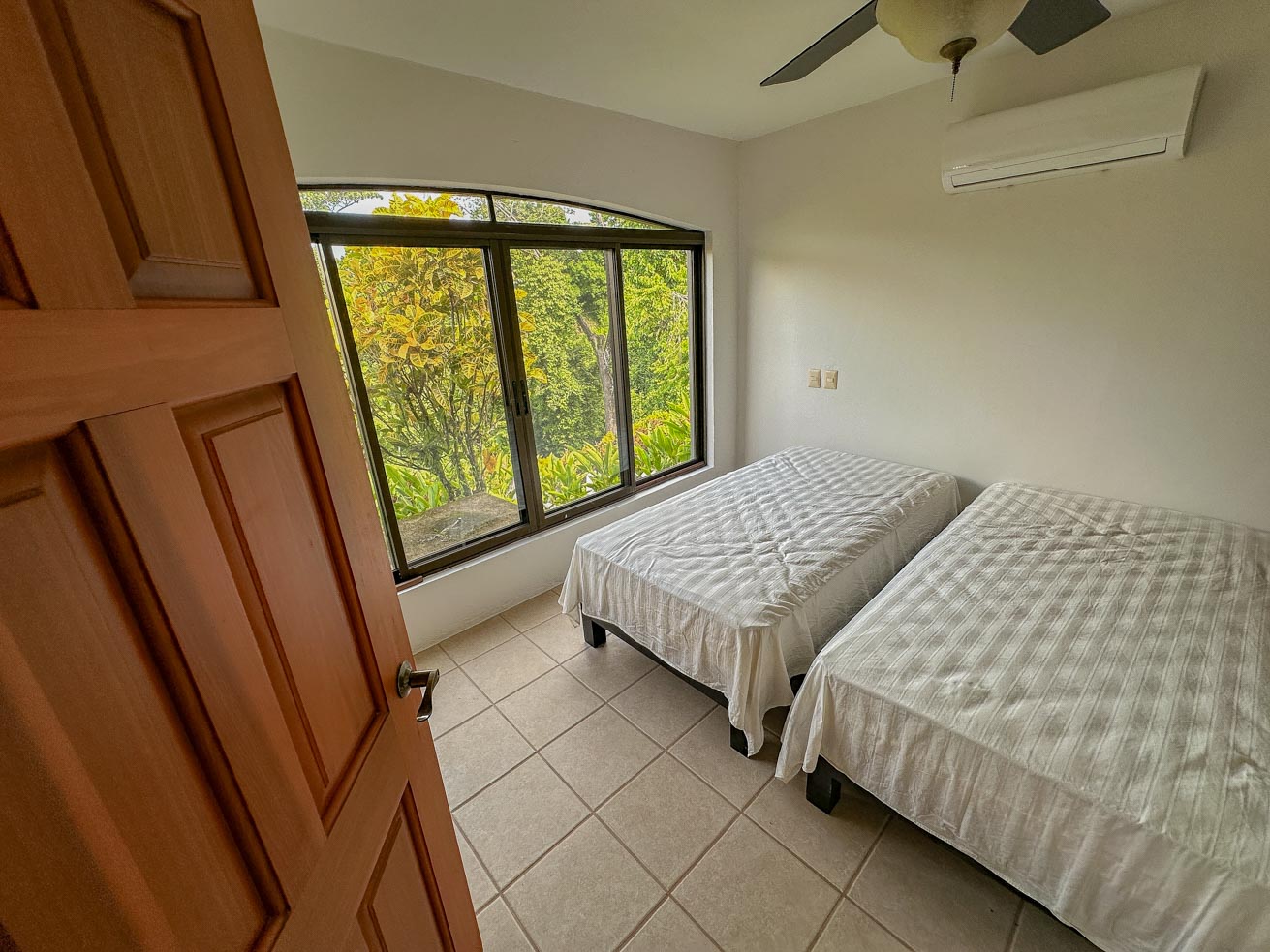 Dos dormitorios amplios, cada uno con ventanales que dan al jardín tropical.